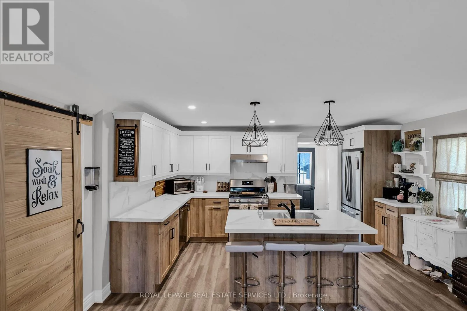 Cross Streets: County Rd 91. ** Directions: On County Road 124 Road W. A charming 2-story Century Home! situated on a 66x133 ft lot, Brick exterior, move-in ready with neutral walls throughout to suit any decor. The home is Beautifully renovated with original oak beams in place &Tasteful Finishes. 3 Bedrooms, an open concept main floor with a custom kitchen offers a centre island, creates ample space to host family and friends, ample soft-close cabinetry, quartz counter tops& backsplash, barn doors, and eye-catching bathroom tiles!. Brand new flooring on the main floor offers a clean, updated aesthetic. Convenient mainfloor laundry, reverse osmosis system, water filtration systems (iron filter, sediment filter, UV light),3 energy-efficient ductless a/c units, and new window coverings throughout the house. The code entry back door opens onto a back deck and a large yard, giving convenient access to a wheelchair through the ramp. The back deck is a perfect place to relax and enjoy Summer days grilling on the barbecue with plenty of yard. Entering the property, a large driveway accommodating 4- 5 vehicles plus a 1-car detached garage.Short Drive To Collingwood, an abundance of dining & shopping options, Blue Mountain, Georgian Bay, Beaches. (id:27476)
