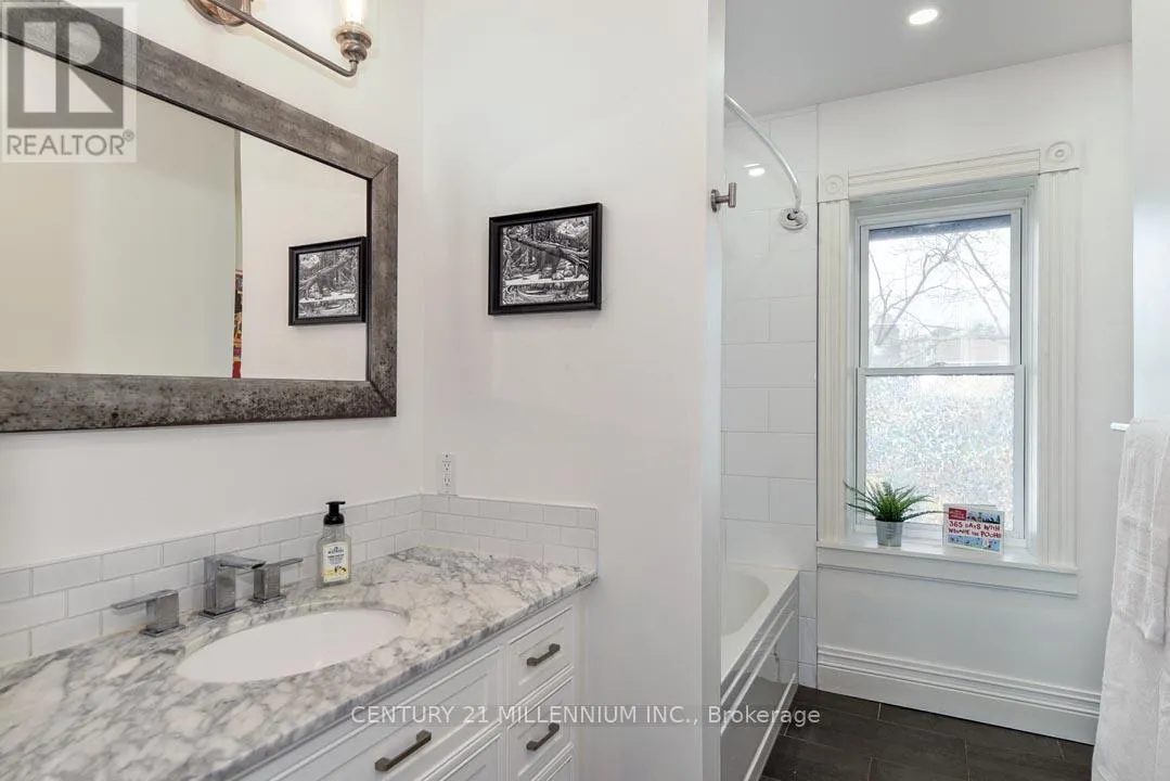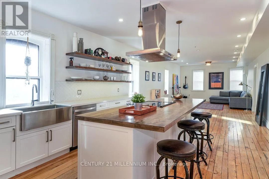 Cross Streets: 124 & Milltown Rd. ** Directions: 124 North to Singhampton. Property on the right before stop sign. In the charming village of Singhampton, 1.5 hrs from TO, 20 mins to Collingwood, & Creemore, is this stately, red brick Century, full of character, rich in history dating back to the 1800s, on 0.31-acre lot w/ parking in the front plus rear access. Offering approx. 3600 sq.ft. of tastefully updated living space, this home has convenient C1 zoning w/ excellent street exposure and permits uses such as residential, personal service business, retail store, restaurant, vet clinic, & more! Last used as a recording studio w/ the family living quarters on the 2nd level, this layout suits a variety of creative endeavours ideal for multi-generation living. Original maple wood floors, pot ltg, a stained-glass focal point, 10 ft. ceilings w/ rustic wooden accent beams invite you in. The pine Kitchen has an abundance of workspace, quartz c-tops (24), travertine backsplash & SS appliances & is open to the large o/concept Living/Dining w/ gas FP & w-facing windows which flood this vast area w/ natural light. A large sliding door to a Family rm, has a sep entry to the front, excellent for in-home occupation. An office/bedrm has a closet & windows & a 3-pce bath completes this level. UPPER: Ren'd by Alair Homes in 2019, the 2nd level features refinished maple flring, a custom kitchen w/ a farmhouse sink, quartz & butcher block c-tops, tile backsplash, pot ltg, b-bar, has 4 large beds, 2 full baths, privacy & an open-concept layout + laundry. A door to the outside offers the pot. for a private deck or stairs down. Private backyard w/ deck (24). Approx. 34 ft. x 21 ft. barn/workshop w/ hydro offers 2 levels of workspace/storage. Endless possibilities & turn-key! Fabulous proximity to Devil's Glen Ski Club, Bruce Trail, Singhampton Caves, Hiking Trails, the Snowmobile Trail & Mylar & Loreta's rest. Front door (24), Generac & Panel (19), 2 Mitsubishi Zuba heat pumps (16), soffit, facia, eaves, attic insulation replaced (18), front door, on-demand HWH (24), Well pump (25) (id:27476)