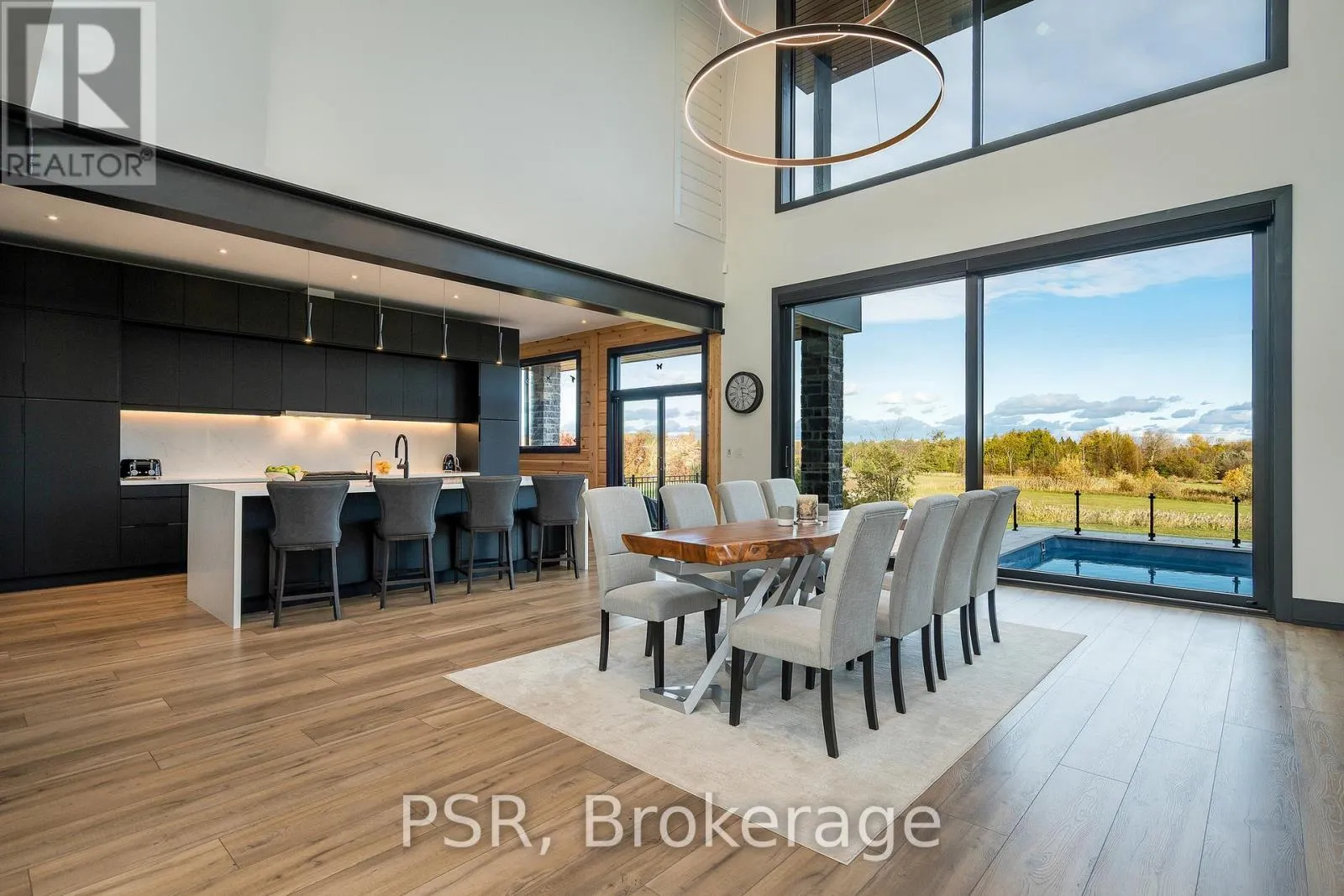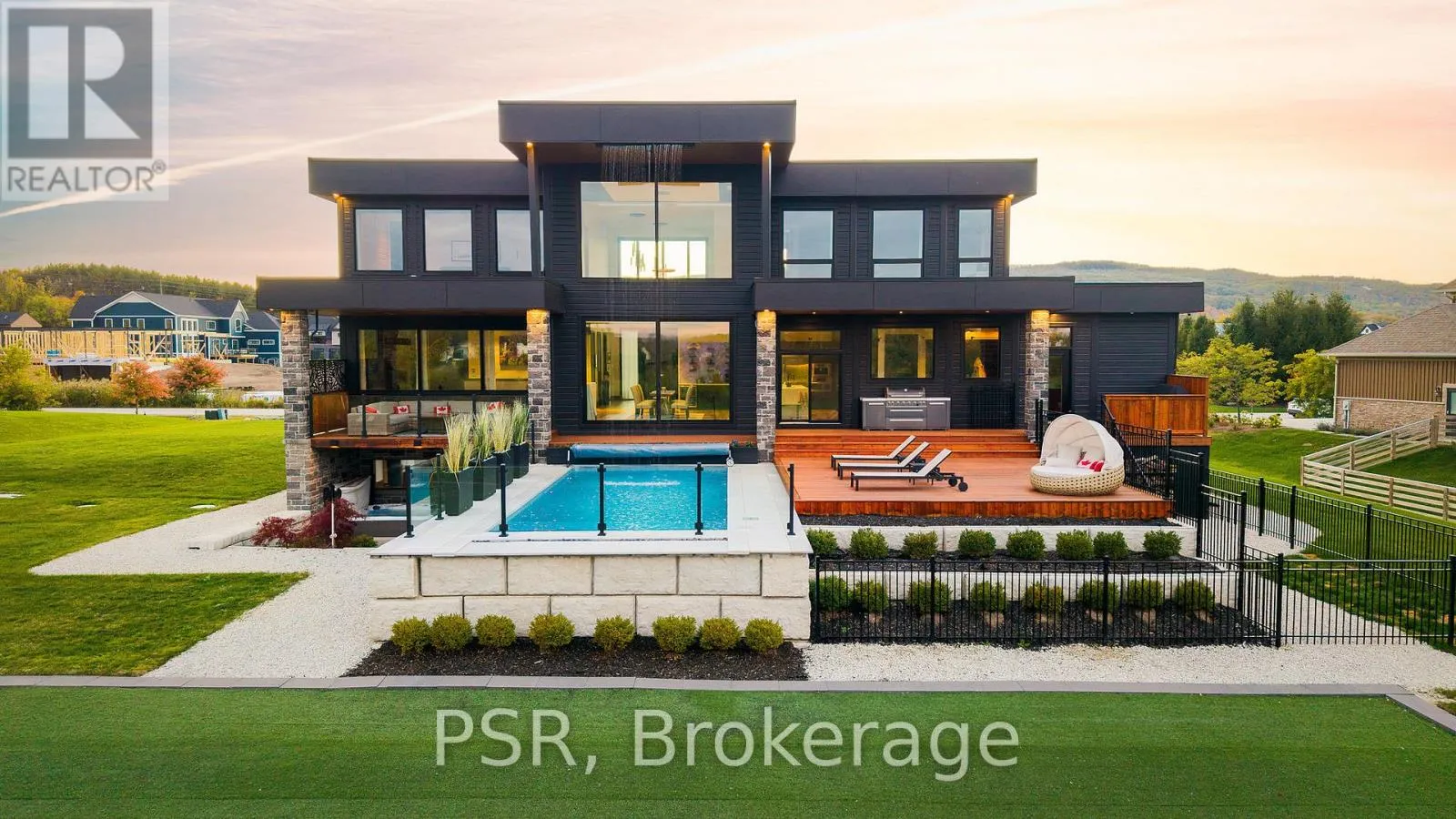 Cross Streets: Grey Rd . 19 and Meadowlark Way. ** Directions: Grey Road 19 & 6th Street. Welcome to the extraordinary living experience offered by 4 Raintree Court, nestled in the heart of Ontario's ski country. This luxurious home in the exclusive Windrose Estates combines elegance and sophistication with functional amenities for today's modern families. This custom-built home offers five spacious bedrooms, seven bathrooms, a home theatre, fully equipped gym, sauna, hot tub and heated pool over 8,600 square feet of interior space on a one-acre lot. High ceilings, custom lighting design, multiple skylights and walls of windows work with the wood accent walls to create a contemporary space that is flooded with light. In-floor radiant heating keeps the space cozy and warm throughout ski season as you sit by the fireplace watching the snow fall. The grand kitchen and dining area serve as the heart of this home, with soaring 23ft ceilings and the 10ft high by 16 ft wide sliding doors overlooking the backyard and 10-acre parkland beyond. Equipped with top-of-the-line appliances and designer counters and finishes, the kitchen is a perfect space for those who love to cook and entertain. The outdoor entertainment area includes a new outdoor kitchen, conversation area featuring patio heaters, heated pool and a waterfall that cascades from the upper roof into the pool. The property offers stunning mountain views of Osler Bluffs and Blue Mountain which can be enjoyed from throughout the home. Both resorts are less than ten minutes from the estate, as is downtown Collingwood. Simcoe County is known for its vibrant community atmosphere and natural beauty. From hiking trails to farmers' markets and local festivals-there's always something to see or do here. Notably, Clearview Township allows you to snowmobile or side by side directly out of your own property to the trails located right in the neighbourhood. 4 Raintree Court is more than just a house-it's a lifestyle destination that combines stylish luxury living within your own personal sanctuary. (id:27476)