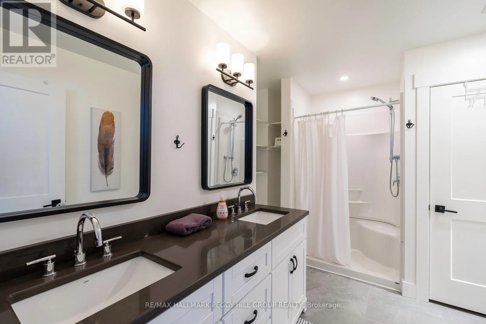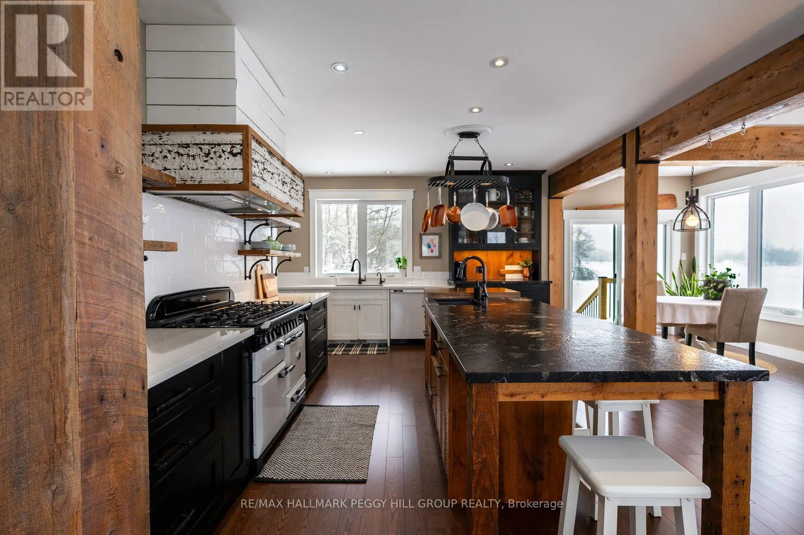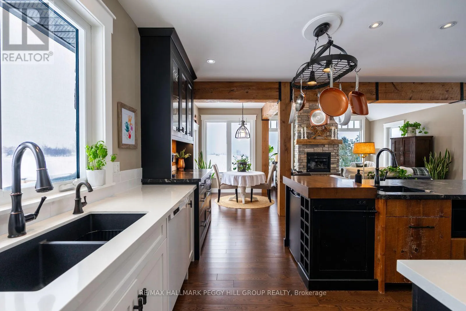 Cross Streets: Sideroad 12 & 13/Concession 11 South Nottawasaga. ** Directions: Grey Rd 124/Sideroad 12 & 13/ Concession 11 South Nottawasaga. SOPHISTICATED COUNTRY LIVING IN A CUSTOM HOME IN SOUGHT-AFTER LOCATION ON SPRAWLING ACREAGE WITH A SEPARATE DETACHED SHOP, & A 2-BEDROOM INDEPENDENT SECOND LIVING AREA FOR MULTIGENERATIONAL LIVING! At the end of a long private driveway, you'll find a 2.47-acre estate offering over 4,300 fin sq ft, an attached 2 car garage, a 3 car shop, and a separate self-contained living area. The secondary living space offers a kitchen, living room with a fireplace, 2 bedrooms, bathroom, laundry, and heated floors, making it ideal for multigenerational living. This custom bungalow showcases a stone and board-and-batten exterior with timber beams, and a covered porch, while the 30 x 50 ft shop provides 100 amp service, 3 oversized bay doors, including a 12 x 12 ft door, and a 855 sq ft unfinished loft above. Inside the main residence, solid ash hardwood floors lead through an open concept layout featuring a magazine-worthy kitchen with an Aga 6-burner range and statement hood, open shelves, contrasting cabinets, an island, and a walk-in pantry. A dining room and bright breakfast area overlook the property, with the breakfast nook offering a walkout to the stone patio. The great room stands out with 16 ft vaulted ceilings and a floor-to-ceiling stone fireplace, plus an approx 750 sq ft unfinished loft above with potential for extra bedrooms or a family room. The primary suite features a barn door leading to 2 walk-in closets and an ensuite with a freestanding tub, dual vanity, shower with built-in niches, and a separate water closet. The finished lower level feels open and bright, with radiant in-floor heating, vinyl plank flooring, a large recreation room with a wood stove and wet bar, and 2 bedrooms connected by a shared ensuite. Located near Devil's Glen Country Club and Bruce Trail access, with Collingwood and Wasaga Beach approximately 25 mins away, and Blue Mountain under 30 mins, this #HomeToStay captures everything people imagine when they envision elevated country living. (id:27476)