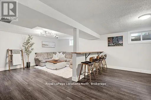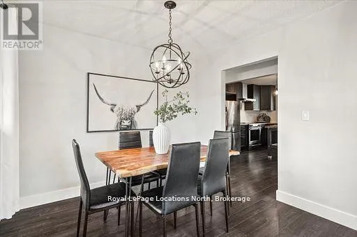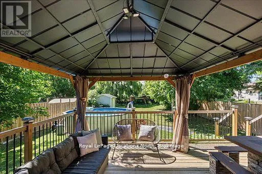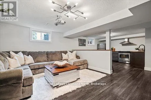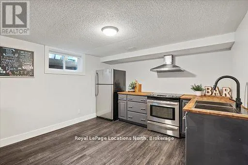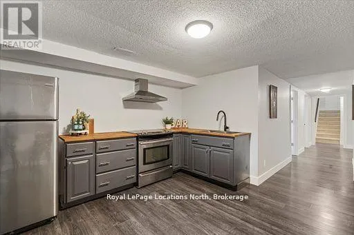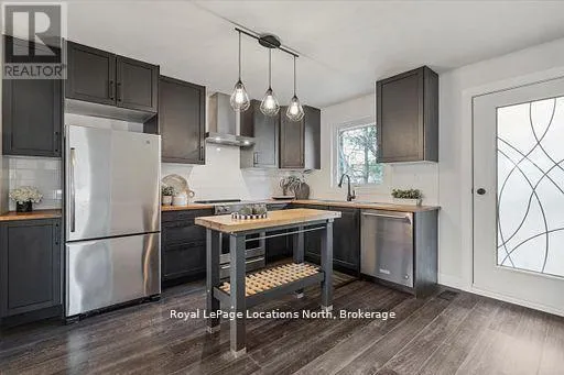 Cross Streets: Airport Rd and Beech St. ** Directions: Airport Road to Beech st to 201 Beech. Located in the heart of downtown Stayner and within walking distance to shops, dining, and amenities, this raised bungalow offers flexibility that's hard to find. The home sits on a deep 217-foot lot with mature trees, providing a private backyard and outdoor space rarely available in such a central location. A large wraparound deck off the kitchen overlooks the yard and is perfect for entertaining or relaxing outdoors.The main floor includes 3 bedrooms, a full 4-piece bathroom, a bright living room with fireplace, and a kitchen with stainless steel appliances just off the dining area.The fully finished lower level is where this home truly shines, featuring a spacious rec room, gas fireplace, second full kitchen with bar seating, an additional bedroom, full bathroom, and office nook. This layout offers excellent potential for multi-generational living, in-law accommodation, or added flexibility for extended family and guests. (id:27476)