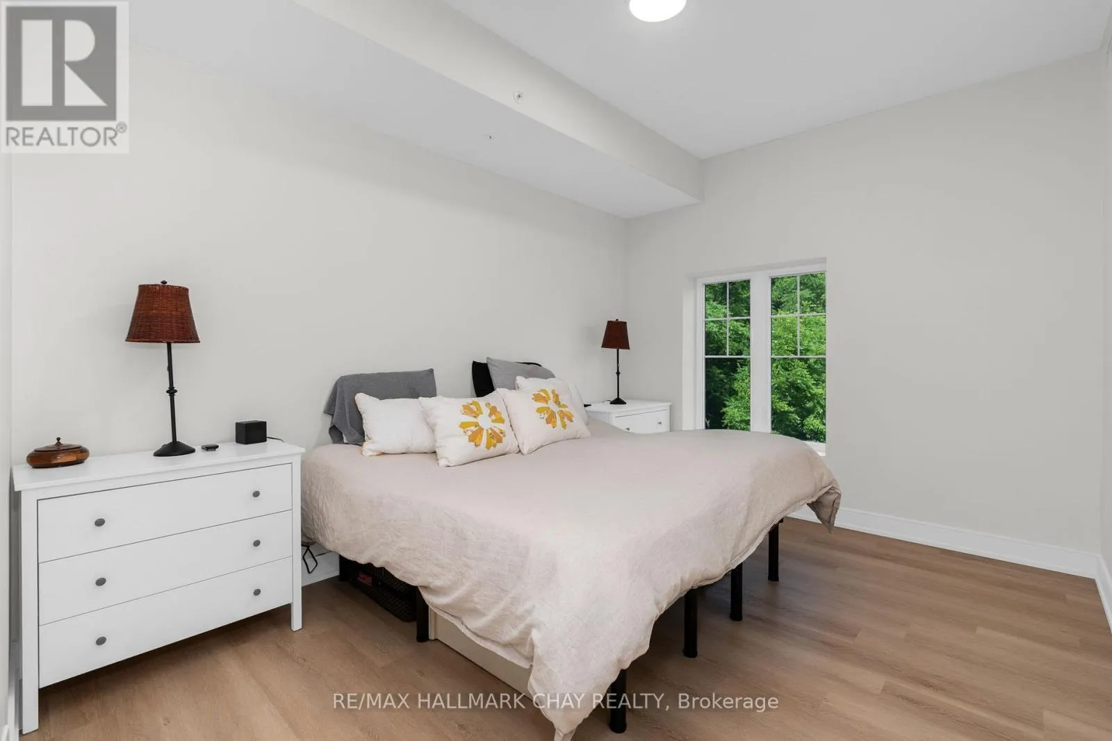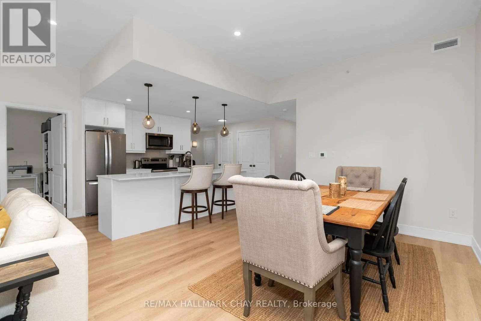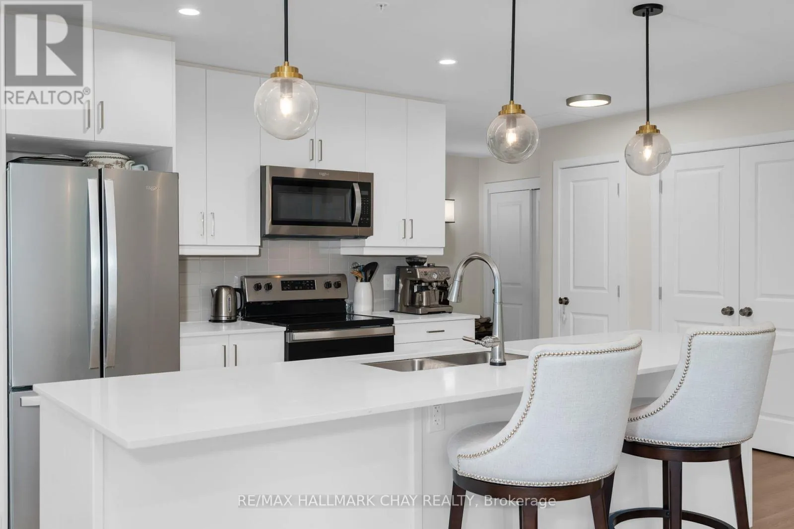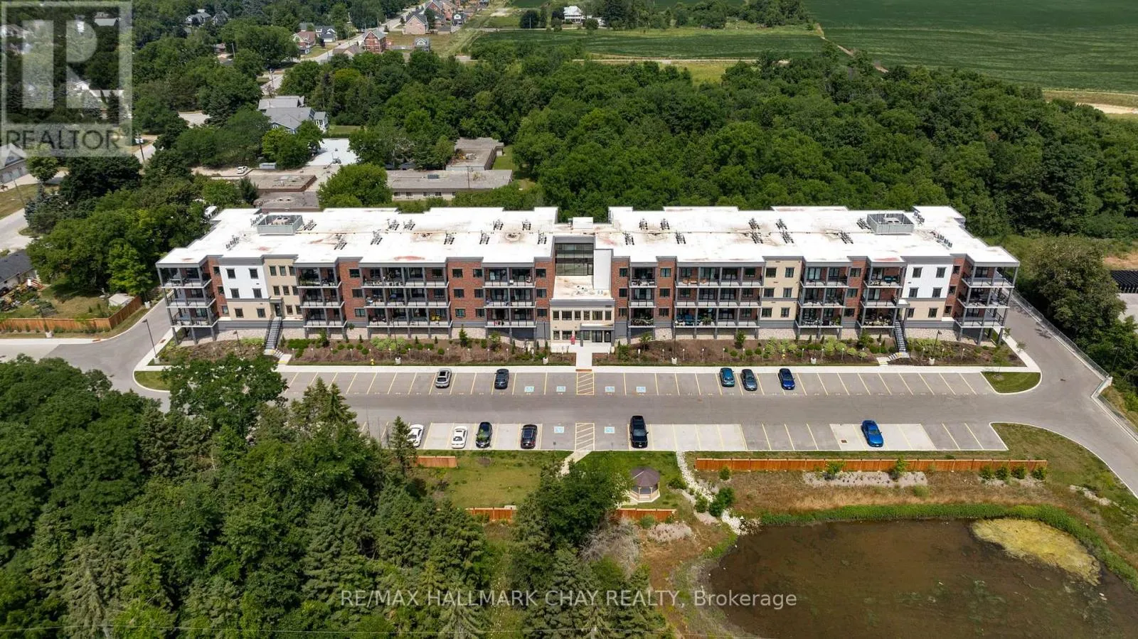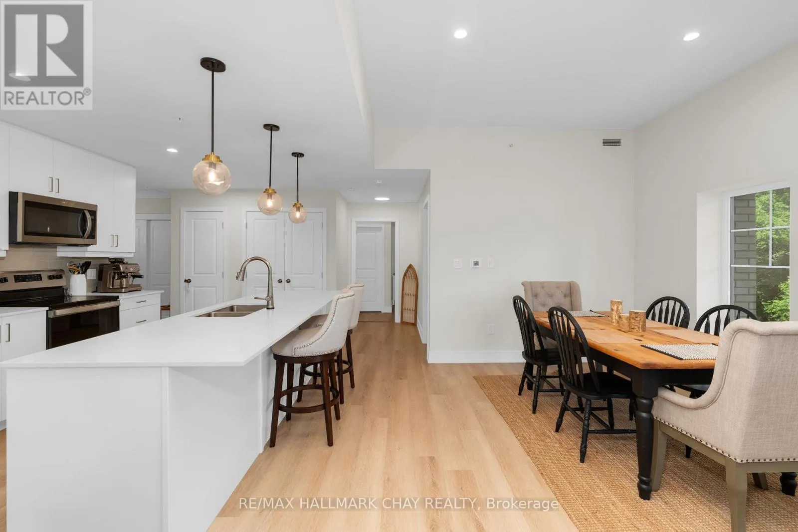 Cross Streets: Mary Street & Edward Street. ** Directions: South on Mary Street. Enjoy the ease of condo living in the heart of Creemore, a vibrant four-season village known for its charm, trails, golf, and ski hills. This premium 3-bed, 2-bath corner unit at The Brix offers nearly 1,400 sq ft, one of the largest floor plans in the building, complete with an oversized nearly 300 sq ft wrap around private balcony overlooking a peaceful forest backdrop. Bright and beautifully designed with large windows, this suite features luxury vinyl plank flooring, a chef-inspired kitchen with an oversized eat-in island, and an open-concept layout ideal for entertaining. The primary bedroom includes a walk-in closet and private ensuite, while a second full bathroom offers semi-ensuite access for guests or family. Two owned parking spaces are included, along with access to modern amenities such as a gym and a stylish party space for gatherings. Whether you're looking to downsize in style or enjoy a weekend retreat, this move-in ready suite offers the perfect blend of space, comfort, and low-maintenance living in one of Ontarios most desirable small towns. (id:27476)