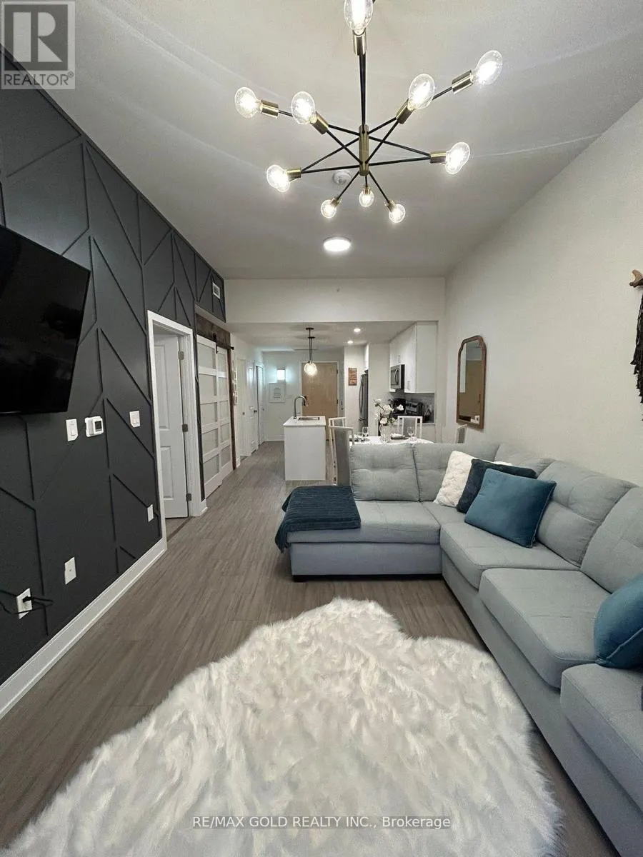 Mary St/Edward St Experience modern living in this newly constructed, spacious 1 + 1 bedroom, 1-bathroom condo, ideally located in the heart of Creemore, Ontario. This elegant suite showcases high ceilings, premium finishes, and a bright open-concept layout, complete with a balcony offering stunning views. Unique features such as a stylish accent wall and rustic barn doors add character and charm to the space. Residents enjoy access to exceptional amenities, including a fully equipped gym and a party room, for ultimate convenience. Situated in a vibrant neighborhood, this condo is just steps from local shops, restaurants, and scenic parks, providing the perfect blend of small-town warmth and contemporary lifestyle. Rent includes one parking space and a locker for extra storage. (id:27476)