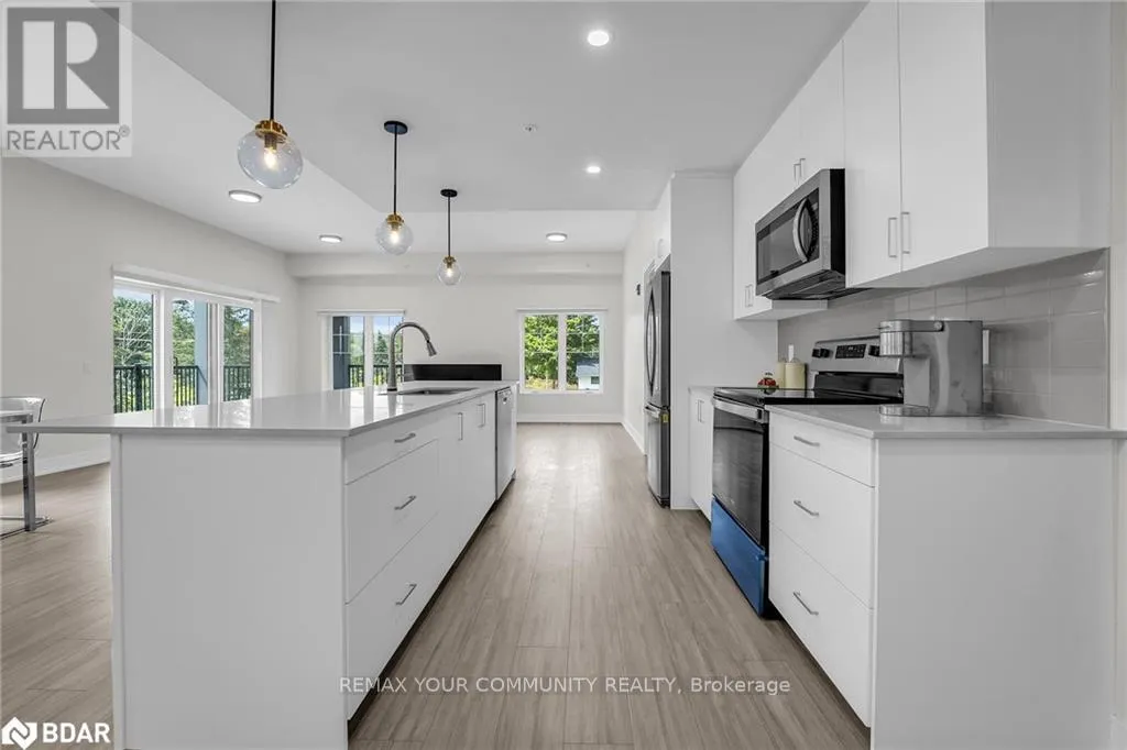 Mary Street/Edward St East Experience luxury living in this expansive 3-bedroom, 2-bathroom corner-unit 1385 sq ft, where modern elegance meets everyday convenience. Boasting a spacious open-concept layout, this home features high-quality laminate flooring throughout, a gourmet kitchen with quartz countertops, sleek cabinetry, and a breakfast island-perfect for family gatherings or entertaining guests. The dining and living areas flow seamlessly, creating a bright and inviting space to call home. Ideally located just minutes from downtown Creemore, you'll enjoy easy access to local breweries, artisan shops, restaurants, groceries, and more. Outdoor enthusiasts will appreciate the close proximity to Mad River Golf Club, scenic nature trails, and nearby parks, while winter and summer adventures await at Blue Mountain, Wasaga Beach, and surrounding ski resorts and beaches-all just a short drive away. Residents also enjoy access to premium building amenities, including a fully equipped gym and a stylish party room for entertaining or relaxing with friends and neighbours. For added convenience, this unit includes one parking space and a storage locker. Don't miss the opportunity to elevate your lifestyle in this vibrant, sought-after community. Schedule your private viewing today and discover everything this exceptional condo has to offer! (id:27476)