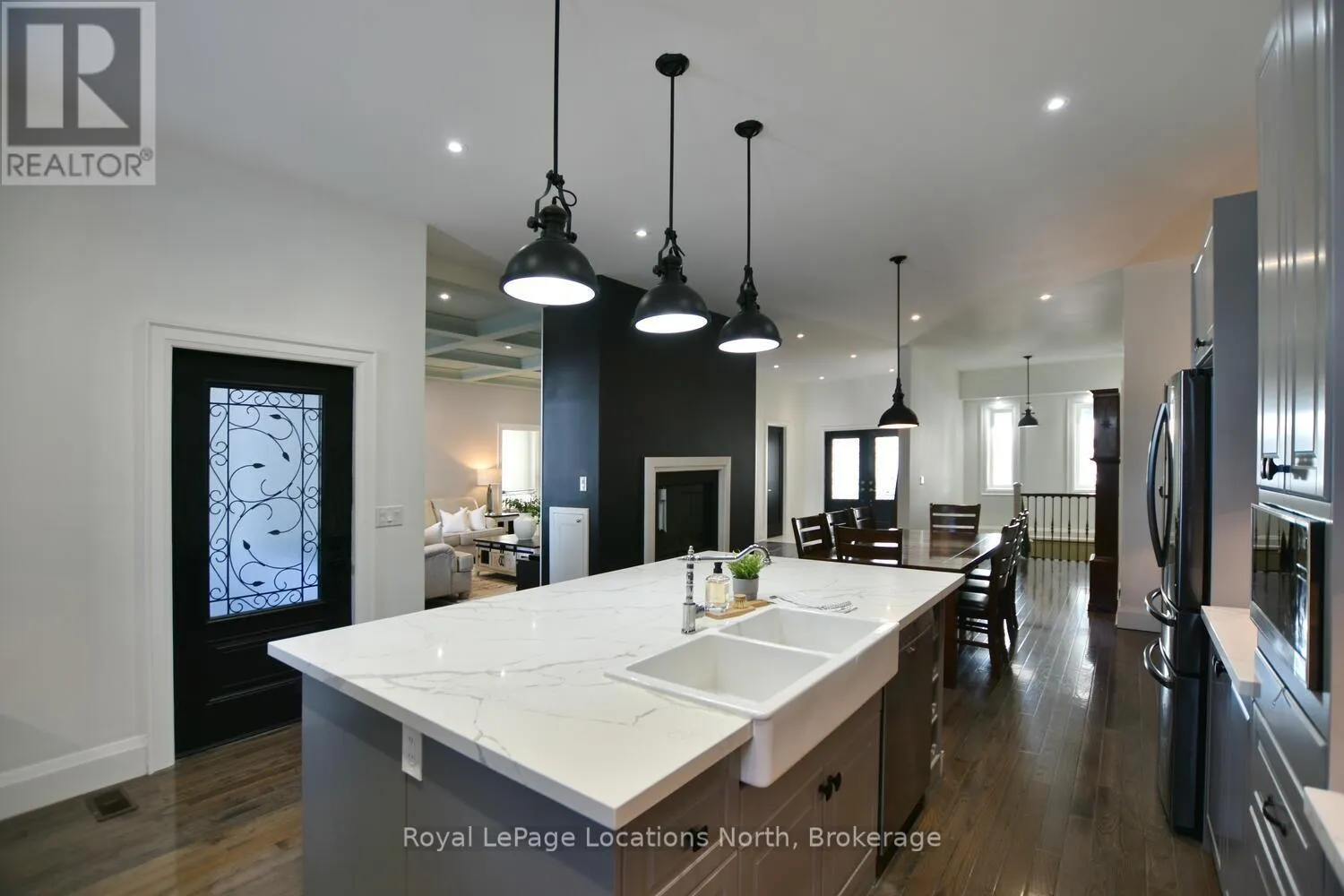 Cross Streets: 124 and 31. ** Directions: 124 to Singhampton property on right. Welcome to 1092 County Road 124 in the charming village of Singhampton, perfectly positioned between the amenities of Collingwood, the ski hills of Blue Mountain and the sandy shores of Wasaga Beach. This custom-built bungalow offers the ideal blend of privacy, space and four-season recreation, all set on an impressive lot of just under one acre. Thoughtfully designed with comfort and functionality in mind, this 3 bedroom, 3.5 bathroom home features a bright, open-concept main floor with soaring ceilings and generous windows that flood the space with natural light. The inviting living area flows seamlessly into the dining space and well-appointed kitchen, creating an ideal layout for entertaining or everyday living. Direct access to the covered back deck extends your living space outdoors-perfect for summer barbecues, morning coffee or relaxing evenings overlooking your expansive property. The primary suite is a true retreat, offering impressive ceiling height, ample closet space and a spa-inspired ensuite designed to feel like your own private oasis. Two additional bedrooms and well-designed bathrooms provide comfort and convenience for family or guests. A welcoming covered front entrance adds charm and curb appeal while offering practical shelter year-round. The fully finished basement expands your living space with exceptional versatility. Enjoy movie nights in your dedicated theatre room, unwind in the private sauna, or take advantage of the additional living and recreation areas that make this lower level perfect for entertaining or extended family stays. A spacious two-car garage and ample driveway parking complete the package. Located close to hiking, cycling and snowmobile trails, golf, skiing and Georgian Bay, this property offers the best of country living with easy access to nearby towns and amenities. Experience space, style and lifestyle all in one exceptional Singhampton home!! Call now for a private tour!! (id:27476)