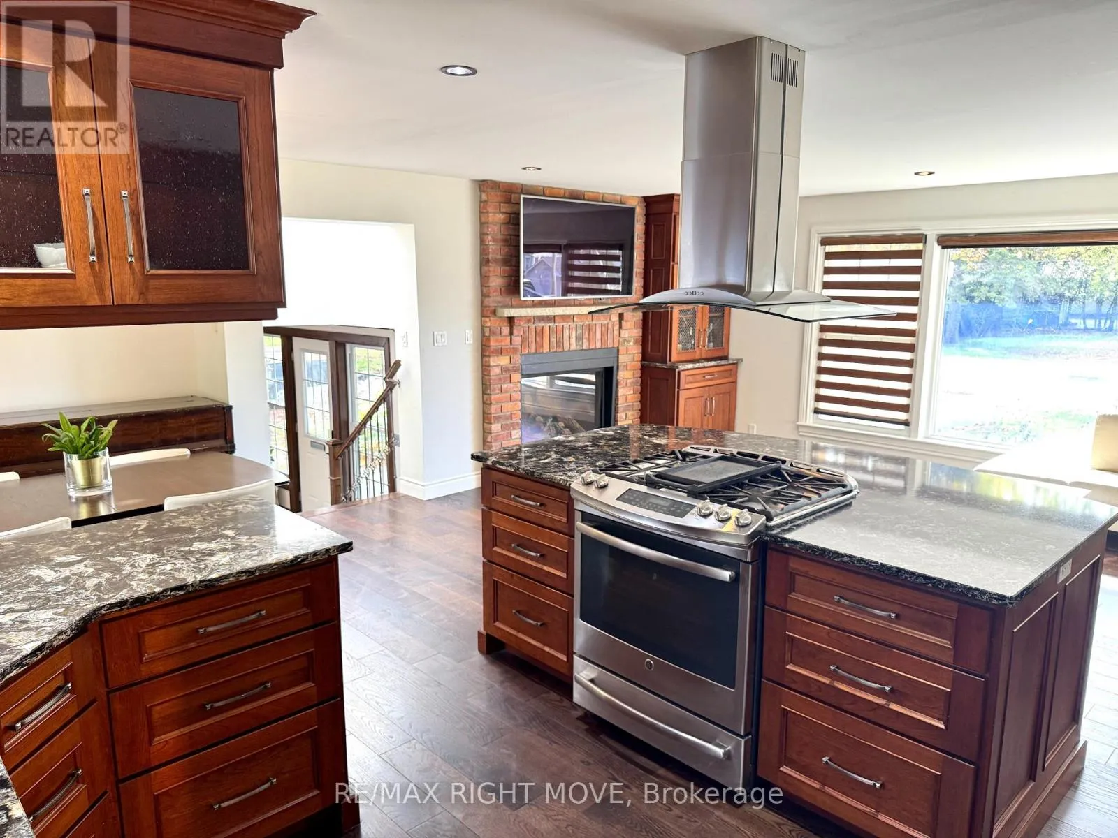 Oak Street / John Street Fall in love with this stunning open-concept bungalow. With over 2,673 sq. ft. of living space, , thoughtfully designed for style, comfort, and versatility complete with a newly renovated in-law suite on the lower level. Inside, you'll find an elegant custom fireplace, modern kitchen and bath with quartz countertops, and gorgeous hardwood floors throughout. The bright, open layout features a large island perfect for entertaining family and friends. Enjoy the best of both worlds just 15 minutes to Wasaga Beach and 15 minutes to Collingwood ski and snowboard hills, with coffee shops, trails, and local amenities all close by. Perfect for professionals or business owners, the home offers parking for 10+ vehicles and a spacious executive office with custom cabinetry, cork flooring, a cozy fireplace, and large windows. The main level includes three generous bedrooms, while the finished basement adds an additional bedroom with ensuite and brand-new kitchen ideal for guests or multi-generational living. Step outside to your private, tree-lined backyard oasis, featuring a hot tub, modern landscaping with armor stone, and a front yard in-ground sprinkler system. Extras: metal roof, $20K custom fireplace install, in-floor heating, entertainers kitchen, oversized treed lot, and brand new security camera system and tons of natural light throughout. With over 2,500 sq. ft. of living space, this home truly has it all. (id:27476)