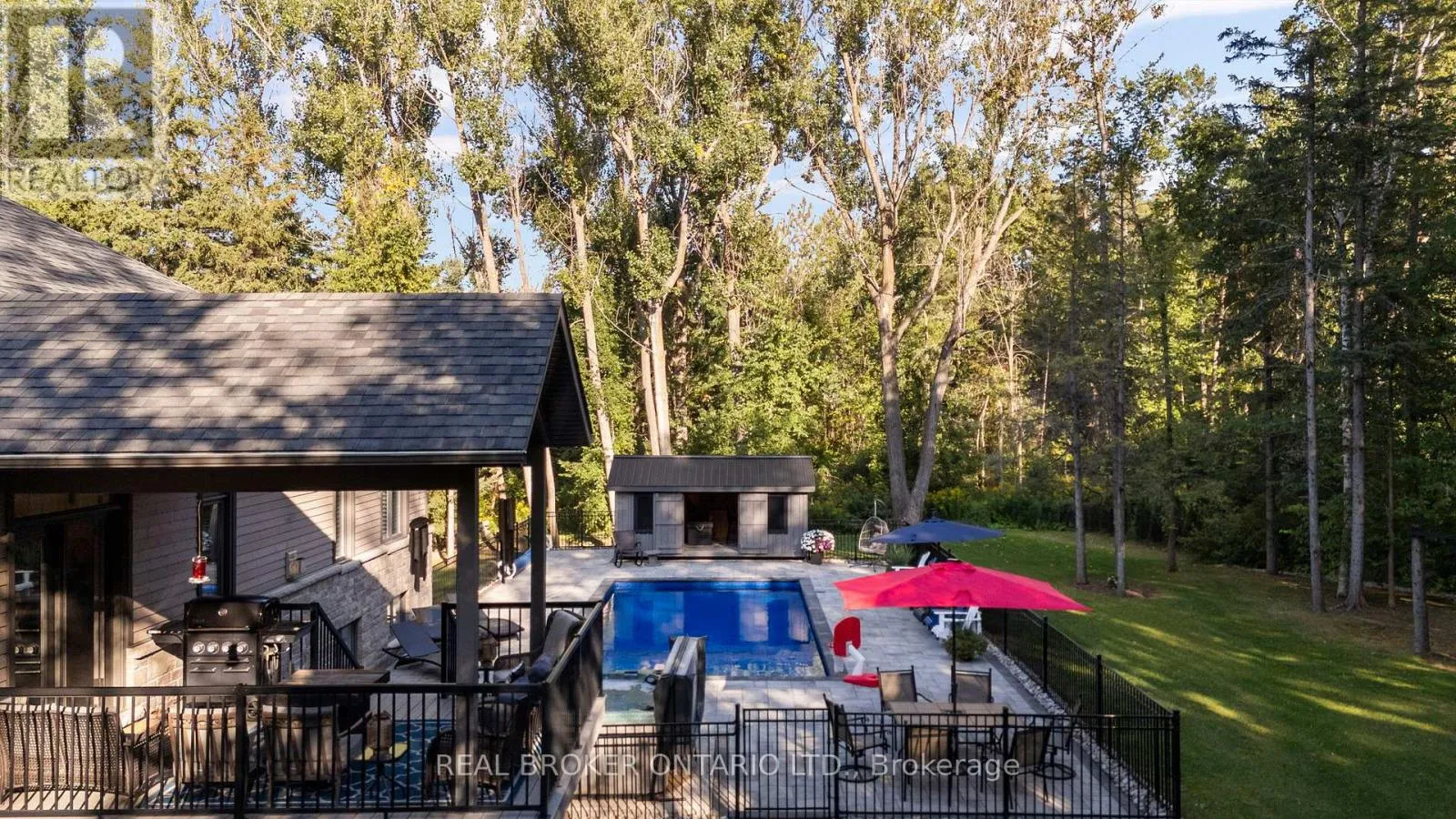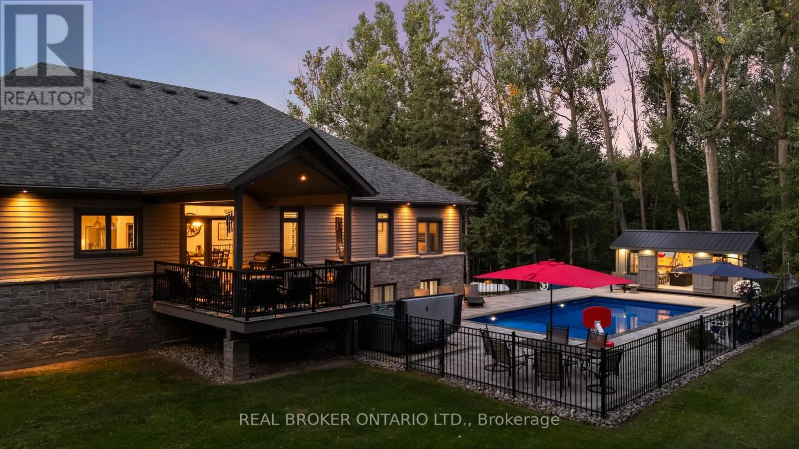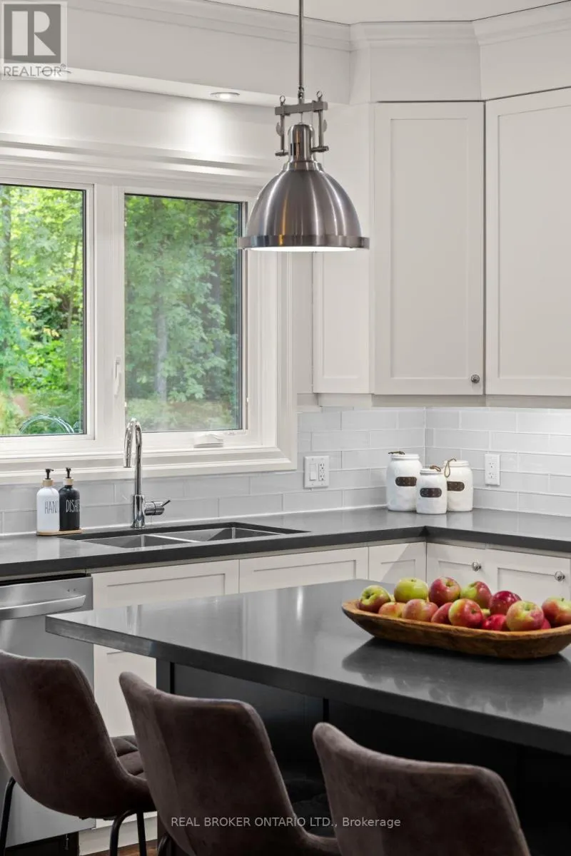HWY 124 x Sydenham Trail Your Private Resort, Every Day of the Year. Tucked away on 2.5 acres of mature trees and rolling landscape, this custom-built home isn't just a place to live - its a lifestyle. From the moment you arrive, youll feel the peace and privacy of country living, all while being steps from walking trails and minutes from town conveniences. Inside, soaring vaulted ceilings and a floor-to-ceiling propane fireplace set the tone for gatherings with family and friends. The open-concept design flows seamlessly from the living and dining area into a chefs kitchen with quartz countertops, extended cabinetry, stainless steel appliances, and a striking glass backsplash. Every detail has been crafted for both function and style. The main floor offers four bedrooms, including a primary suite designed as a true retreat, complete with a spa-like 5-piece ensuite and walk-in closet. The finished lower level with private garage entrance extends the lifestylewhether you need a guest suite, home gym, or office. A 5th bedroom, 3-pc bath, and expansive mudroom with storage make the space versatile and practical. Step outside and discover why this property is truly exceptional. A saltwater pool glistens in the sun, paired with a hot tub and covered deck that invite you to host summer parties, quiet evening dinners, or simply unwind after a long day. With walking trails at your doorstep and a backyard that feels like a private resort, this home delivers a lifestyle most only dream of. Luxury, privacy, and connection to nature this home is more than a residence. Its where family memories are made, friends gather, and every day feels like a getaway. (id:27476)