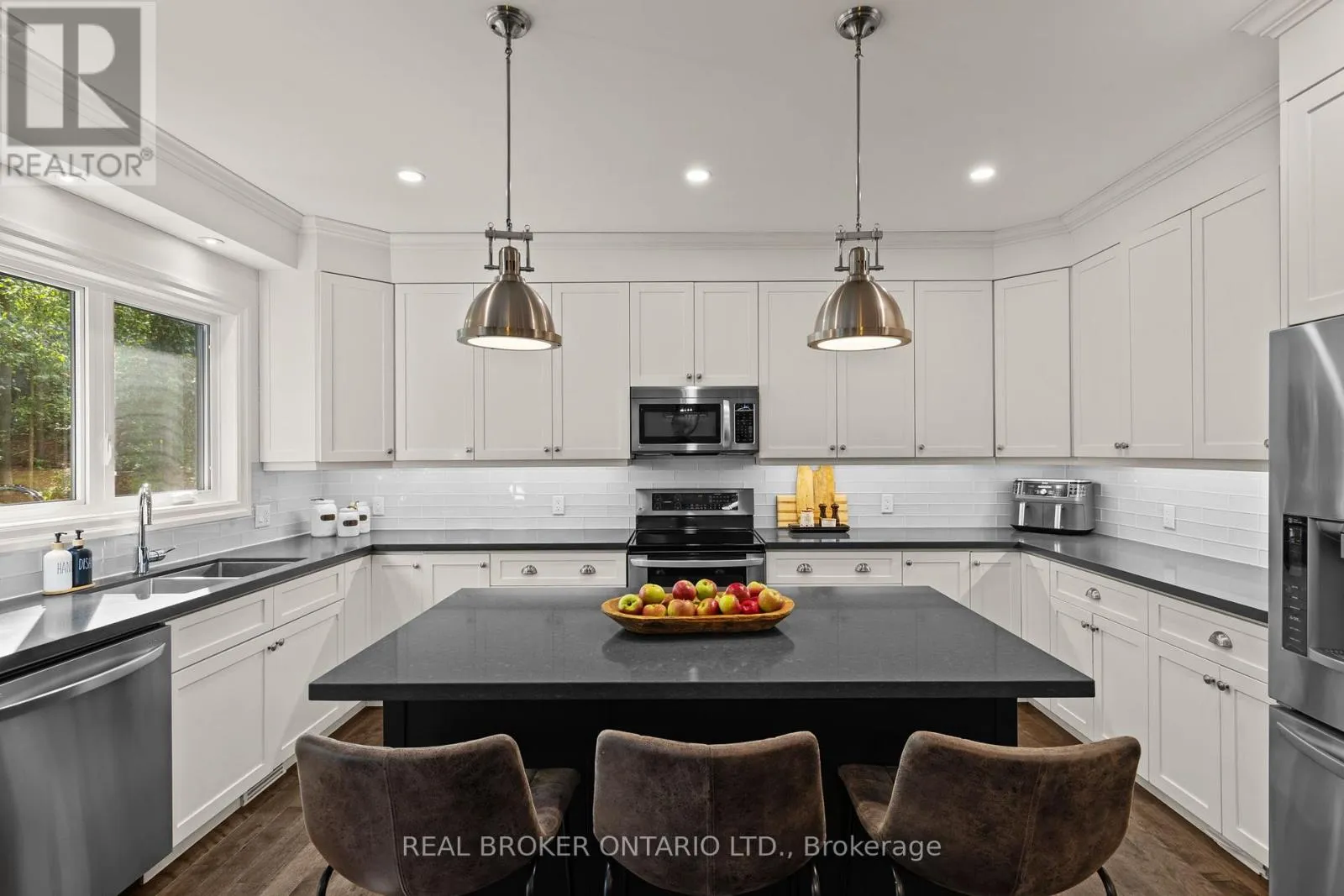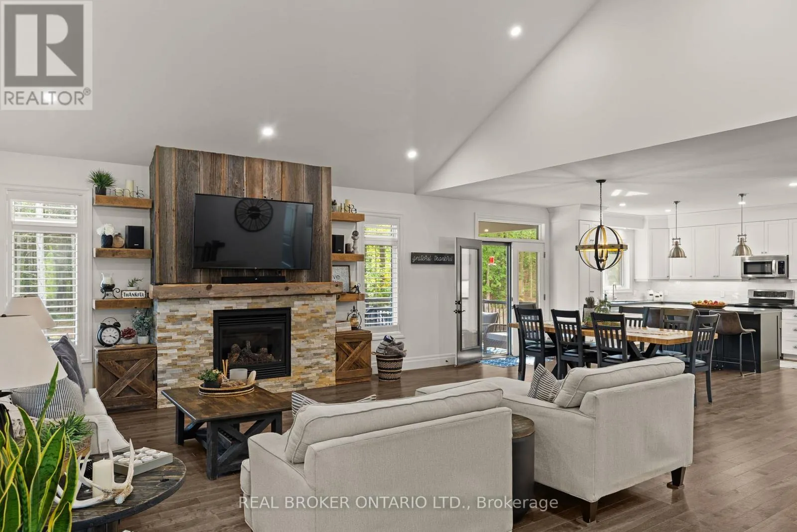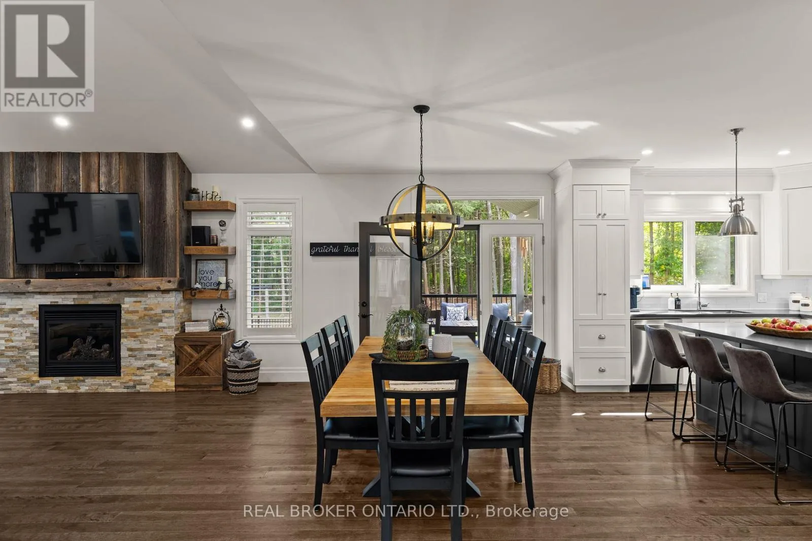 HWY 124 x Sydenham Trail Your Private Resort, Every Day of the Year. Tucked away on 2.5 acres of mature trees and rolling landscape, this custom-built home isn't just a place to live - its a lifestyle. From the moment you arrive, youll feel the peace and privacy of country living, all while being steps from walking trails and minutes from town conveniences. Inside, soaring vaulted ceilings and a floor-to-ceiling propane fireplace set the tone for gatherings with family and friends. The open-concept design flows seamlessly from the living and dining area into a chefs kitchen with quartz countertops, extended cabinetry, stainless steel appliances, and a striking glass backsplash. Every detail has been crafted for both function and style. The main floor offers four bedrooms, including a primary suite designed as a true retreat, complete with a spa-like 5-piece ensuite and walk-in closet. The finished lower level with private garage entrance extends the lifestylewhether you need a guest suite, home gym, or office. A 5th bedroom, 3-pc bath, and expansive mudroom with storage make the space versatile and practical. Step outside and discover why this property is truly exceptional. A saltwater pool glistens in the sun, paired with a hot tub and covered deck that invite you to host summer parties, quiet evening dinners, or simply unwind after a long day. With walking trails at your doorstep and a backyard that feels like a private resort, this home delivers a lifestyle most only dream of. Luxury, privacy, and connection to nature this home is more than a residence. Its where family memories are made, friends gather, and every day feels like a getaway. (id:27476)