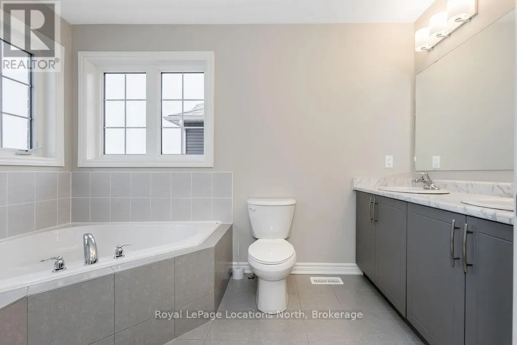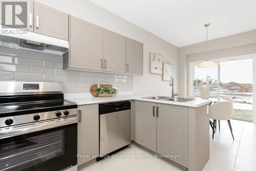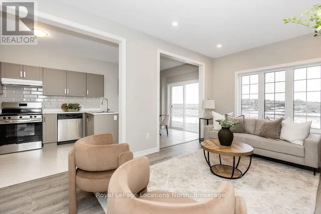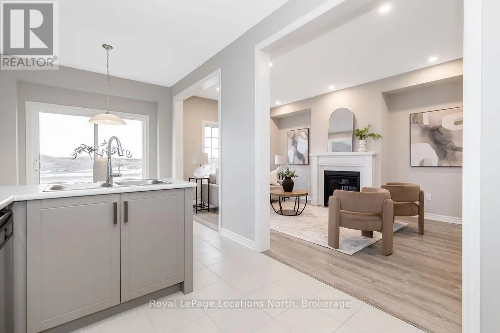 Cross Streets: Mowat Street N & Highway 26. ** Directions: Hwy 26 to Mowat Street to Junction Road to Springfield Crescent. Looking for a Move-In Ready Family Home in Stayner, Ontario? Brand-new all-brick home in a family-friendly neighbourhood in the heart of Stayner, close to schools, parks, grocery stores, downtown shops, cafés, and restaurants. This bright and spacious home offers over 1,800 sq. ft. of beautifully finished living space with a welcoming foyer that flows into an open-concept main floor designed for modern family living. The living room features a cozy gas fireplace, while the dining area with patio doors opens to the backyard, creating a seamless space for everyday living and entertaining. The modern kitchen is thoughtfully designed with brand-new stainless-steel appliances, generous counter space, sleek finishes, and ample cabinetry, making it both stylish and highly functional. The main level also includes convenient laundry with direct garage access and a well-placed two-piece bathroom.Upstairs, the oversized primary bedroom serves as a private retreat with a walk-in closet and a luxurious 5-piece ensuite featuring a soaker tub, glass walk-in shower, and double sinks. Two additional spacious bedrooms and a full bathroom provide comfort and flexibility for families, guests, or a home office setup. The unfinished basement includes a bathroom rough-in and offers excellent potential for future living space, whether you envision a recreation room, home gym, or in-law suite. Additional highlights include a double-car garage, fresh sod, and a transferable Tarion warranty for added peace of mind. Ideally located just a short drive to Wasaga Beach, Collingwood, Blue Mountain, golf courses, ski hills, and scenic trails, this home offers the perfect balance of small-town charm and access to year-round amenities, all within an easy commuting distance. (id:27476)