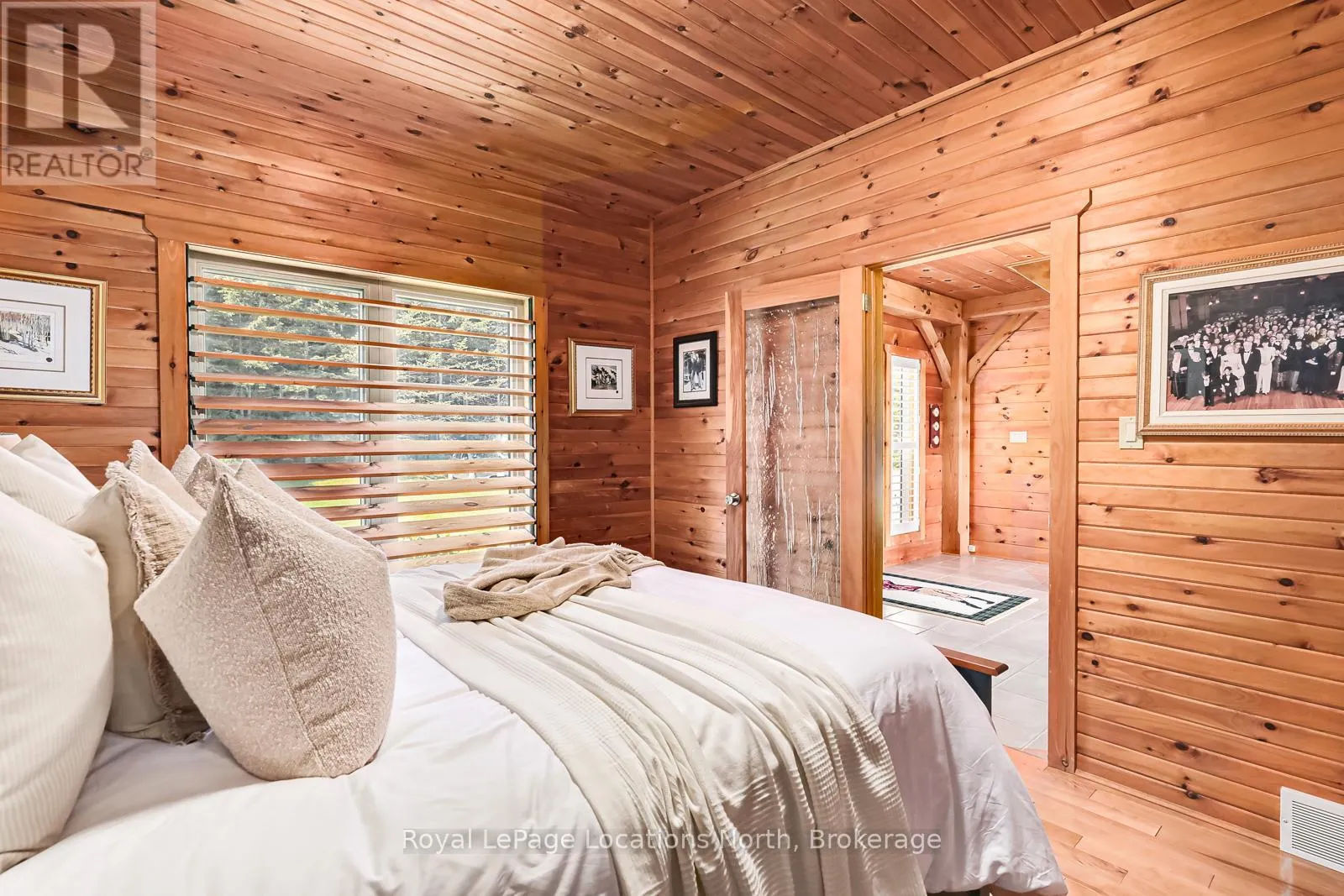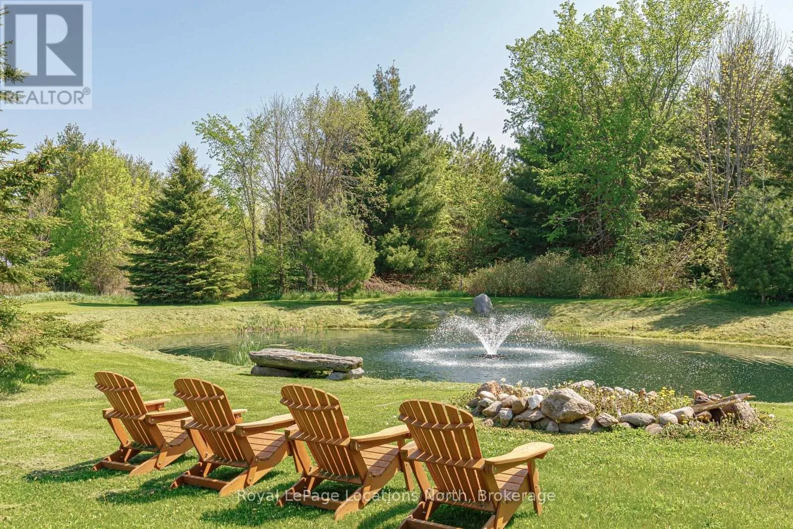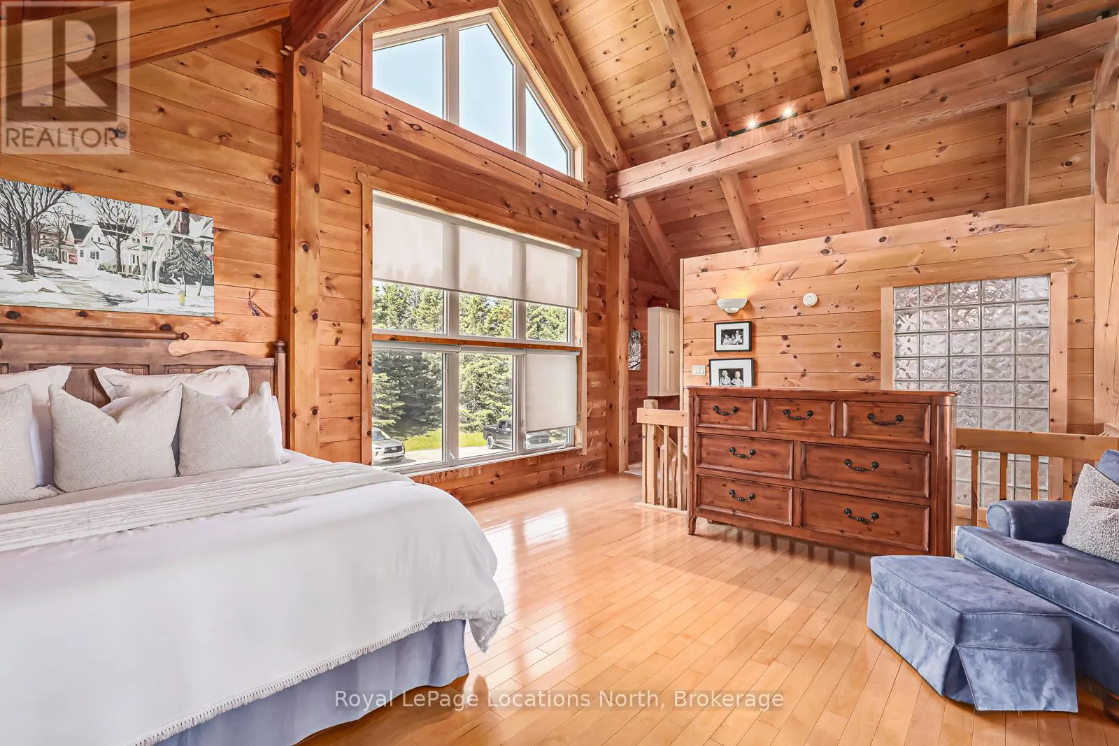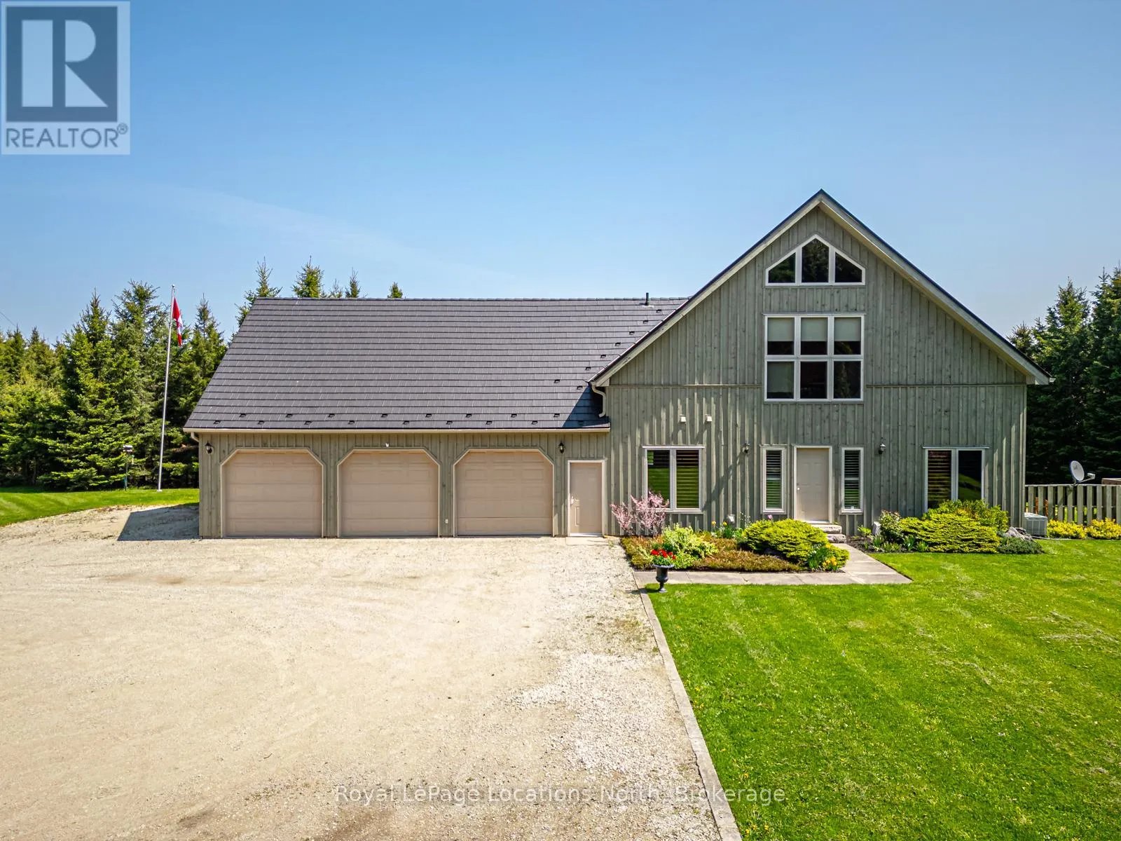 Cross Streets: County Rd 91 & Hurontario St. ** Directions: Highway 124 to Duntroon, turn west on County Rd 91 to sign. Welcome to your private country estate, set on 9.02 acres of breathtaking natural landscape with panoramic views stretching across Georgian Bay and the surrounding countryside.This exceptional timber frame residence, finished in classic board and batten, offers over 3,600 square feet of thoughtfully designed living space, surrounded by mature trees, a tranquil pond with fountain, and sweeping vistas that capture the essence of South Georgian Bay living.At the heart of the home, the dramatic Great Room showcases soaring vaulted ceilings, exposed timber beams, and expansive windows that frame the spectacular views beyond. The open-concept design seamlessly connects the kitchen, dining, and living spaces-creating an inviting environment ideal for both refined entertaining and relaxed everyday living.A spacious main-floor bedroom provides flexibility as a guest suite, home office, or private retreat.Upstairs, the loft-style primary suite offers a true sense of escape, complete with a luxurious 5-piece ensuite and walk-in closet-your own private sanctuary overlooking the surrounding landscape.The fully finished lower level is designed for both comfort and recreation, featuring three additional bedrooms, a 4-piece bath, and a generous rec/games room with walk-out access-effortlessly extending your living space into the outdoors.Step outside to the expansive deck and immerse yourself in the natural beauty that surrounds you-perfect for morning coffee, evening sunsets, or hosting family and friends.A triple car garage provides ample space for vehicles, recreational equipment, and storage, complementing the property's active four-season lifestyle.Ideally located just minutes from Duntroon Highlands Golf Club, Highlands Nordic, Devils Glen Ski Club, scenic hiking trails, private ski clubs, Blue Mountain Village, downtown Collingwood, and the shores of Georgian Bay.An extraordinary offering that blends refined country living with privacy, space, and year-round recreation. (id:27476)