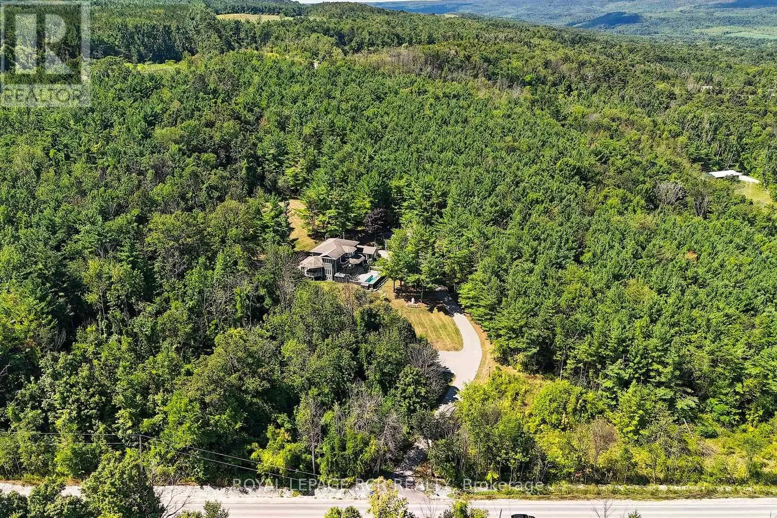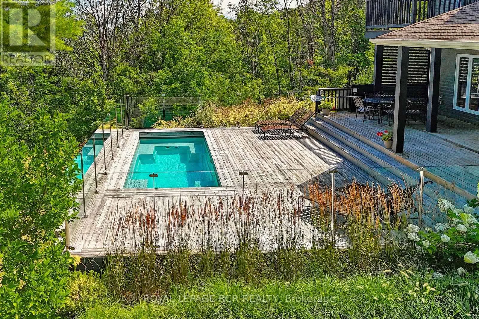 Cross Streets: From Collingwood, take Concession 10 South past 30/31 Sideroad on your right. Road is under construction but you can access the property (local traffic only). ** Directions: W of HWY 124 and S of Sideroad 30/31. Designed with entertaining in mind, this property showcases a custom deck with a luxury salt water infinity pool. Enjoy quiet mornings in the screened 3-season porch with gas fireplace, cozy evenings by one of two wood-burning fireplaces, or take in the panoramic views from nearly every room. The heated and insulated 3-car garage is ideal for year-round use, while cut trails offer a peaceful escape into nature. Recently replaced windows flood the interior with natural light, creating a warm and inviting atmosphere throughout. Additional highlights include a high-speed internet tower for reliable remote work, a spotless unfinished basement with future potential, and an unbeatable location just minutes from Blue Mountain, private ski clubs, golf courses, hiking trails, and Collingwood's shops and restaurants. (id:27476)