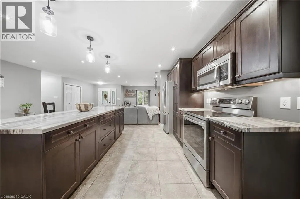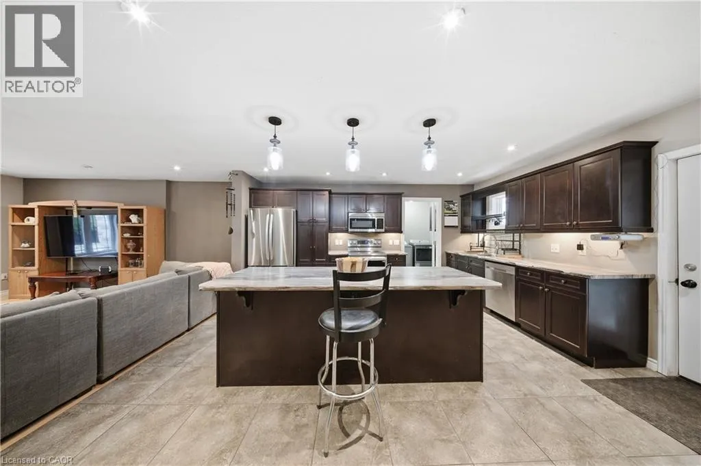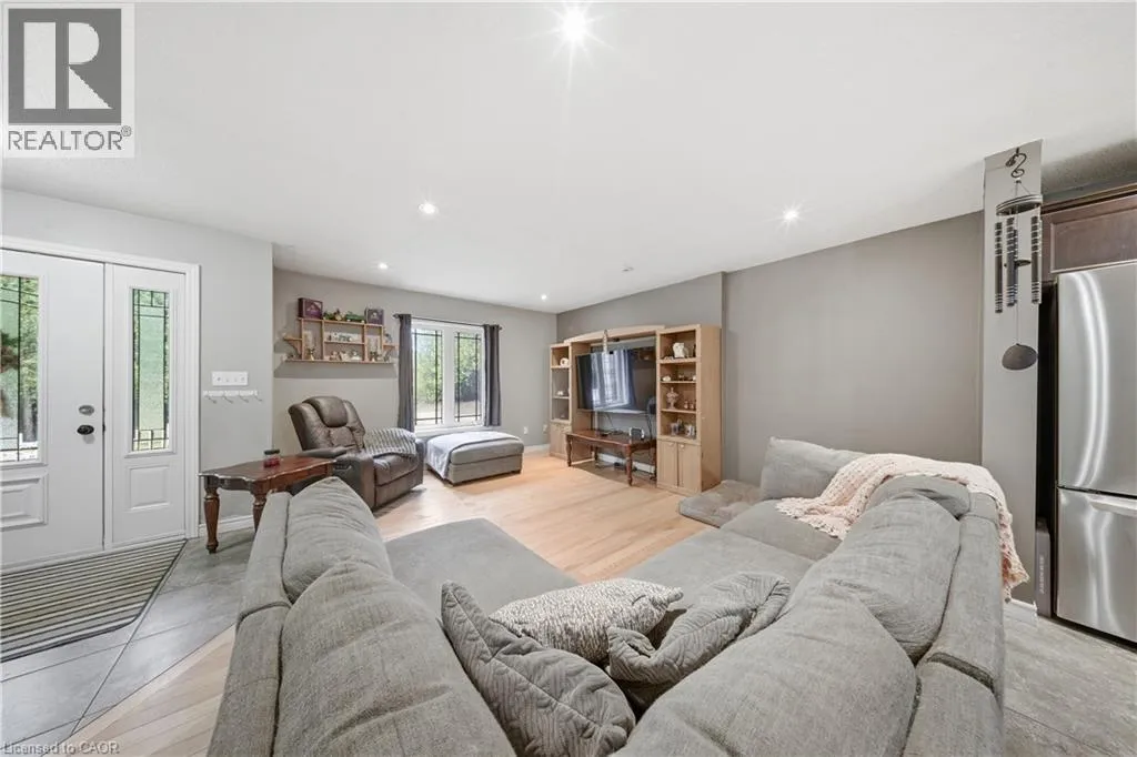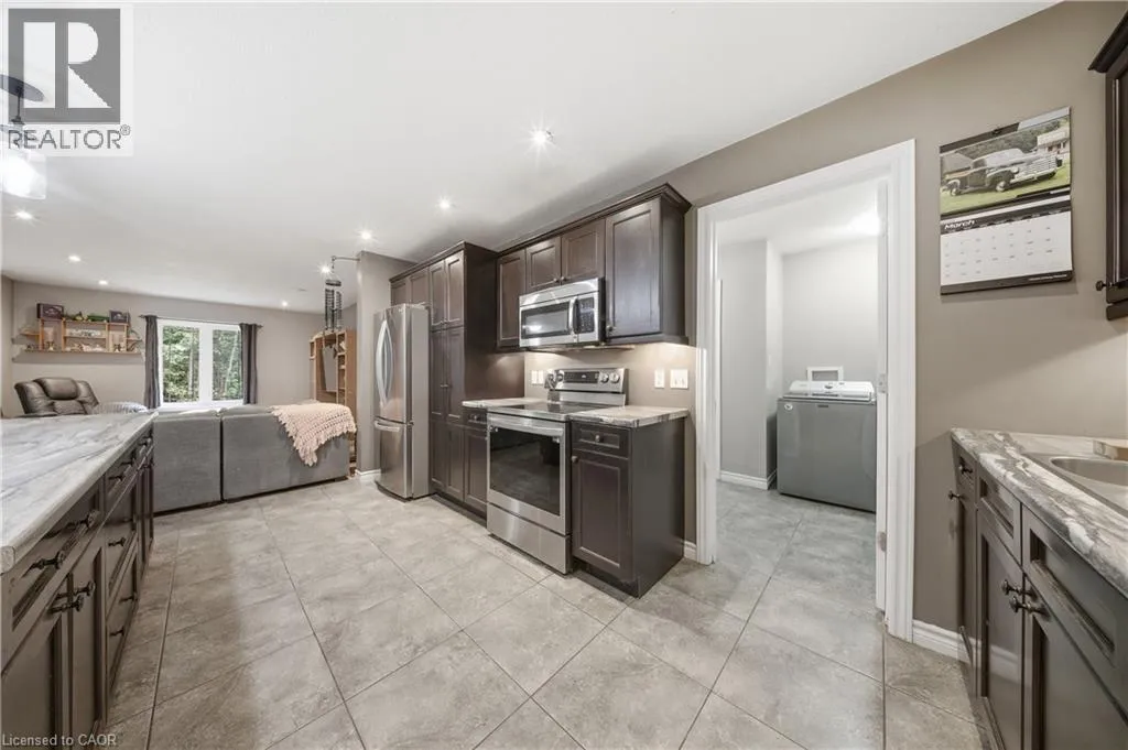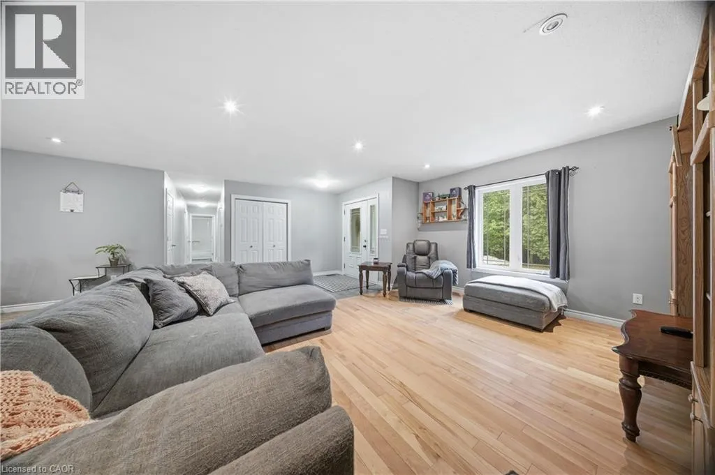 From north on Hwy 9 turn on County Rd 35 to County Rd 30, west to Driftwood Beach Rd. North to property on the right. Nestled on a scenic 21+ acre, elevated lot overlooking Driftwood Beach Road, this stunning 2014 built bungalow offers the perfect blend of modern comfort and serene waterfront living. With 1,717 sq ft of thoughtfully designed space, this stone and vinyl home is surrounded by nature and enhanced by direct access to a portion of picturesque Blind Lake, creating a private retreat you'll never want to leave. Step inside to a bright, open-concept layout ideal for both everyday living and entertaining. The spacious main floor features three generously sized bedrooms, including a primary suite complete with a walk-in closet and private en-suite. Large windows invite in natural light while showcasing tranquil views of the surrounding landscape. The basement offers endless potential, ready for your custom finishing to expand living space, add a recreation area, or create the ultimate guest suite. Outdoors, a large, uniquely designed patio provides the perfect setting to relax, host, and take in the peaceful natural surroundings. The expansive property offers privacy and mature greenery, ideal for enjoying waterfront activities, wildlife, and year-round scenic beauty. Car enthusiasts and hobbyists will appreciate the impressive attached 3-bay garage (22 ft x 38 ft), offering ample space for vehicles, storage, and workspace. Ideally situated for convenience, the property is only a short drive to Clifford, approximately 20 minutes from Hanover and Walkerton, about 24 minutes to Listowel, and roughly an hour from both Kitchener and Owen Sound. This is more than a home, it's a lifestyle. Experience the best of lakefront living with unmatched privacy, natural beauty, and modern convenience all in one exceptional property. (id:27476)