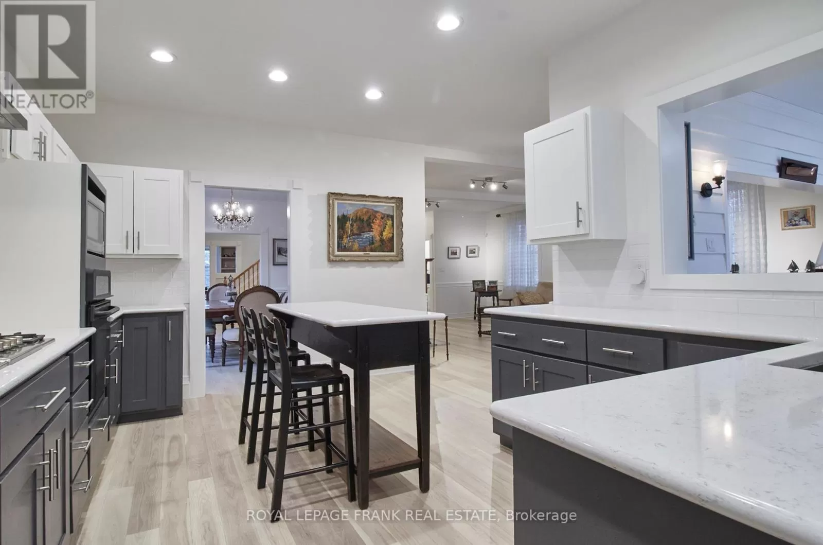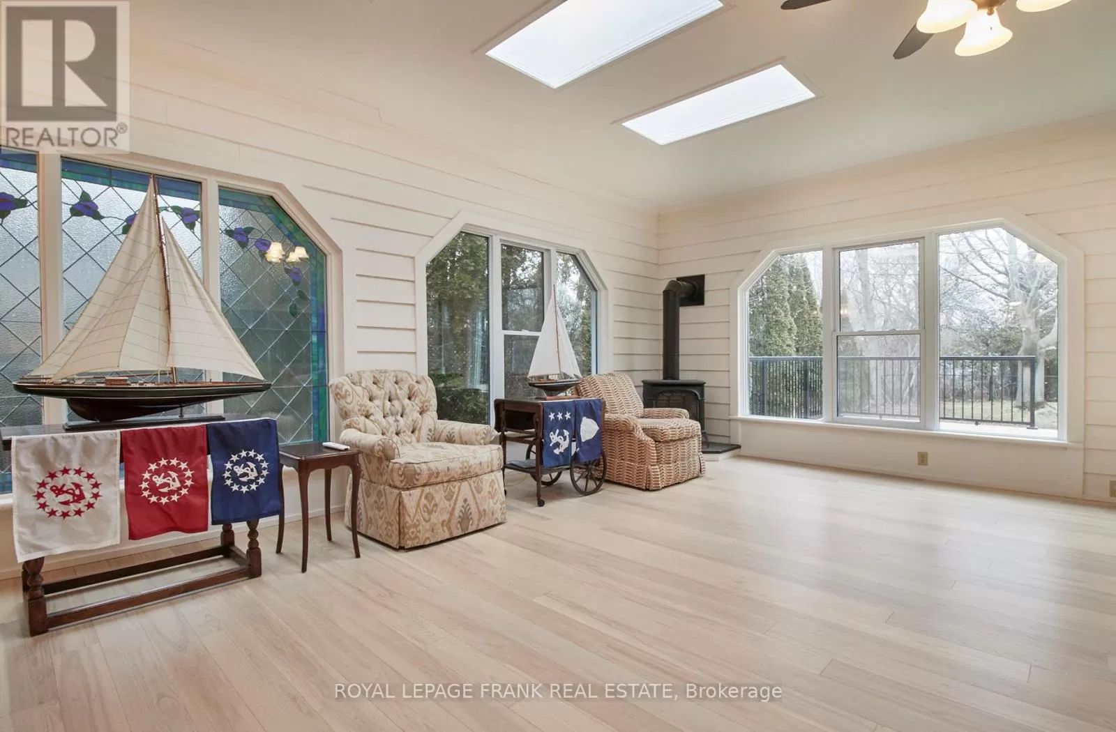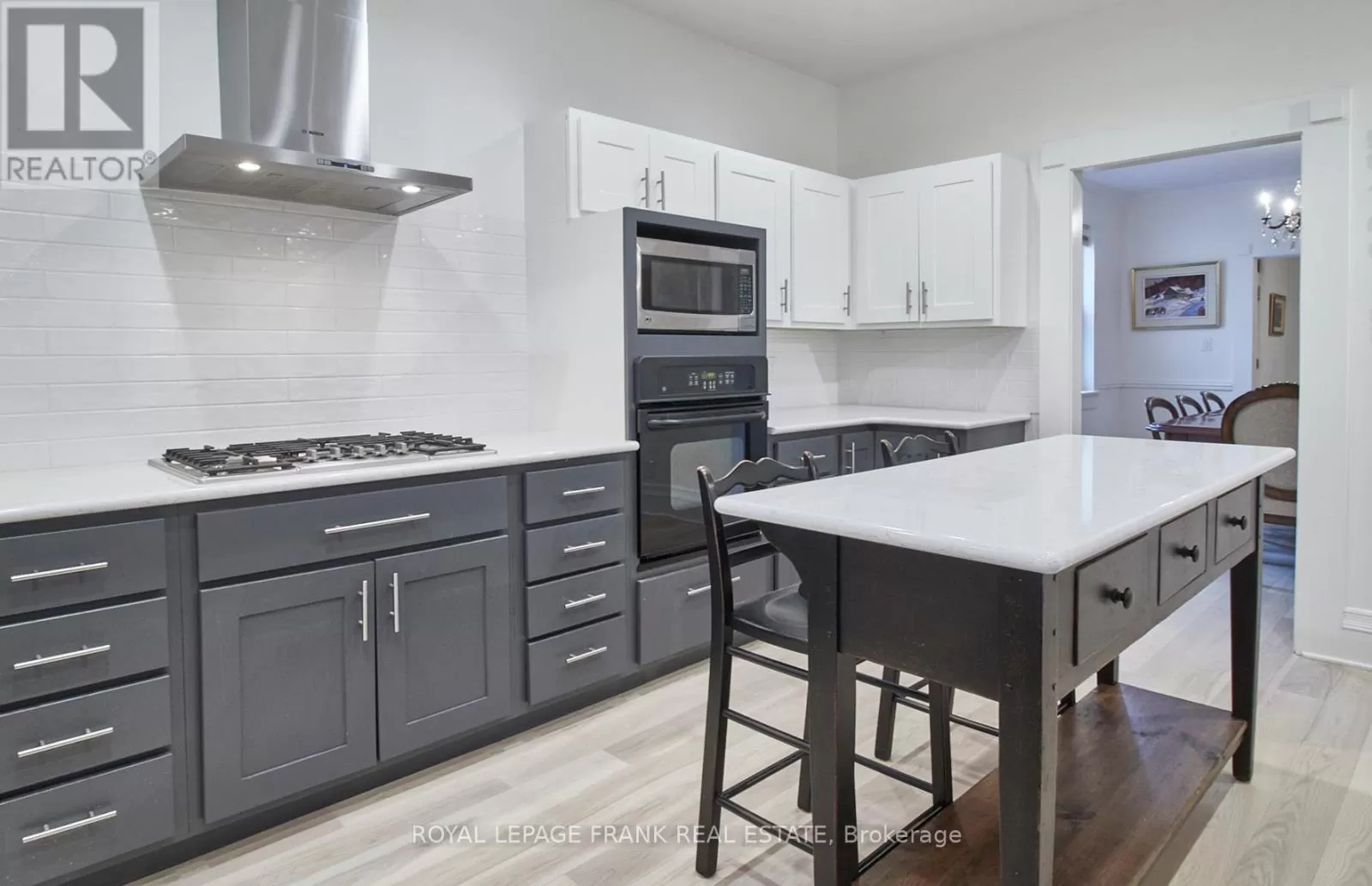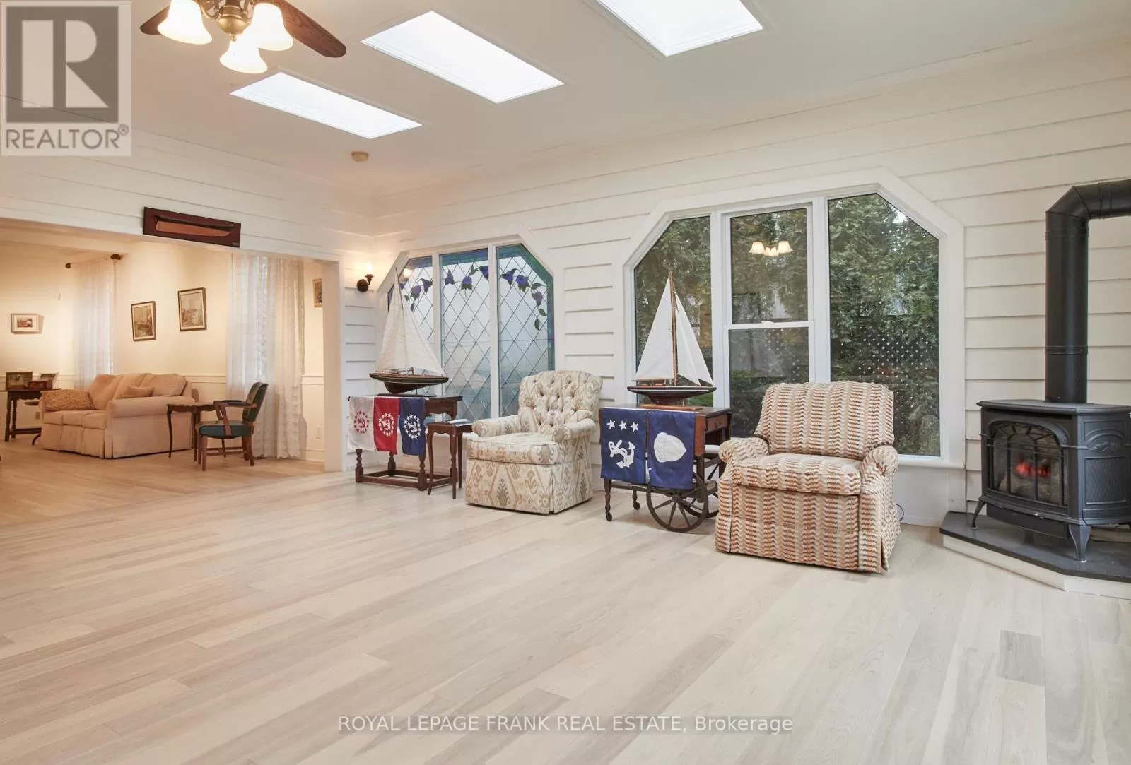 Tremaine St Welcome to 40 Tremaine Terrace located in a prominent, exclusive Cobourg residential neighbourhood on a quiet cul-de-sac bordering Lake Ontario. The fully fenced yard with mature trees & perennials provides a private oasis offering peace and tranquility overlooking Cobourg Creek and Lake Ontario. This recently renovated 4 bedroom + den, 4 bathroom, 3600 sq ft (approx) professional & stylish home offers a sleek, modern kitchen and appliances with centre island, a bright, sun filled, open living area which walks out to a spacious rear deck, complete with BBQ gas line. Perfect for entertaining! Main floor and second floor, sophisticated Master bedrooms with private ensuites. The bonus room above the garage makes a great gym, or quiet private area for reading or reflection. New furnace 2025. The skylights, stained glass windows, fireplace, gas stove, crown mouldings, interlock driveway, second floor laundry, etc are additional details suggesting a grand, thoughtful floor plan and a stunning home with attention to detail! Great value here with an estimated $1.9 million insurance replacement value! (id:27476)