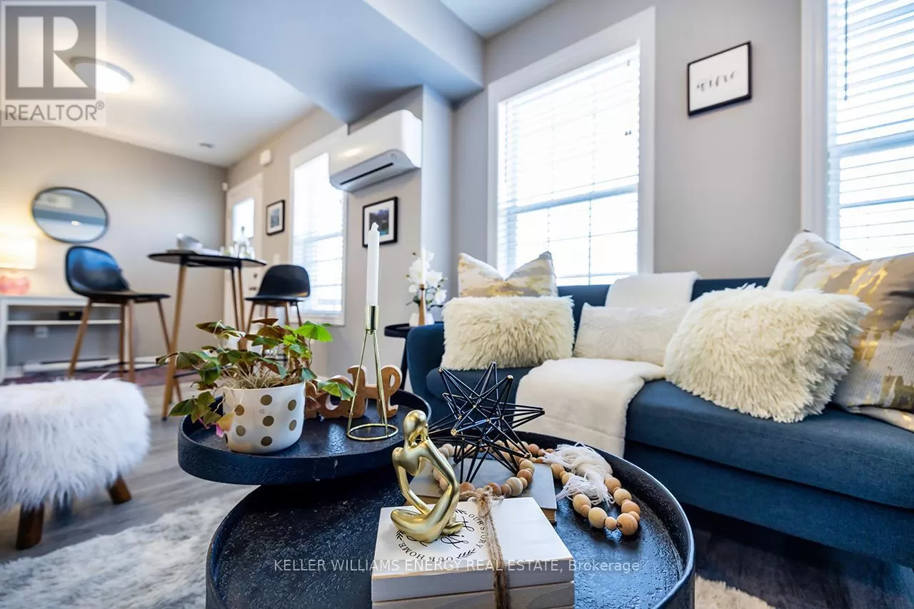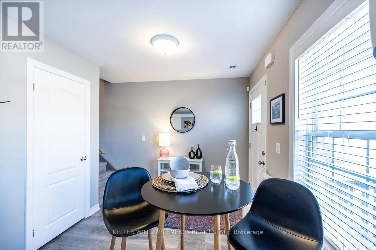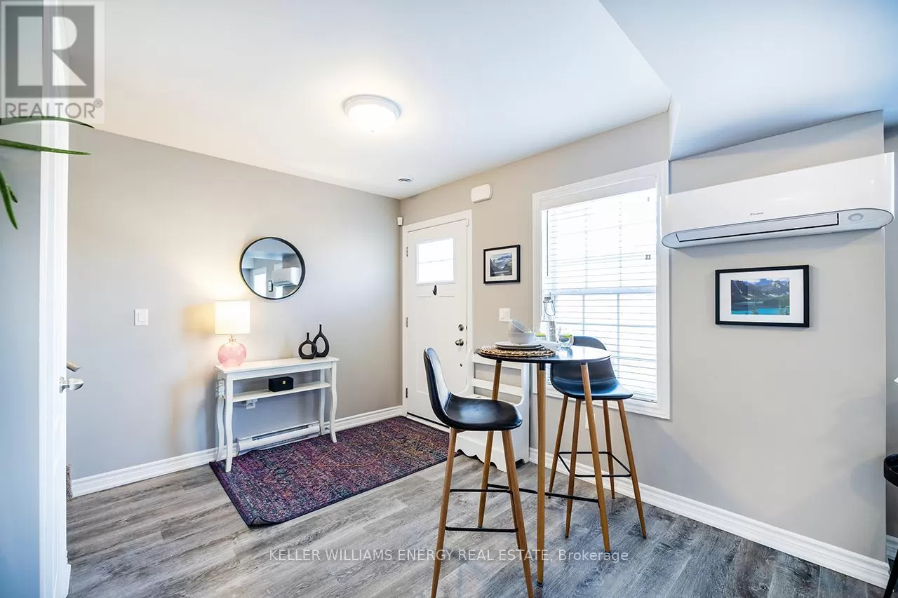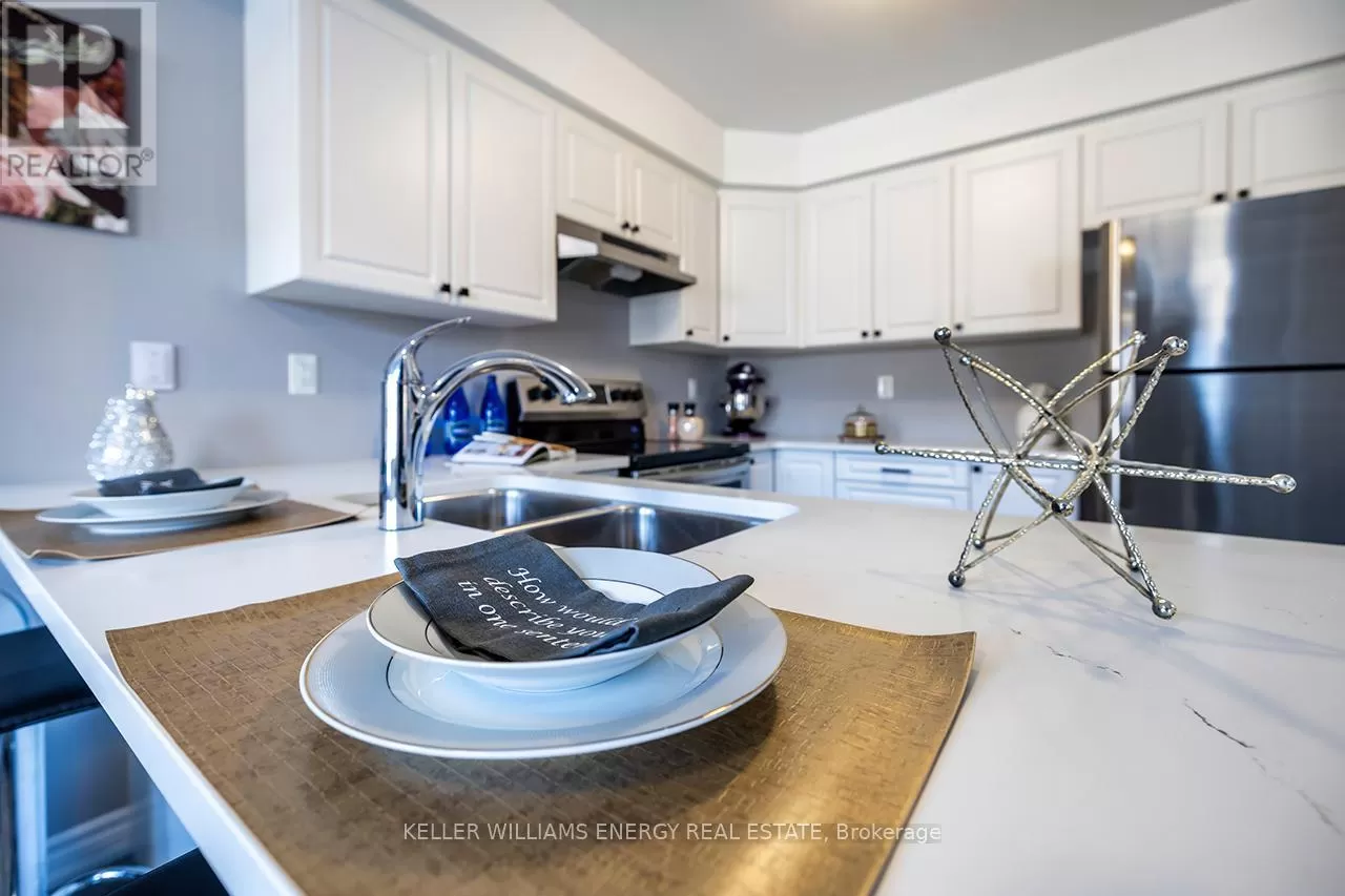 Cross Streets: Brook Rd. N/Stirling Way. ** Directions: Brock Rd N/Stirling Way. Step into this stunning two-story condo townhome in the highly sought-after South-East Village community of Cobourg. Perfectly designed for modern living, the main floor features an open-concept living and dining area flooded with natural light - ideal for entertaining guests or relaxing in comfort. The contemporary kitchen is a chef's dream, offering quartz countertops, a breakfast bar, stainless steel appliances, and convenient pot drawers for smart storage. Sleek luxury vinyl plank flooring flows throughout the main level, adding a touch of sophistication to every space.Upstairs, you'll find two generously sized bedrooms, a four-piece bathroom, and in-unit laundry, providing practicality and comfort for everyday living. The home also includes a designated parking space and easy access to public transit, making your daily commute effortless.Beyond the home, enjoy the vibrant lifestyle of Cobourg's South-East Village. You're just minutes from downtown, top-rated dining, shopping, entertainment, parks, and a quick two-minute drive to the Waterfront - perfect for weekend strolls or evening sunsets. With its combination of style, space, and convenience, this condo townhome is ideal for first-time buyers, downsizers, or anyone looking for a low-maintenance, move-in-ready home.Experience bright, modern living in a prime location where comfort meets community. Don't miss the opportunity to call this beautifully maintained condo townhome your new home in Cobourg. (id:27476)
