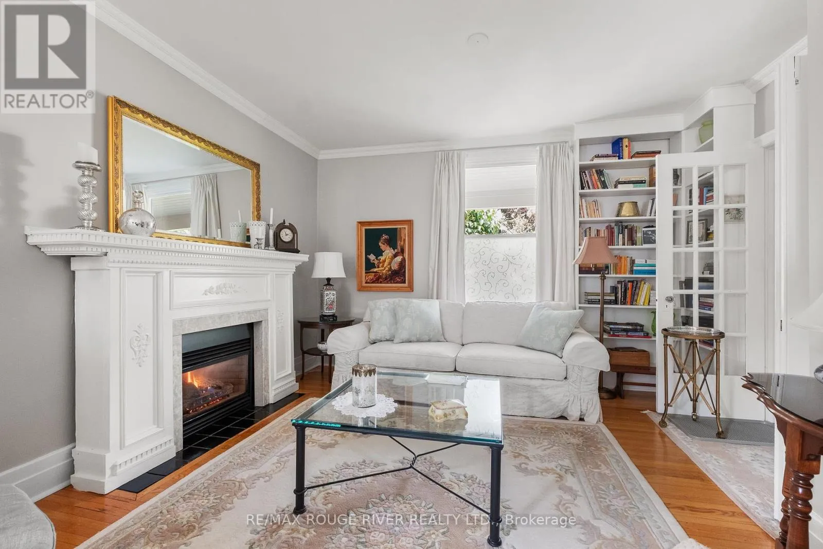 Cross Streets: Chapel St & Walton St. ** Directions: Chapel & Walton St. Nestled on coveted Chapel Street in the heart of heritage downtown Cobourg, a rare opportunity to own a very special spot. Outside, the whimsical and enchanting gardens set the tone for this iconically Cobourg 'Jackson' style 1930s home. The front porch is sure to be a favourite perch for watching the goings by. Inside, the home is as functional as it is full of character. The generous living room is anchored by a gas fireplace, mantel ready for Christmas stockings and family pictures. The back addition includes a 3 piece bathroom with a shower and the kitchen, updated over the years, walks out to the double layer backyard deck, gardens and a sweet hobby shed. The good sized dining room with original built-in cabinetry completes the first floor. Upstairs, a lovely bathroom with clawfoot tub and 3 bedrooms, 2 with large closets. You'll have space for hobbies and storage downstairs. Expressive, lifestyle living, walk to the beach and farmer's market on Saturday mornings, meet friends for lunch at the downtown eateries, revel in the fact that yes- you really do live here! (id:27476)