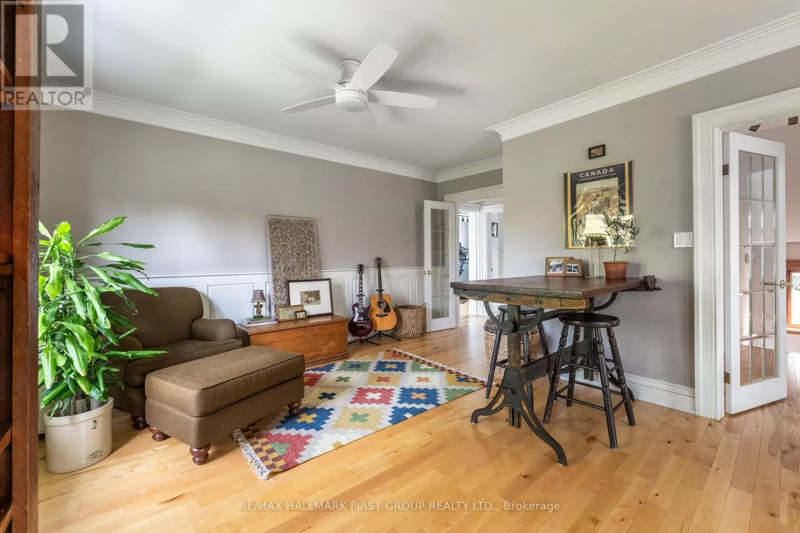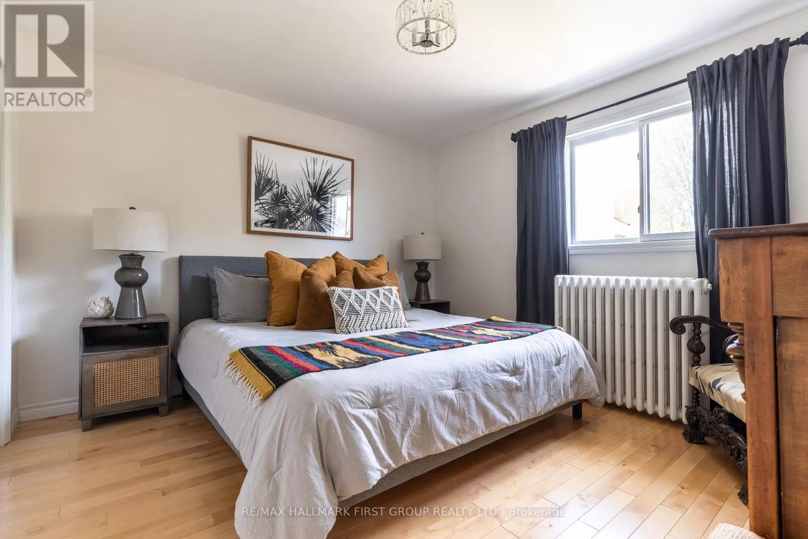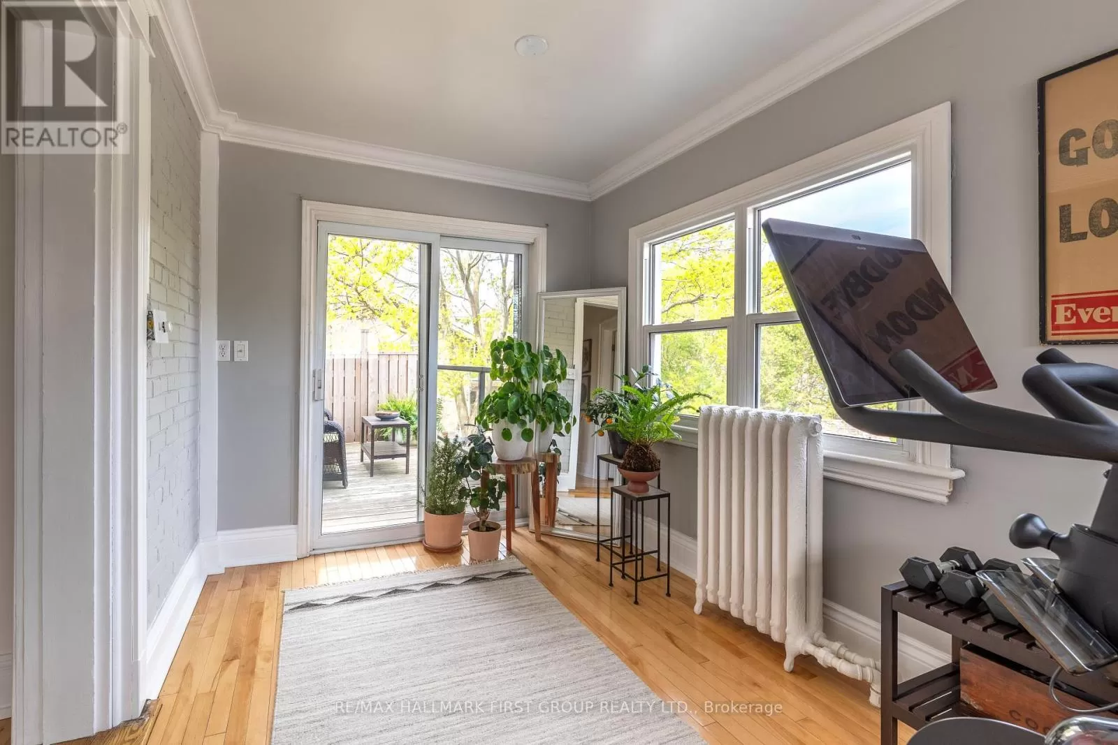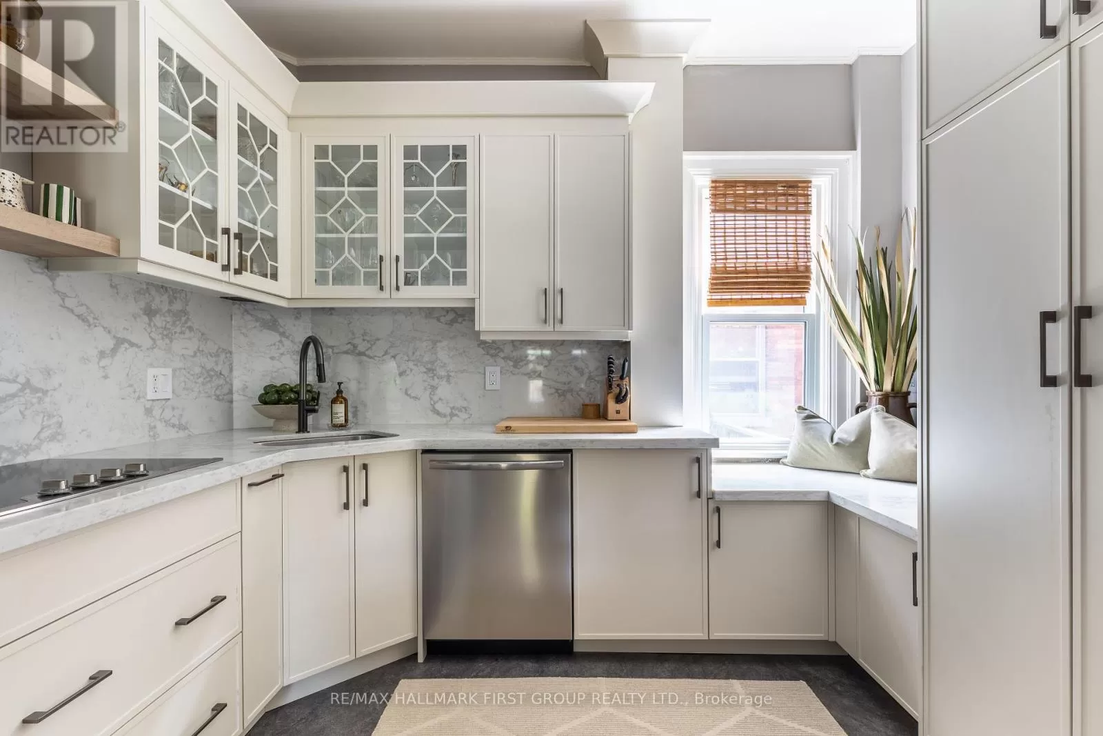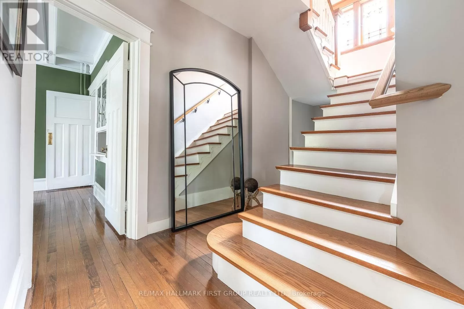 Ball Street & King Street West Magazine worthy-- Impeccably maintained from inside out, with modern updates, this 2.5 storey stunner is located on Cobourg's downtown strip. Known as a 'JEX', this home marries character, charm and historic appeal just steps to the Lake Ontario & the West Beach! Period details in impeccable condition are showcased throughout; stained glass windows, crown moulding, hardwood flooring, baseboard & trim! The absolute best front porch leads to the main floor which features an office/den overlooking King St., a formal living & dining room combination w/ bay windows, fireplace, warm earth tones to ground this space plus wood built in's, a pass through from the dining area to the brand new kitchen which offers soaring ceilings, built-in wall oven, quartz countertops & backsplash & functional prep space. Two guest bedrooms, a gorgeous 4pc. bathroom, access to the mature and private backyard as well as the single car garage complete this level. The 2nd floor, previously used as an in-law suite offers space to re-create the kitchen in the current gym, a 3pc. bath, access to the upper level deck overlooking the yard, a designated laundry room, 3rd bedroom and a large family room w/ hardwood flooring & bright windows. The primary suite spans the entire 3rd floor offering a modern yet sophisticated aesthetic w/ round window detail & a 4pc. ensuite with a clawfoot tub. The expansive back deck overlooks lush gardens and court yard like design. Enjoy a night on your porch, your pergola covered patio or entertaining inside with style. In the heart of it all, the curb appeal, the condition and the location are well worth the move to downtown! (id:27476)