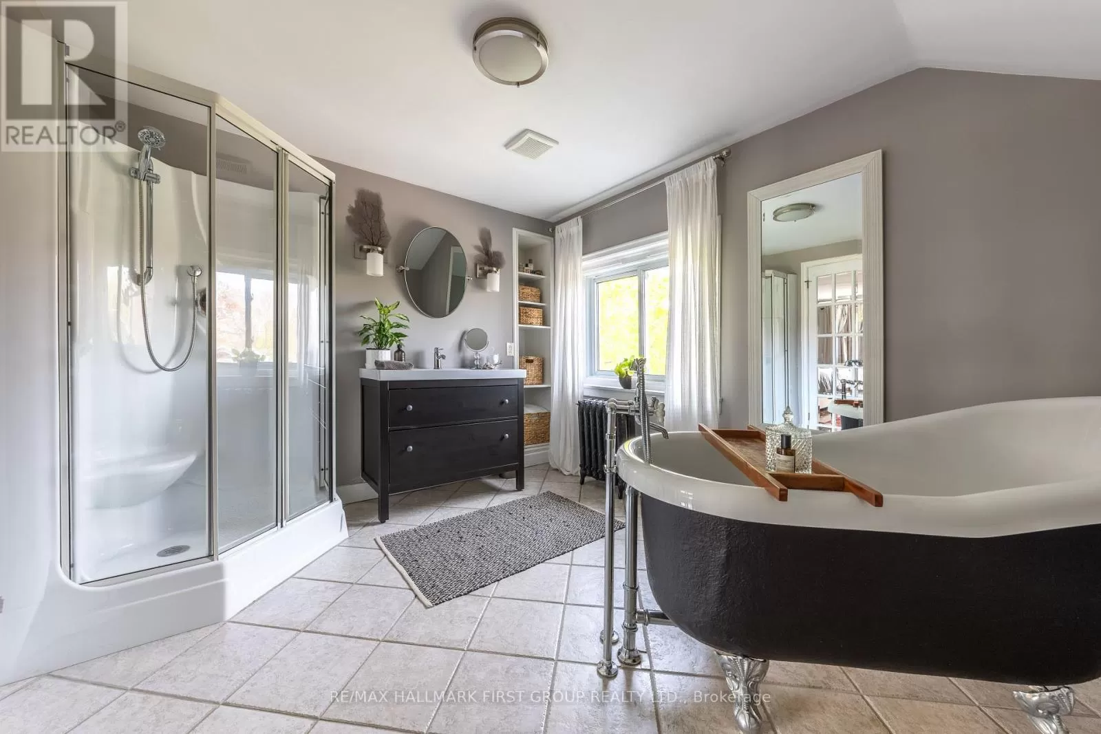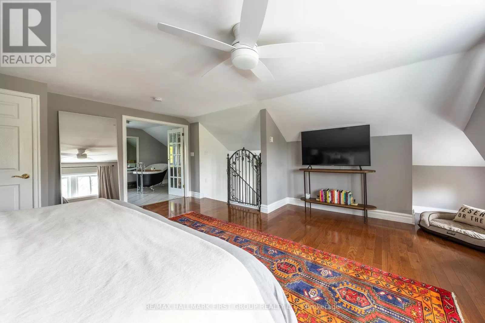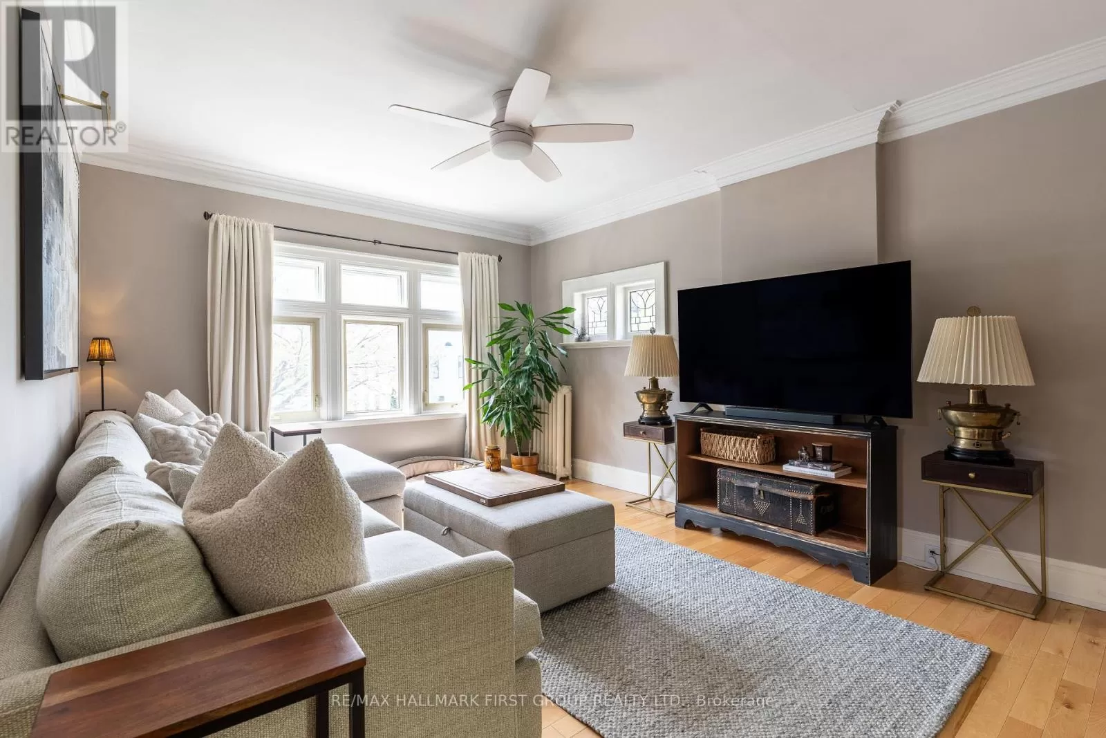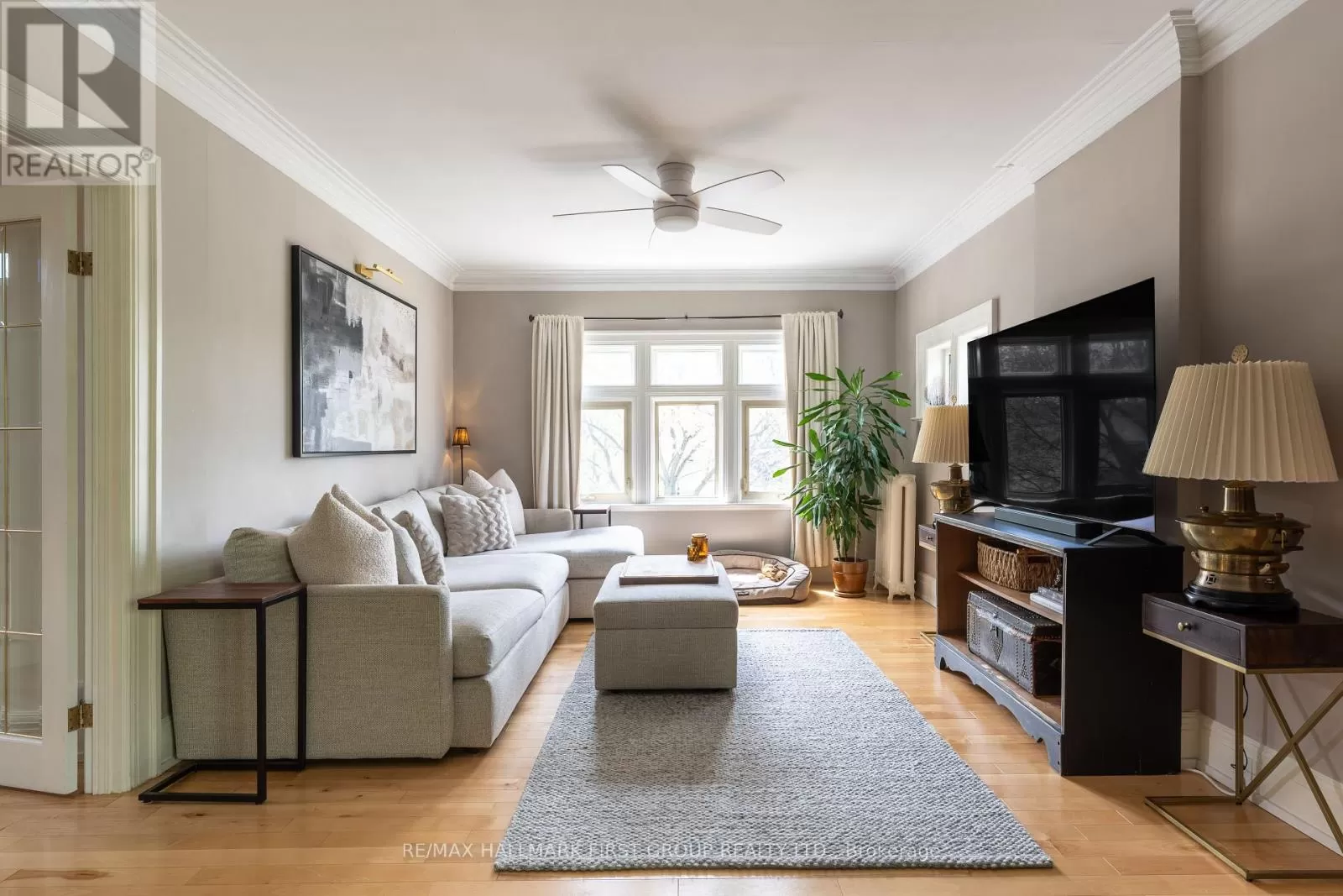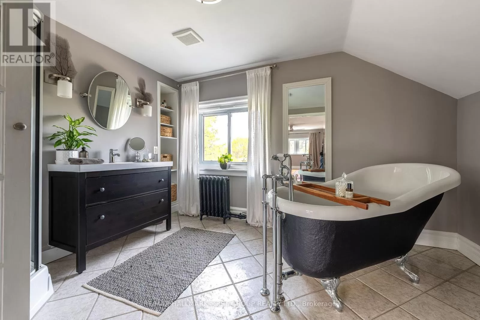 Ball Street & King Street West Magazine worthy-- Impeccably maintained from inside out, with modern updates, this 2.5 storey stunner is located on Cobourg's downtown strip. Known as a 'JEX', this home marries character, charm and historic appeal just steps to the Lake Ontario & the West Beach! Period details in impeccable condition are showcased throughout; stained glass windows, crown moulding, hardwood flooring, baseboard & trim! The absolute best front porch leads to the main floor which features an office/den overlooking King St., a formal living & dining room combination w/ bay windows, fireplace, warm earth tones to ground this space plus wood built in's, a pass through from the dining area to the brand new kitchen which offers soaring ceilings, built-in wall oven, quartz countertops & backsplash & functional prep space. Two guest bedrooms, a gorgeous 4pc. bathroom, access to the mature and private backyard as well as the single car garage complete this level. The 2nd floor, previously used as an in-law suite offers space to re-create the kitchen in the current gym, a 3pc. bath, access to the upper level deck overlooking the yard, a designated laundry room, 3rd bedroom and a large family room w/ hardwood flooring & bright windows. The primary suite spans the entire 3rd floor offering a modern yet sophisticated aesthetic w/ round window detail & a 4pc. ensuite with a clawfoot tub. The expansive back deck overlooks lush gardens and court yard like design. Enjoy a night on your porch, your pergola covered patio or entertaining inside with style. In the heart of it all, the curb appeal, the condition and the location are well worth the move to downtown! (id:27476)