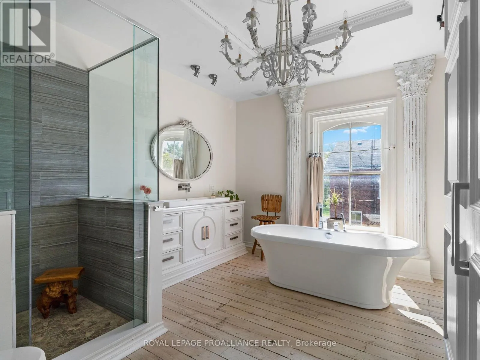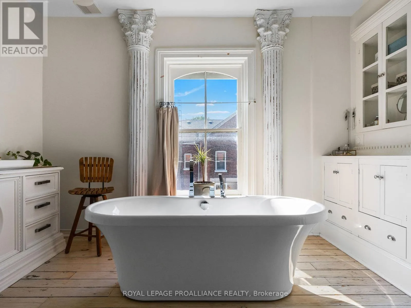 Cross Streets: King St W. ** Directions: Division St to King St W, go west to George St, North on George St, #314 on the right. Welcome to 314 George St, a distinguished Italianate brick home built in 1876 and filled with both character and modern comfort. Solidified in history as The Fletcher House, this two-storey, five bedroom, three bath home seamlessly blends character, comfort, and practicality in the heart of Cobourg. Inside, you'll find hardwood flooring throughout and preserved original details that add timeless charm. The homes original fireplaces remain as striking architectural features, maintaining the historical character while no longer in use. Thoughtful updates include quartz counters, closet solutions, a whole-home carbon filter, and convenient upper-level laundry. The home is carpet free, with a furnace updated approximately ten years ago and air conditioning added eight years ago. Generous living spaces provide room for both everyday life and entertaining, offering areas to gather as well as quiet corners to work from home or simply relax. A full, unfinished basement offers excellent storage and potential for future use. Outdoors, the fully fenced yard and large patio create a private oasis, perfect for hosting or enjoying peaceful downtime. Sod was replaced in the backyard in 2019, enhancing the outdoor living space. Two options for driveway parking exist off of both George Street and Buck Street. The home enjoys a prime location in the downtown core, a skip to the beach and marina, train station, schools, and restaurants. With its unique balance of flow and grandeur, along with its feeling of calm and offerings of privacy, this exemplary property is one not to be missed. (id:27476)
