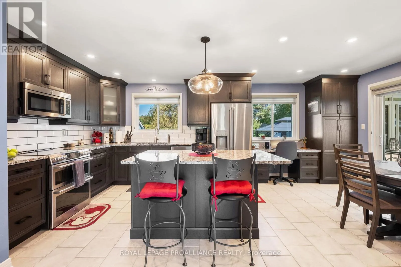 Cross Streets: Castlehill Dr & Danforth Rd. ** Directions: From 401 and Hwy 45, north on Hwy 45 (Baltimore Rd), Left on Danforth Rd, right on Castlehill Dr, Property on the right. When Location Tops Your List - This One Delivers! Set on a private, beautifully landscaped lot just minutes from Cobourg's beach, marina, golf, hospital, shopping, dining, and 401 access, this meticulously maintained raised bungalow offers the perfect blend of country charm and town convenience. Step inside this bright and updated 2+1 bedroom, 2-bathroom home and be instantly impressed. The modern gourmet kitchen features granite counters, extensive custom cabinetry, and a built-in desk perfect for everyday living and entertaining. A stunning 4-season sunroom with cathedral ceiling, heat/AC, and wraparound windows opens to a unique upper deck with views of Lake Ontario ideal for morning coffee or sunset gatherings. The lower level offers a generous family room, freshly renovated 3-piece bath, bright third bedroom, and a large laundry area with direct entry to the 1.5-car garage. Enjoy quality finishes throughout, including hardwood, tile, and luxury vinyl plank flooring. Energy efficiency is top-notch with a ground-source heat pump and premium Water Furnace system offering substantial hydro savings. Outside, the charm continues with perennial gardens, fruit trees, berries, asparagus beds, and a steel gazebo with custom rubber flooring. Three custom sheds (10x18, 8x10, 8x8) provide excellent storage. Additional upgrades include a lifetime metal roof, freshly paved drive, newer windows, high-end kitchen appliances (10K+), dusk-to-dawn motion lighting, and security system. Full list of features/upgrades attached. Move-in ready and truly special this is the one you've been waiting for! (id:27476)