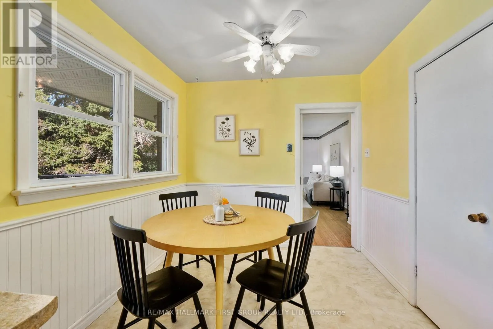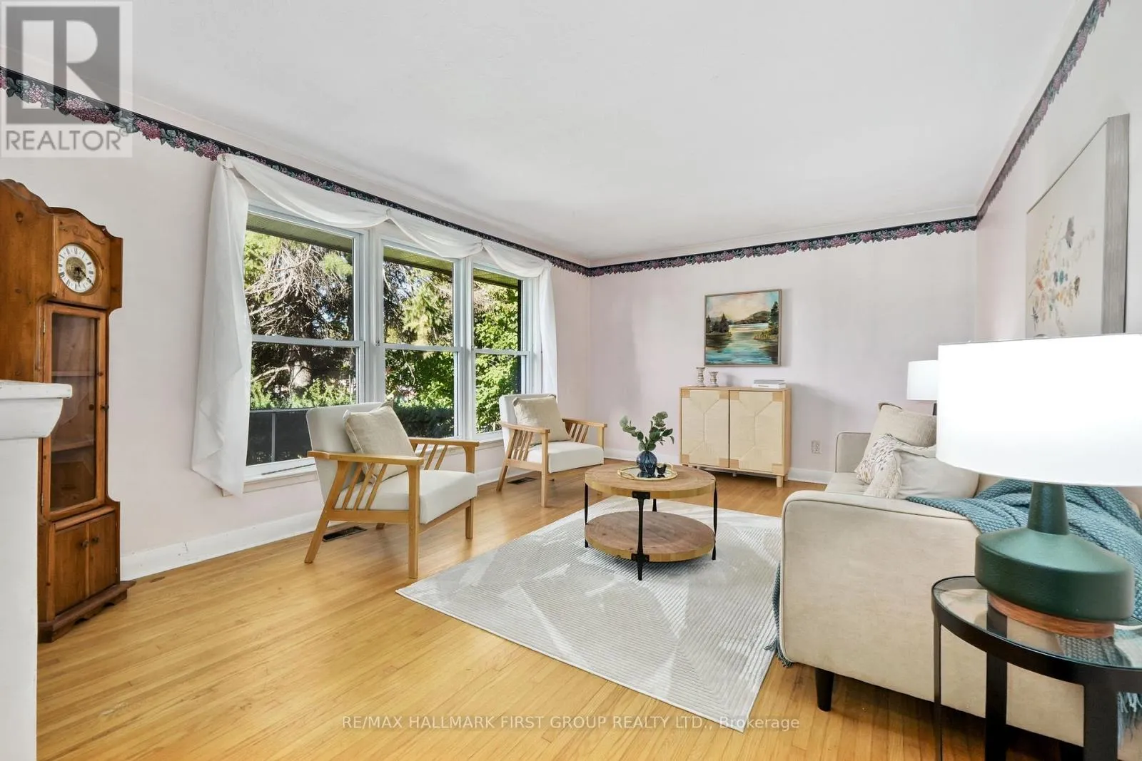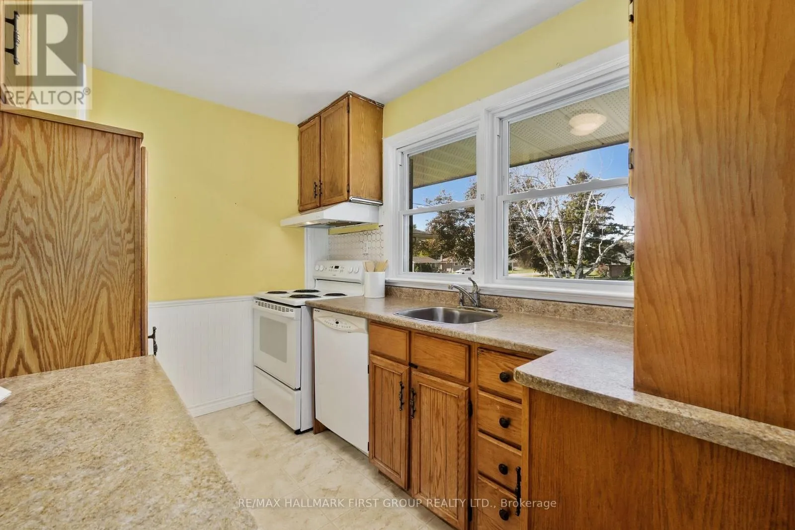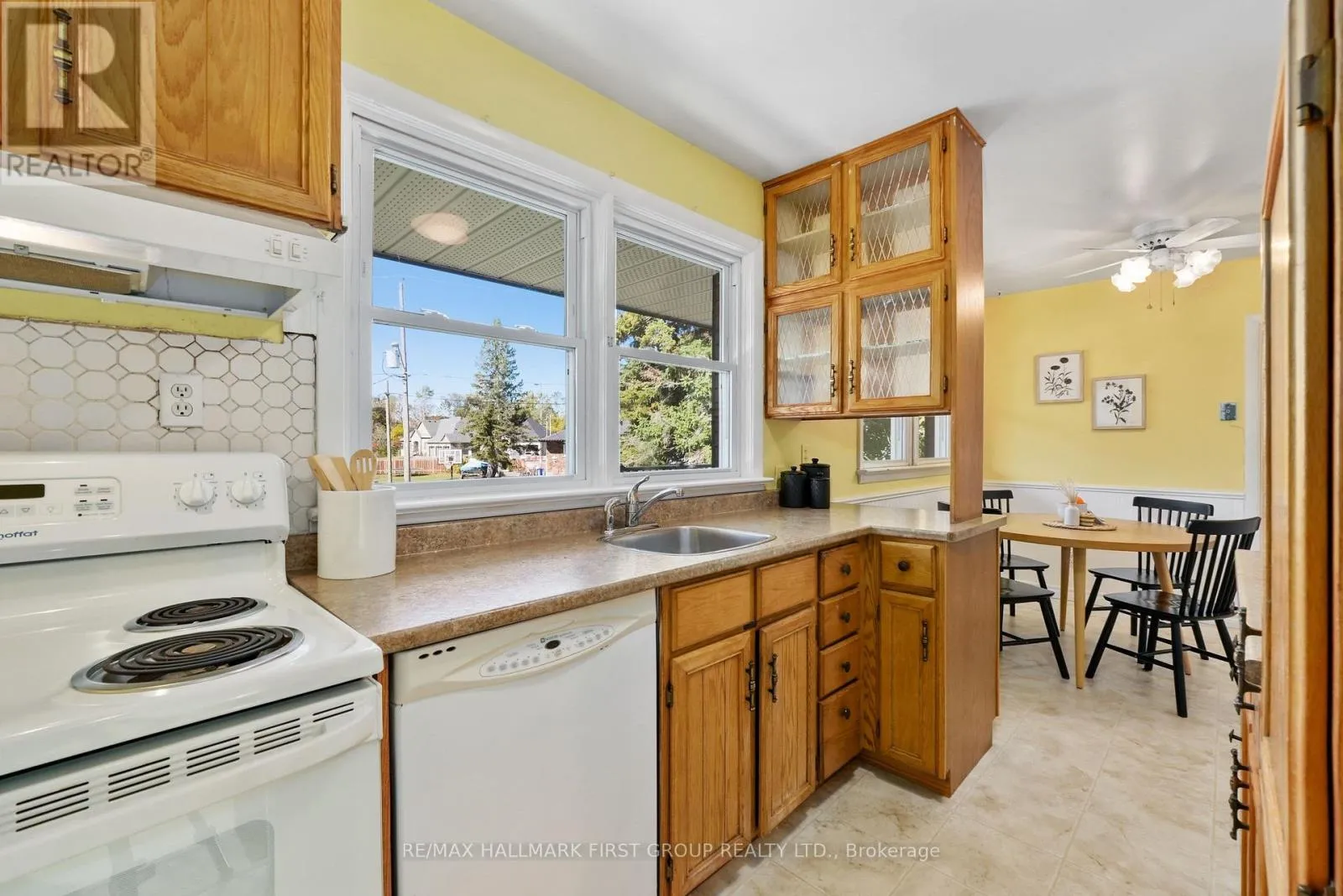 Cross Streets: Nickerson Dr & D'Arcy St. ** Directions: D'Arcy St heading North, Cross Elgin St E, Turn Right onto Nickerson Dr. Nestled in a quiet, family-friendly neighbourhood, this charming bungalow offers versatile living with lower-level in-law potential and a separate entrance. The front living room features a carpet-free layout and a large wall of windows that fill the space with natural light. The bright eat-in kitchen connects seamlessly to the open dining area and showcases two large windows above the sink and prep area, along with classic wood cabinetry. The main level includes three well-appointed bedrooms, a full bathroom, and the convenience of main-floor laundry. The lower level extends the living space with a separate entrance, a spacious rec room, two additional bedrooms, a three-piece bathroom, and plenty of storage options. Outside, enjoy a fully fenced yard with a dedicated area perfect for four-legged family members, plus ample green space for relaxation and play. Situated close to amenities and offering easy access to Highway 401, this property combines comfort, functionality, and convenience for the whole family. (id:27476)