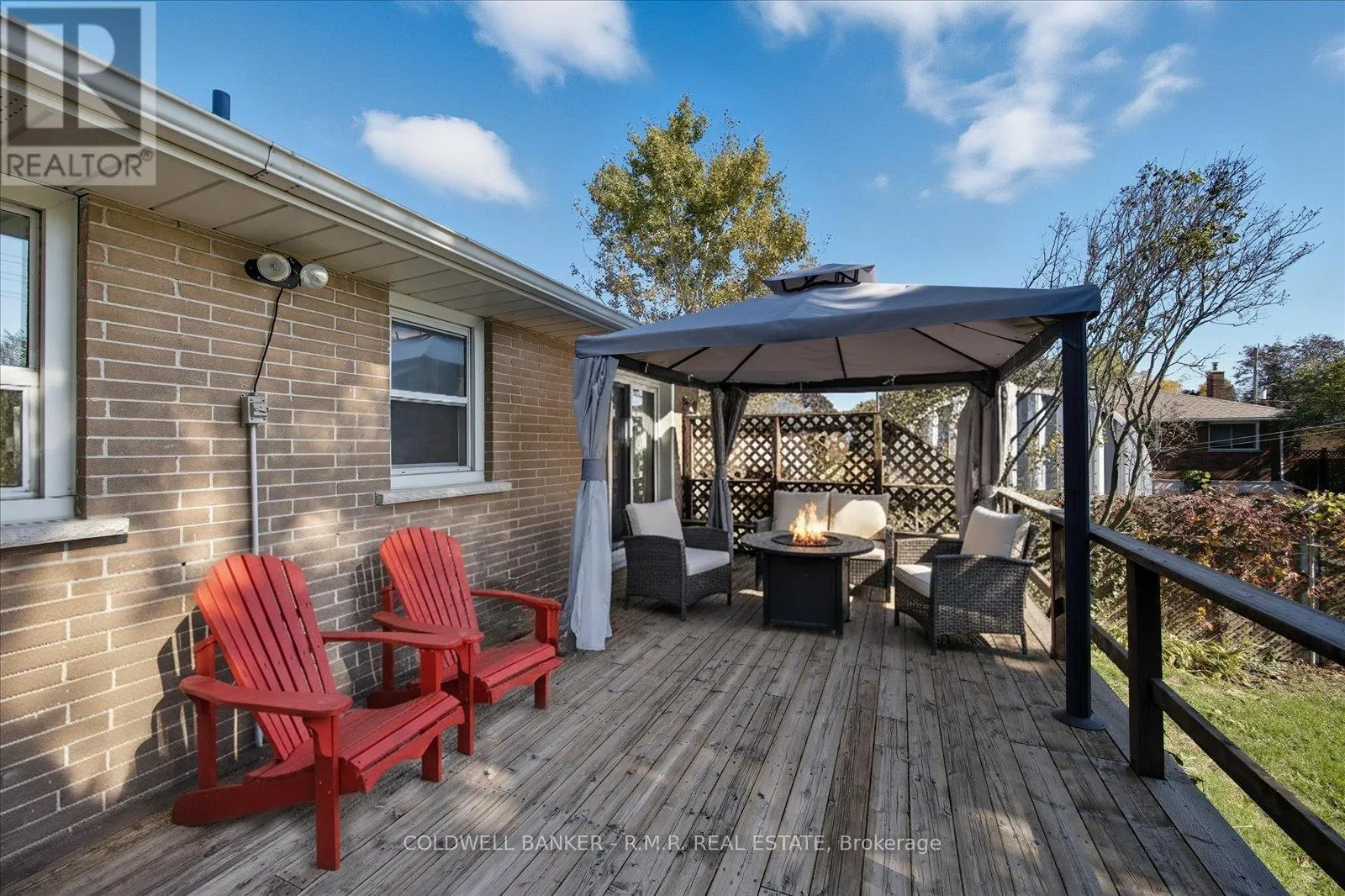 D'arcy St. and Nickerson Dr. Move in for CHRISTMAS! Well-Maintained Home with Separate Lower-Level Living and Expansive Outdoor Space. Welcome to 239 Nickerson Drive, a thoughtfully maintained home set on an impressive 235-foot deep lot in Cobourg's desirable east end. This inviting property offers a bright and functional layout along with a fully finished lower level featuring its own kitchen, BONUS ROOM, full bathroom, living room and separate entrance. Ideal for extended family, guests, or in-law living. Check local rules for potential rental. The main floor features two comfortable bedrooms, eat-in kitchen, full bath, and a living and dining area with plenty of natural light and patio doors leading to an oversized 12 x 20 deck the perfect spot for entertaining or relaxing outdoors in TOTAL PRIVACY. Deck includes a gazebo, creating a shaded retreat surrounded by mature trees. The spacious yard ( great spot for a skating rink) offers plenty of room for kids to play and your furry friend to run. Included are three garden sheds for all your outdoor tools and storage needs. Located in a quiet, family-friendly neighbourhood, this home is steps from the Cobourg Community Centre, which offers fitness facilities, skating rinks, and year-round recreation programs. Close to schools, parks, shopping, and Cobourg's vibrant downtown and beach combining space, comfort, and lifestyle in one perfect package. PLEASE NOTE: THIS PROPERTY IS VIRTUALLY STAGED. (id:27476)