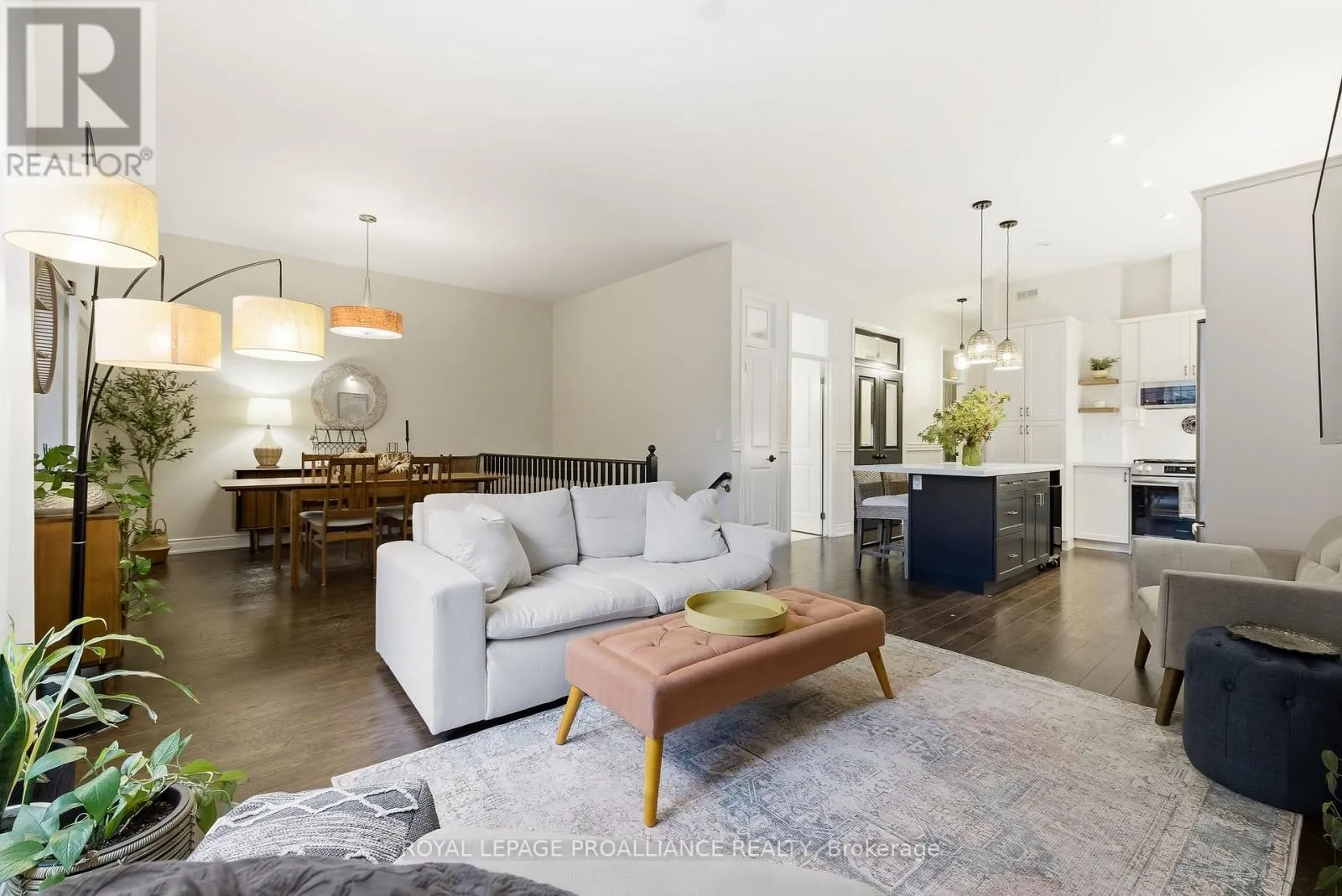 Cross Streets: Lees Ave & Carlisle St. ** Directions: From Elgin ST W take Rogers Rd south, turn right on Carlisle & in 650m turn left on Lees. Sited on a quiet tree-lined boulevard in the sought after New Amherst development, this immaculate 3 bedroom, 2.5 bathroom townhouse offers stylish, low-maintenance, one level living and a turnkey opportunity for those seeking a simpler lifestyle in a great location! Featuring soaring 10 foot ceilings and an updated, open concept kitchen that overlooks the living and dining areas, this thoughtfully laid out bungalow also boasts a convenient main floor laundry and a 2 piece bathroom for guests. The spacious primary suite features a double walkthrough closet that leads to a spa-like, 4 piece ensuite bath, while the 2nd main floor bedroom has brand new flooring and a large closet. Downstairs the fully finished basement showcases large windows that flood the family room and 3rd bedroom with natural light. Presently used as a sewing room, the oversized 3rd bedroom also features French doors and a large closet. Completing the lower level you have an office/ bonus room with an oversized closet offering loads of storage, 3 piece bathroom with walk-in shower and utility room. Located at the rear of the property and accessible from the laundry/ mudroom area are the attached single car garage and the fully fenced flagstone patio that overlooks the rear laneway. Here you will find little, to no grass to cut and the perfect place to enjoy the sunrise with a morning cup of coffee or unwind with friends and family after a long day. With such little maintenance to worry about, a reasonable $36 rear laneway fee and highly efficient utilities, this freehold townhouse gives the astute buyer a chance to live in a great upscale neighbourhood, while enjoying low carrying costs and an all around simpler way of life. (id:27476)