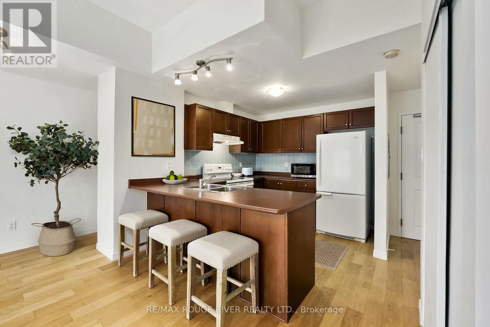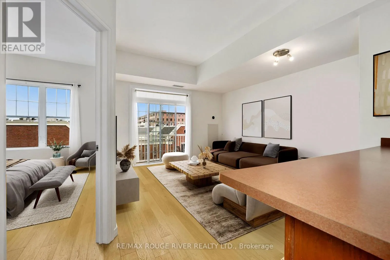 Third St & The Esplanade A rare and special find, this lakeside jewel box offers Cobourg lifestyle living at its finest. Flexible and convenient, a perfect fit for a downsizer, or opportunity to own a pied-a-terre or executive rental. Step inside, the open concept kitchen/living space is as warm as it is functional, leading out onto the West facing patio that overlooks a quiet and charming courtyard where you can enjoy inspiring sunsets. The light and bright bedroom's high ceilings will delight and the bathroom with adjacent in-suite laundry are all you need. The lobby, amenity room and common elements are modern, welcoming and clean. Just outside your front door be surrounded by opportunities to stroll, watch the goings on, enjoy fine dining and shopping as well as the famous Cobourg Beach - a special place visited from far and wide. **TV Cable & Internet fees are included in monthly maintenance costs.** Don't miss this chance of accessible home ownership in one of Cobourg's most coveted and desirable locations. Upgrades include: New A/C'24, freshly painted'25, hand scraped oak flooring throughout main living areas. **Some photos have been digitally staged** (id:27476)