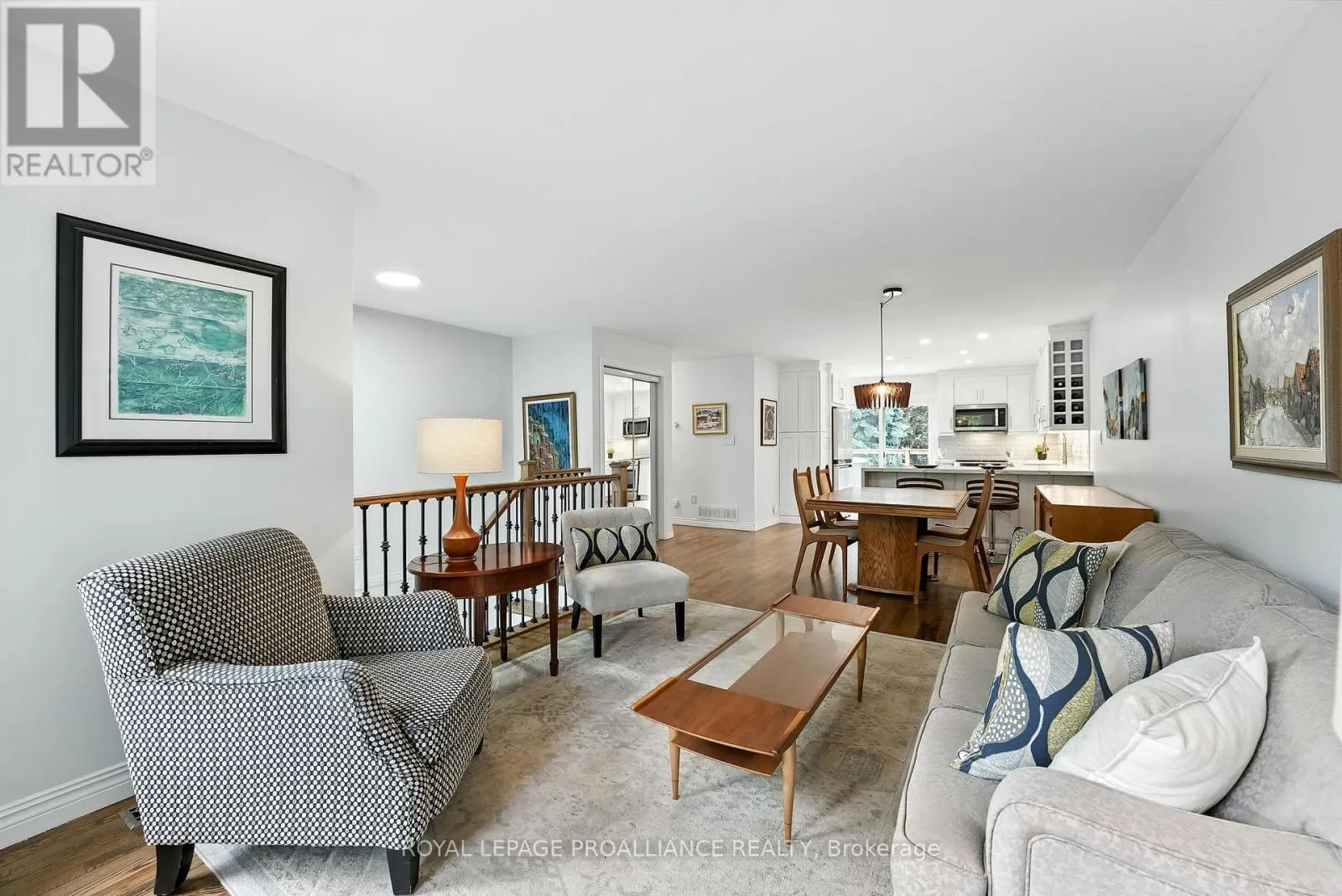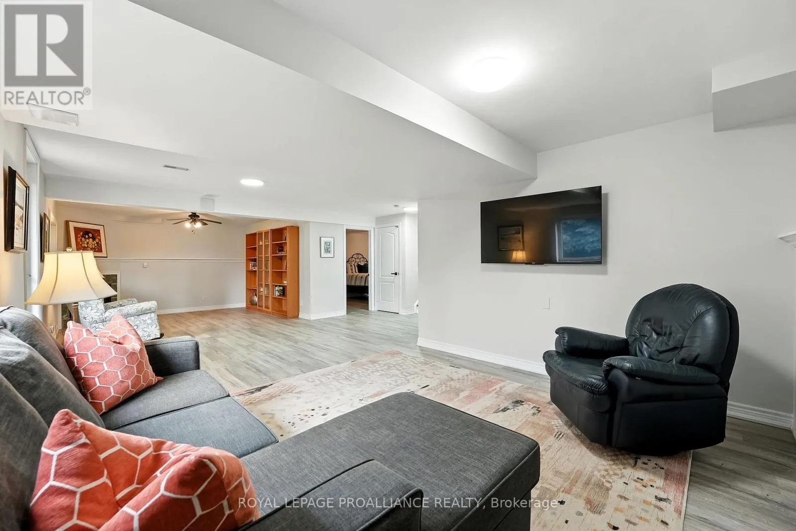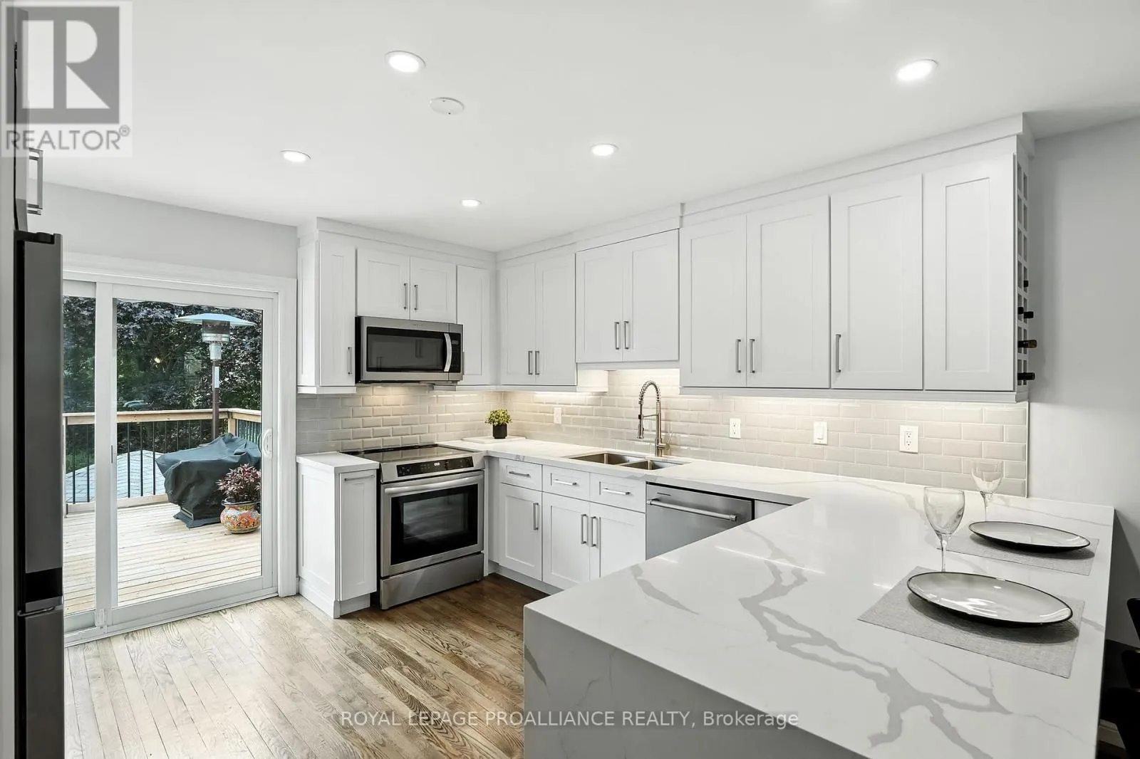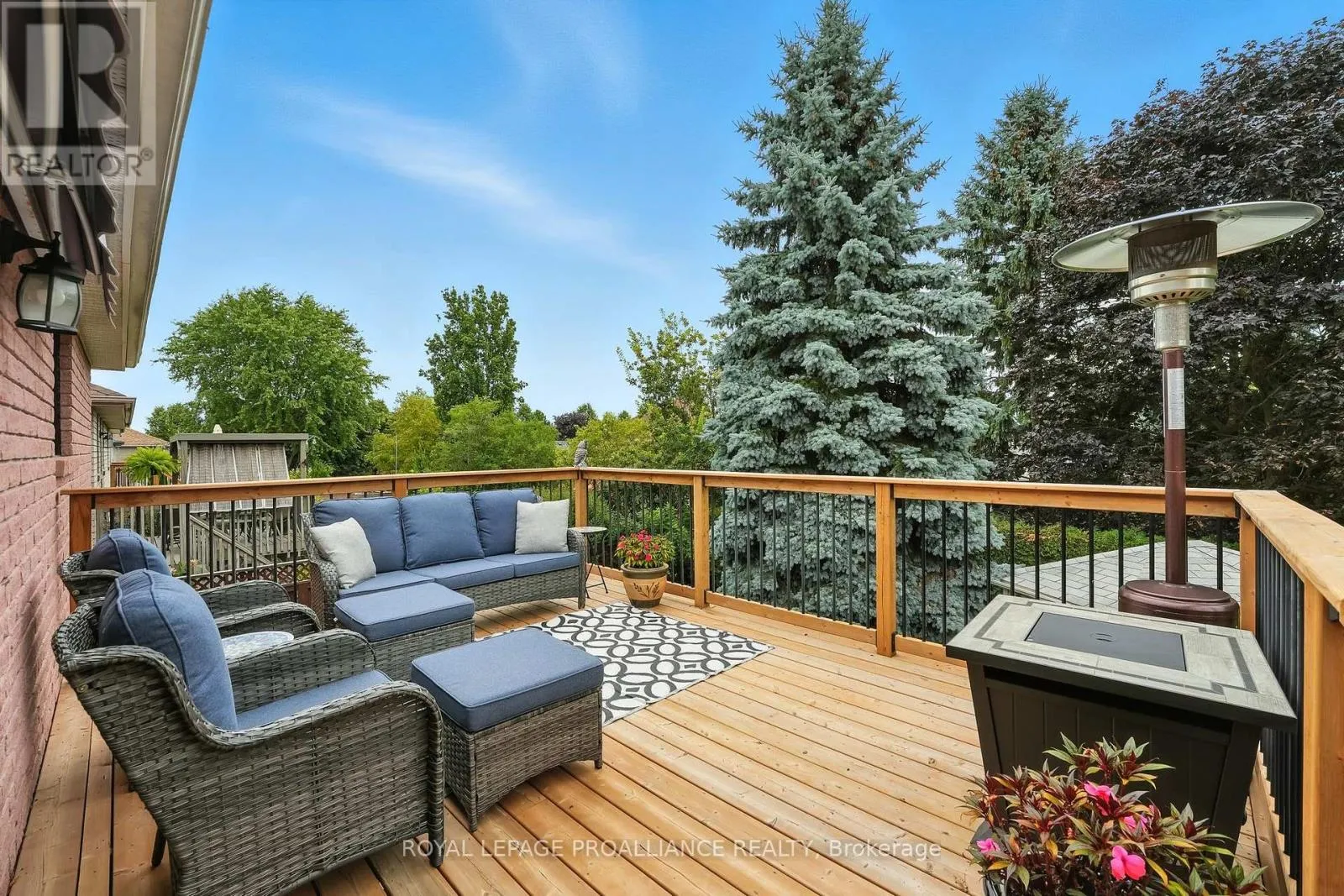 Cross Streets: Burnham and Raynor. ** Directions: Burnham exit from Highway 401south to Raynor. Designed with comfort, elegance, and functionality in mind, this property offers exceptional Designed with comfort, elegance, and functionality in mind, this property offers exceptional Home Depot, and Terry Fox School, and just minutes from downtown. Scenic walking trails, parks along the creek, and the YMCA are all within walking distance. Inside, expansive custom windows allow for plenty of natural light throughout, while elegant hardwood flooring adds warmth. The gourmet kitchen features a peninsula island and abundant cabinetry, designed for entertaining and seamlessly connected to the open-concept dining and living areas. The fully finished basement includes a natural gas fireplace and a walkout to the backyard deck. The spacious deck off the kitchen functions as an extra summer room, perfect for relaxing or entertaining. The exterior offers an attached 1 12-car garage with exterior opener, driveway parking for four vehicles, and a lovely, green backyard-ideal for enjoying the outdoors while still being minutes from town and Hwy 401. Recent upgrades make this home truly move-in ready. Highlights include a custom kitchen with quartz countertops and waterfall peninsula (2023), renovated bathrooms, refinished hardwood flooring, new stairs and railings, LVP flooring in the basement, new appliances, expanded front patio, new windows, doors, patio door, awning fabric, garage door, water softener, new decks, and a custom closet organizer in the primary suite. Additional improvements include ceramic tile at the front entrance, extra attic insulation, furnace, and central air. (id:27476)