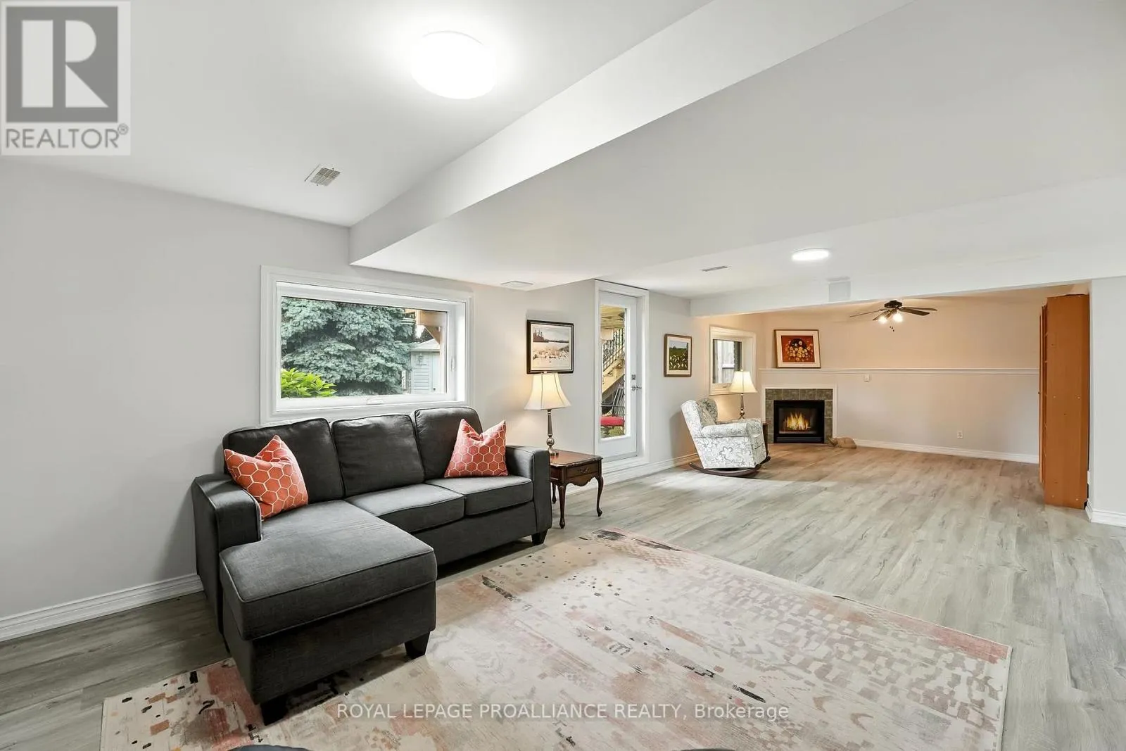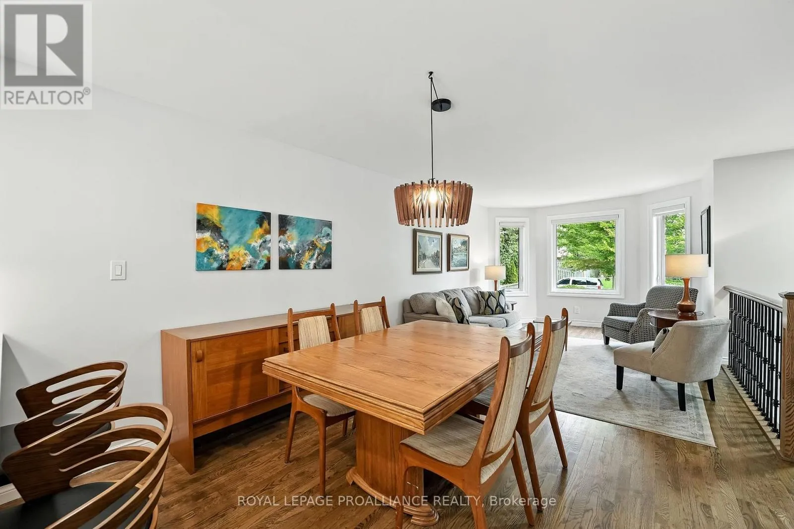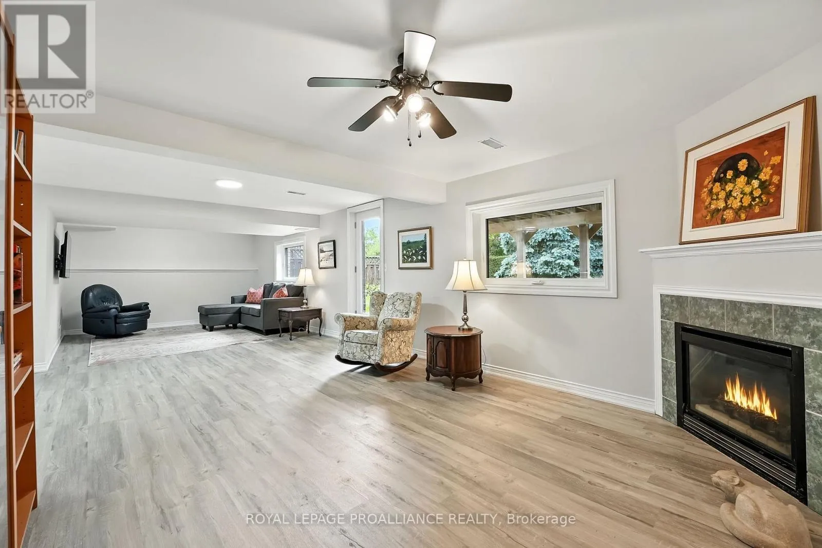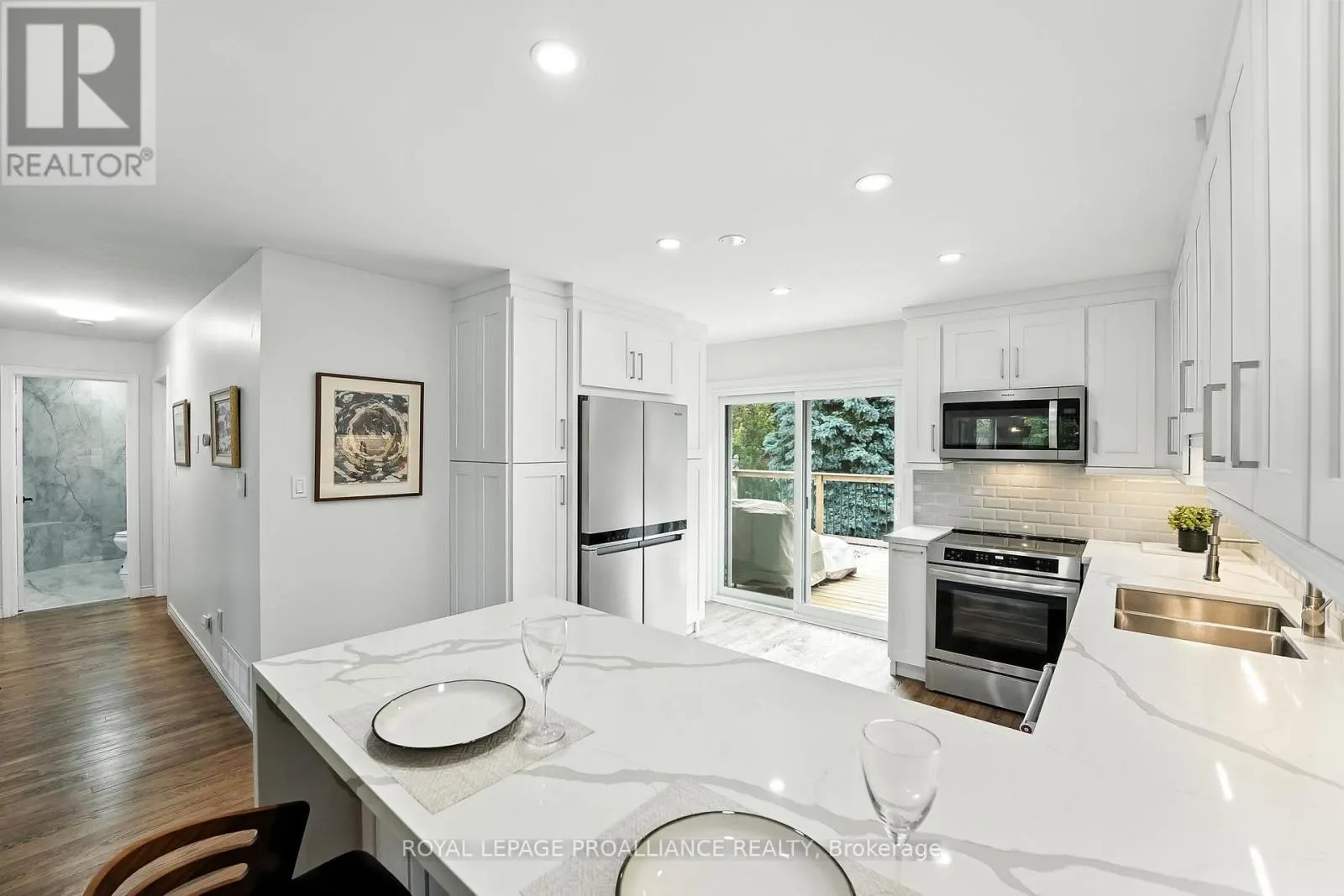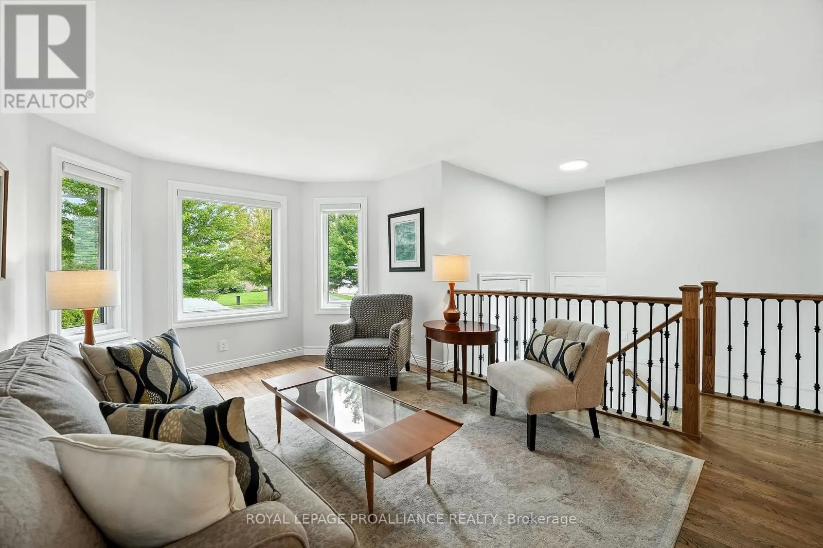 Cross Streets: Burnham and Raynor. ** Directions: Burnham exit from Highway 401south to Raynor. Designed with comfort, elegance, and functionality in mind, this property offers exceptional Designed with comfort, elegance, and functionality in mind, this property offers exceptional Home Depot, and Terry Fox School, and just minutes from downtown. Scenic walking trails, parks along the creek, and the YMCA are all within walking distance. Inside, expansive custom windows allow for plenty of natural light throughout, while elegant hardwood flooring adds warmth. The gourmet kitchen features a peninsula island and abundant cabinetry, designed for entertaining and seamlessly connected to the open-concept dining and living areas. The fully finished basement includes a natural gas fireplace and a walkout to the backyard deck. The spacious deck off the kitchen functions as an extra summer room, perfect for relaxing or entertaining. The exterior offers an attached 1 12-car garage with exterior opener, driveway parking for four vehicles, and a lovely, green backyard-ideal for enjoying the outdoors while still being minutes from town and Hwy 401. Recent upgrades make this home truly move-in ready. Highlights include a custom kitchen with quartz countertops and waterfall peninsula (2023), renovated bathrooms, refinished hardwood flooring, new stairs and railings, LVP flooring in the basement, new appliances, expanded front patio, new windows, doors, patio door, awning fabric, garage door, water softener, new decks, and a custom closet organizer in the primary suite. Additional improvements include ceramic tile at the front entrance, extra attic insulation, furnace, and central air. (id:27476)
