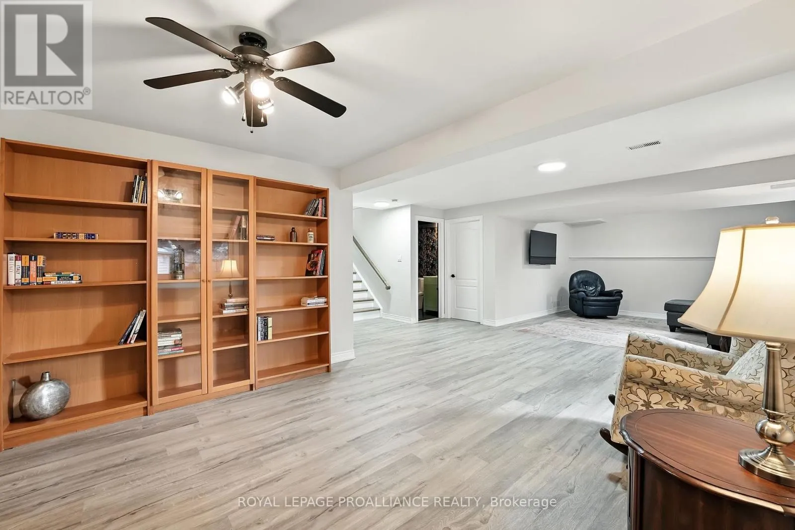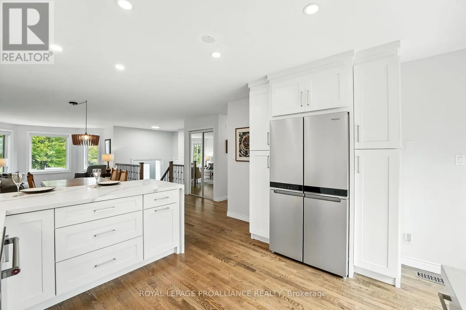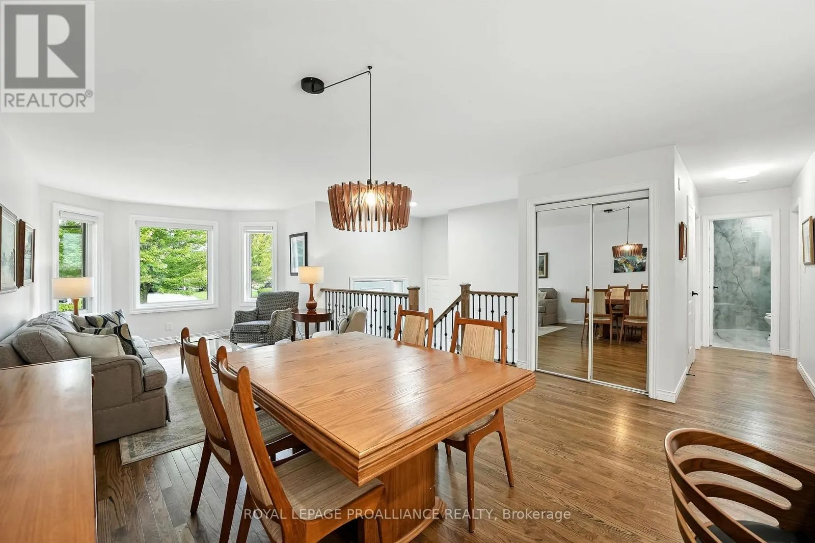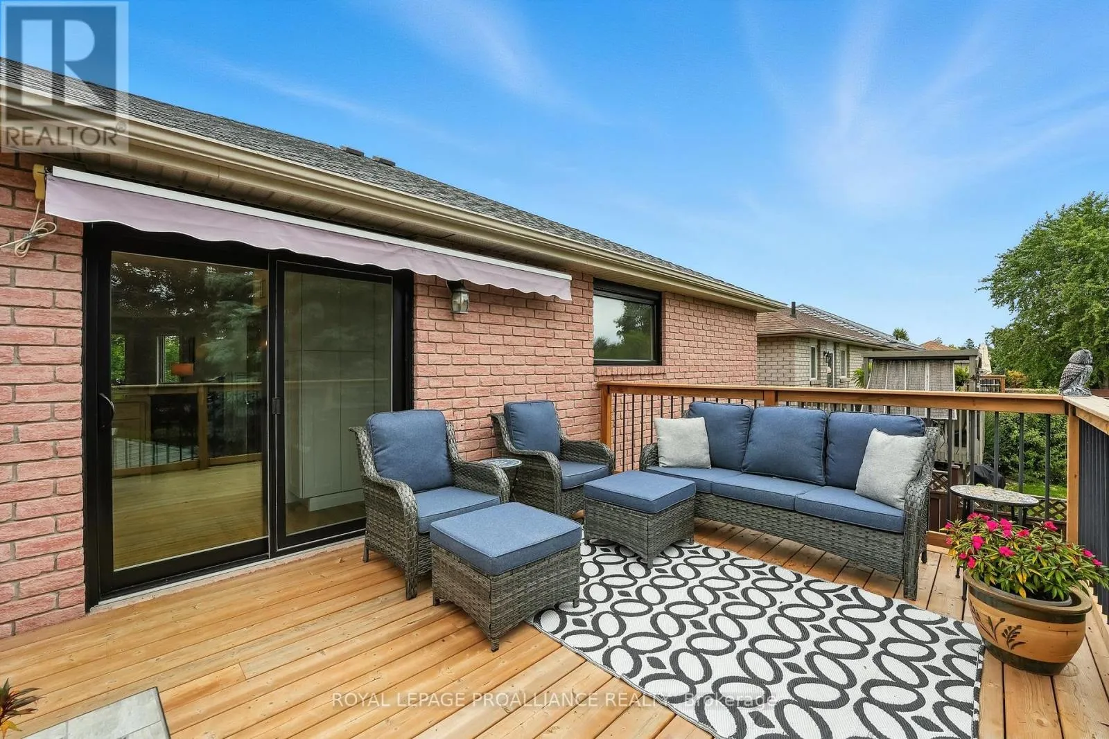 Cross Streets: Burnham and Raynor. ** Directions: Burnham exit from Highway 401south to Raynor. Designed with comfort, elegance, and functionality in mind, this property offers exceptional Designed with comfort, elegance, and functionality in mind, this property offers exceptional Home Depot, and Terry Fox School, and just minutes from downtown. Scenic walking trails, parks along the creek, and the YMCA are all within walking distance. Inside, expansive custom windows allow for plenty of natural light throughout, while elegant hardwood flooring adds warmth. The gourmet kitchen features a peninsula island and abundant cabinetry, designed for entertaining and seamlessly connected to the open-concept dining and living areas. The fully finished basement includes a natural gas fireplace and a walkout to the backyard deck. The spacious deck off the kitchen functions as an extra summer room, perfect for relaxing or entertaining. The exterior offers an attached 1 12-car garage with exterior opener, driveway parking for four vehicles, and a lovely, green backyard-ideal for enjoying the outdoors while still being minutes from town and Hwy 401. Recent upgrades make this home truly move-in ready. Highlights include a custom kitchen with quartz countertops and waterfall peninsula (2023), renovated bathrooms, refinished hardwood flooring, new stairs and railings, LVP flooring in the basement, new appliances, expanded front patio, new windows, doors, patio door, awning fabric, garage door, water softener, new decks, and a custom closet organizer in the primary suite. Additional improvements include ceramic tile at the front entrance, extra attic insulation, furnace, and central air. (id:27476)