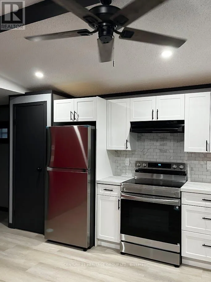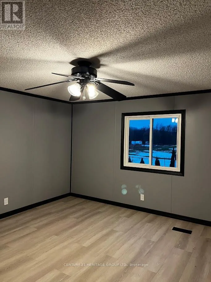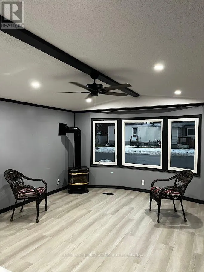 Telephone Rd/Theatre Rd Immaculate, just completely renovated all the way thru. This spacious with open concept living area and kitchen, two bedroom all season mobile home is nestled in the desirable Lougheed Park Community, offering comfort, style. Backing to open fields. Ceiling fans, pot lights thru out. Open concept kitchen with new S/S appliances, solid wood cabinets, double sink, stylish back splash and quartz countertop. Fully renovated bathroom with new jacuzzi style tub. Enjoy your coffee in the covered Porch over looking the front and backyard with ample amount of trees for privacy and oversized garden has a depth of approx 150 ft. This home is within close access to 401 for easy commute, close to hospital, downtown Coburg and its beautiful beach park. New appliances, newer roof (2022) new floors, upgraded electrical panel, new owned water heater (id:27476)