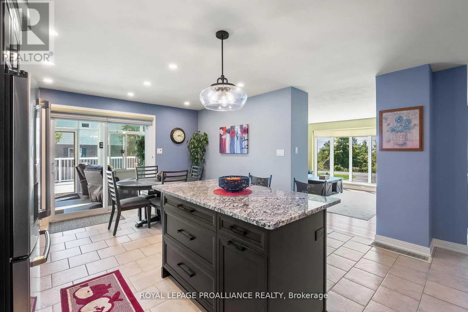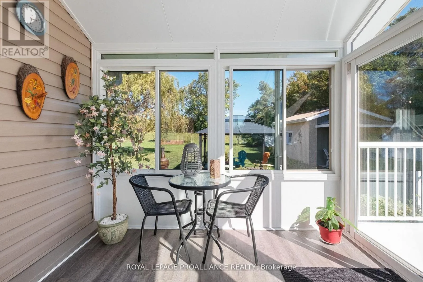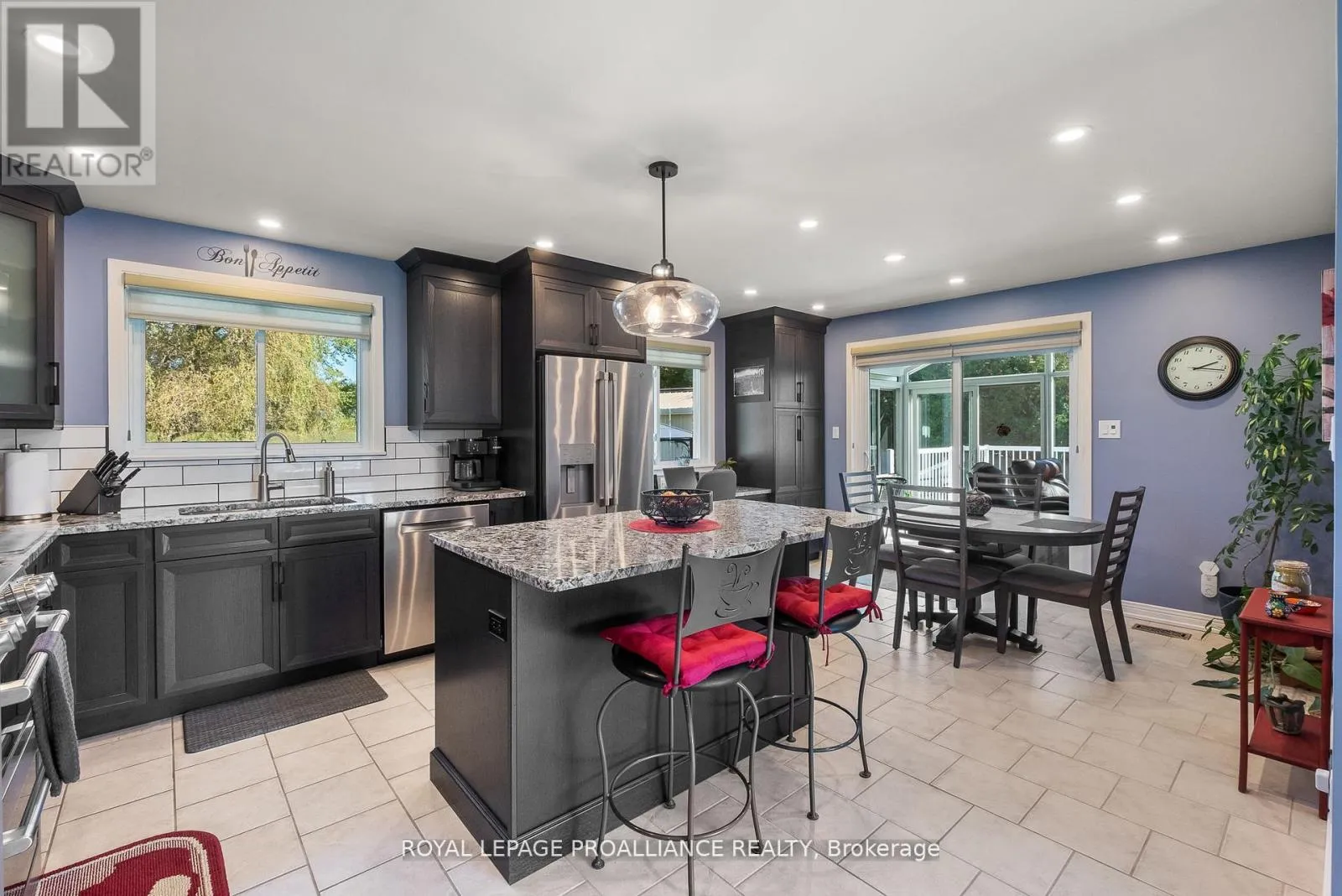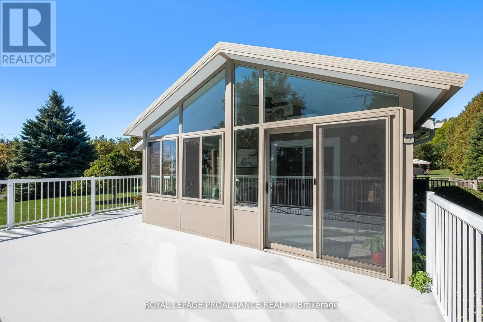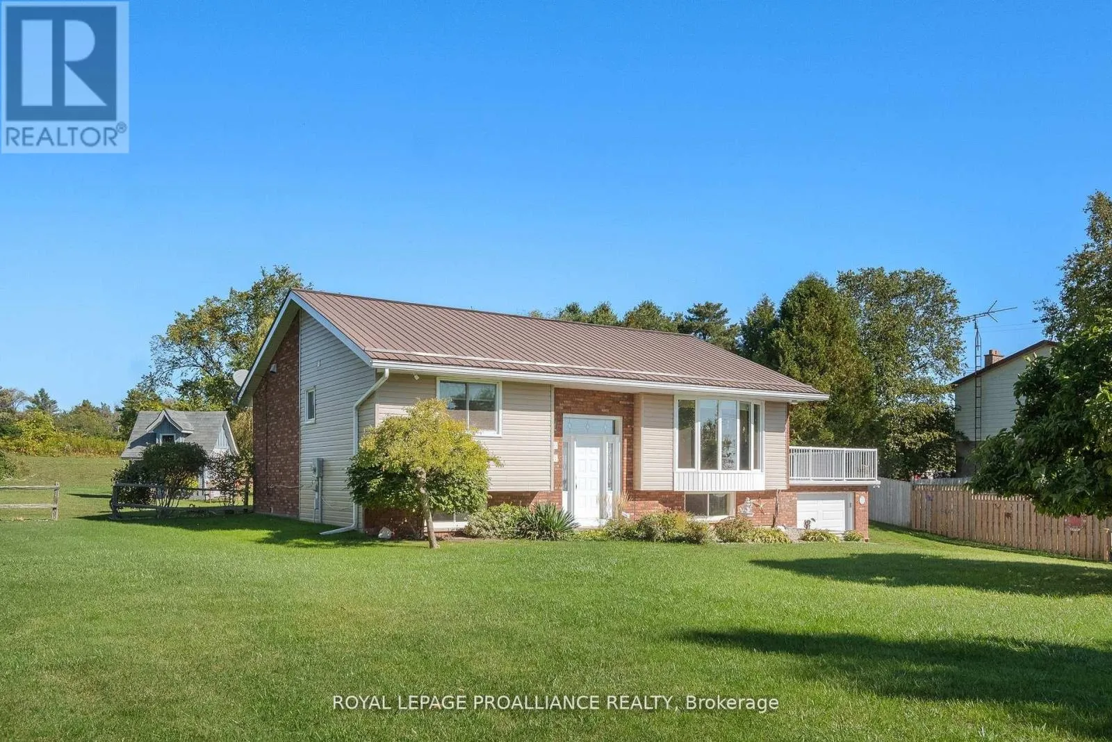 Cross Streets: Castlehill Dr & Danforth Rd. ** Directions: From 401 and Hwy 45, north on Hwy 45 (Baltimore Road), Left on Danforth Rd. Right on Castlehill Hill. Property on the right. Affordability at it's finest. Where can you find ALL utilities under $200 per month, Right here! That's heat, hydro, hot water, AC, and a maintenance free metal roof to boot! When location tops your list - this one delivers. Set on a private, beautifully landscaped lot just minutes from Cobourg's beach, marina, golf, hospital, shopping, dining, and 401 access, this meticulously maintained raised bungalow offers the perfect blend of country charm and town convenience. Step inside this bright and updated 2+1 bedroom, 2-bathroom home and be instantly impressed. The modern gourmet kitchen features granite counters, extensive custom cabinetry, and a built-in desk perfect for everyday living and entertaining. A stunning 4-season sunroom with cathedral ceiling, heat/AC, and wraparound windows opens to a unique upper deck with views of Lake Ontario ideal for morning coffee or sunset gatherings. The lower level offers a generous family room, freshly renovated 3-piece bath, bright third bedroom, and a large laundry area with direct entry to the 1.5-car garage. Enjoy quality finishes throughout, including hardwood, tile, and luxury vinyl plank flooring. Energy efficiency is top-notch with a ground-source heat pump and premium Water Furnace system offering substantial hydro savings. Outside, the charm continues with perennial gardens, fruit trees, berries, asparagus beds, and a steel gazebo (10x12) with custom rubber flooring. Three custom sheds 10x18 large shed, 8x10 blue shed 10x12 barn shed, lean-to 8 X 12 provide excellent storage. Additional upgrades include freshly paved drive, newer windows, high-end kitchen appliances (10K+), dusk-to-dawn motion lighting, and security system. Feature Sheet is available. Move-in ready and truly special this is the one you've been waiting for! (id:27476)