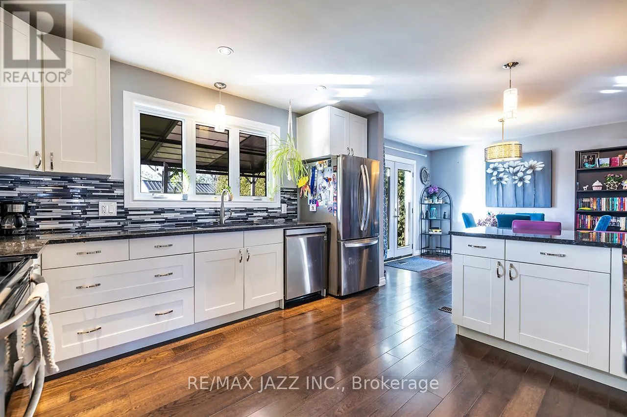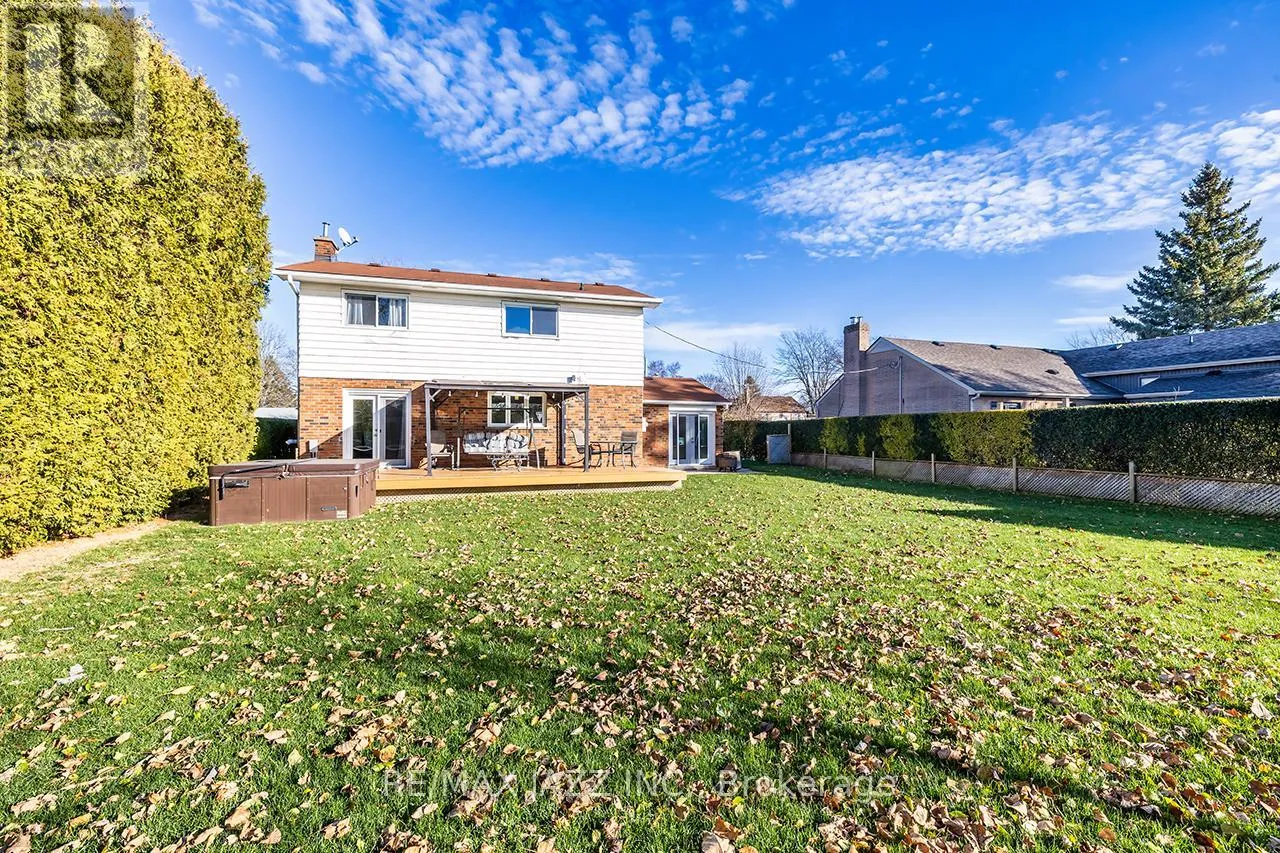 Cross Streets: Abbott/King St E. ** Directions: Exit 401 at Division St, go South, left on King, right on Abbott. Welcome to this beautifully renovated 4-bedroom, 2-bath, two-storey home, offering nearly 2,000 sq. ft. of bright, functional and above-grade living space on an impressive 66x130 lot. Nestled on a quiet, premium street just a short walk to the water, this home delivers the perfect blend of space, style, and lakeside living. The open-concept main floor is ideal for today's lifestyle, featuring a spacious living and dining area with renovated finishes, updated flooring, and large windows that fill the home with natural light. The modern kitchen offers solid countertops, ample prep space, and direct walk-out access to your backyard retreat. The garage was converted, with permits, to a HUGE family room with in-floor heating adding extra space for family, hobbies, or a massive workspace. Step outside to a truly exceptional outdoor living space-complete with a large deck, relaxing hot tub, and a charming gazebo perfect for dining, lounging, or year-round enjoyment. The deep 66x130 lot provides privacy and endless possibilities, with plenty of space for kids, pets, gardening, or even a future pool or garden suite (buyer to verify). A large storage shed adds even more convenience. Upstairs, you'll find four generous bedrooms and an updated 4-piece bathroom, giving the whole family room to grow. The partially finished basement offers additional flexibility-whether you need a rec room, home gym, playroom, or music room (as it's used now), as well as room for tones of storage. With the lake just moments away, a large backyard and a beautifully finished space - enjoy morning walks, afternoon BBQs, and evening hot tubs in a quiet, private, and premium location. This is a rare opportunity to secure a renovated family home in one of the area's most desirable pockets. Don't miss it. (id:27476)