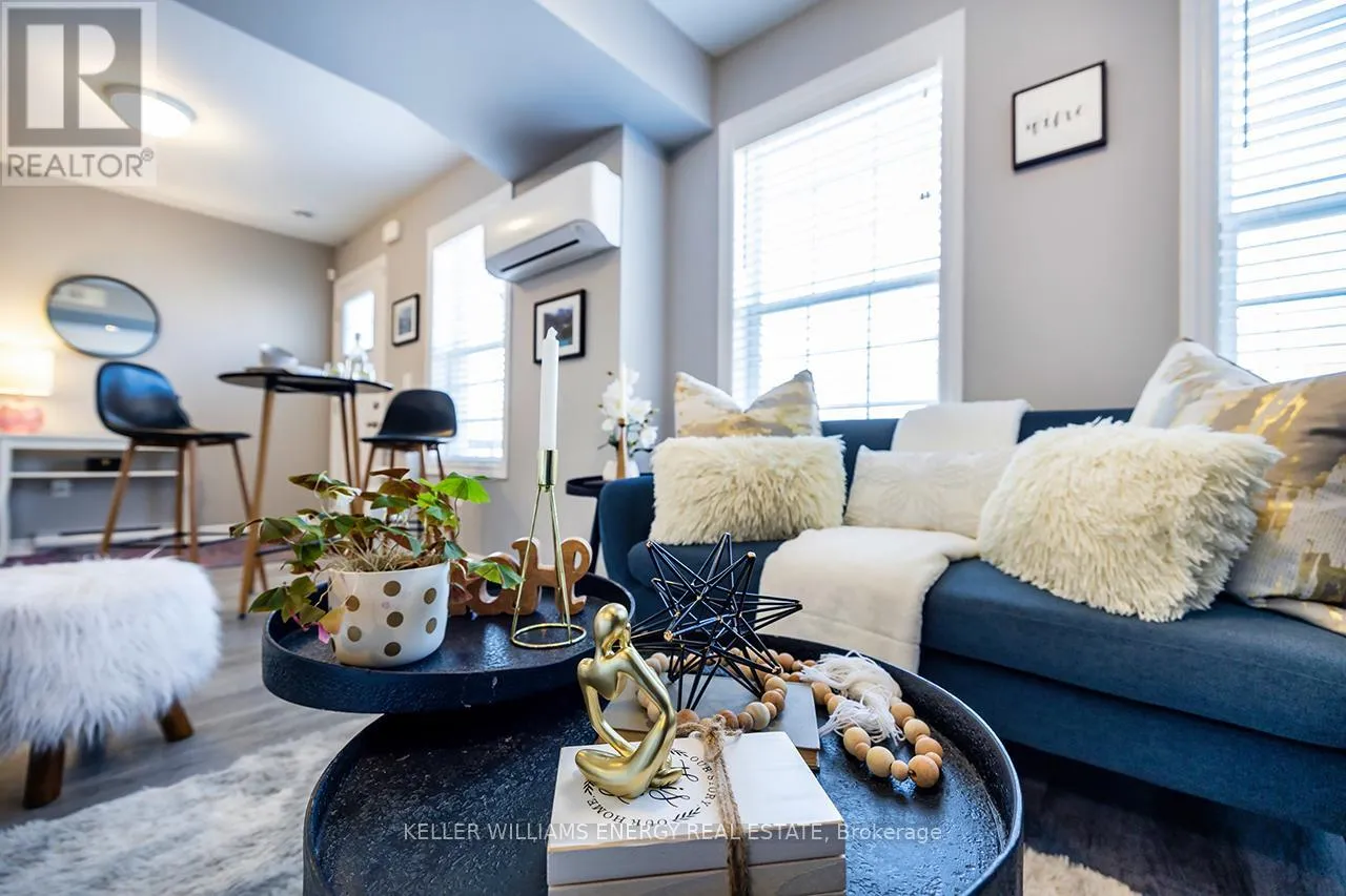 Cross Streets: Brook Rd. N/Stirling Way. ** Directions: Brock Rd N/Stirling Way. Step into this stunning two-story condo townhome in the highly sought-after South-East Village community of Cobourg, perfectly designed for modern living and low-maintenance comfort. The main floor offers an open-concept living and dining area flooded with natural light, creating a welcoming space for entertaining guests or enjoying quiet evenings at home. The contemporary kitchen is a chef's dream, featuring sleek quartz countertops, a breakfast bar, stainless steel appliances, and smart pot drawers for organized storage, making meal prep both efficient and stylish. Luxury vinyl plank flooring throughout the main level adds sophistication and durability, while large windows frame views of the surrounding neighbourhood. Upstairs, you'll find two generously sized bedrooms, a bright three-piece bathroom, and convenient in-unit laundry, combining functionality and comfort for everyday living. The home includes a designated parking space and easy access to public transit, ensuring that your daily commute is effortless. Beyond the home, enjoy the vibrant lifestyle of Cobourg's South-East Village. You're just minutes from downtown, top-rated dining, shopping, entertainment, parks, and a quick two-minute drive to the Waterfront-perfect for weekend strolls, morning jogs, or evening sunsets. The community offers a family-friendly, connected lifestyle with everything you need close to home. Ideal for first-time buyers, downsizers, or anyone seeking a modern, move-in-ready home, this condo townhome perfectly combines style, convenience, and comfort. Don't miss the opportunity to call this beautifully maintained property your new home in Cobourg, where bright, modern living meets a welcoming community (id:27476)