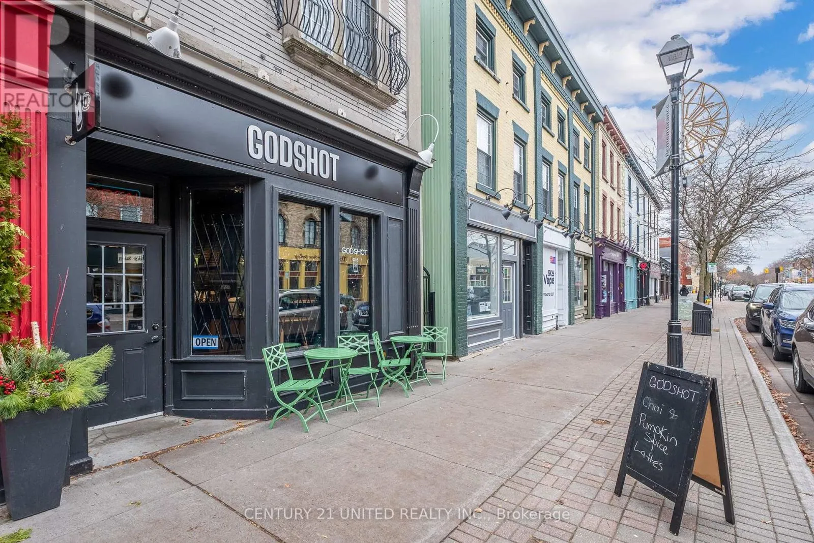 Cross Streets: Third St And King St W. ** Directions: 401 to Division St Exit South to King St W West to Property. State-of-the-art commercial condo. Fully renovated with premium design, transferable licensing, & outstanding flexibility, making it ideal for investors or owner-operators alike. A Rare Value! Exceptional opportunity to own a turnkey restaurant, cafe, or bar in the heart of a vibrant, high-traffic downtown tourist district 100 km from Toronto. Professionally rebuilt 2 years new, the space was fully renovated & showcases high-grade fixtures finishes throughout, wrapped in a sleek, modern, minimalist aesthetic designed for both efficiency & visual impact. Formerly operating as a successful espresso, wine, craft beer, martini bar, the unit attracted a loyal clientele. LCBO licensed for 30 seats (transferable), an elegant long bar with granite steel countertops, a book-matched marble backsplash with stacked handmade wall tile, durable 24" x 24" terrazzo-style porcelain flooring. Additional features include steel shelving, large display windows with security gates, washrooms, a generous prep storage room, basement storage (wet-wrapped & dry), rear access beyond 2 washrooms, a small outdoor cafe table area. Ideally positioned steps from the marina, yacht club, lake, beach, park & adjacent to cultural landmarks such as Victoria Hall & the Art Gallery, Concert Hall, live Music venues. Surrounding streets are lined with boutiques, professional offices, banks, entertainment, dining, ensuring consistent year-round foot traffic. Purchase as a pure investment with a tenant ready to lease, or buy & owner operate your own concept immediately. Select equipment, including a Bosco espresso machine & professional barista setup negotiated separately. With ample street & nearby lot parking, proximity to the VIA Rail station, and easy access via the 401/407 corridor, this location is perfectly positioned to benefit from continued growth & tourism momentum. A rare, high-quality commercial condo in a premier downtown location-ideal for investors, restaurateurs, or lifestyle entrepreneurs (id:27476)