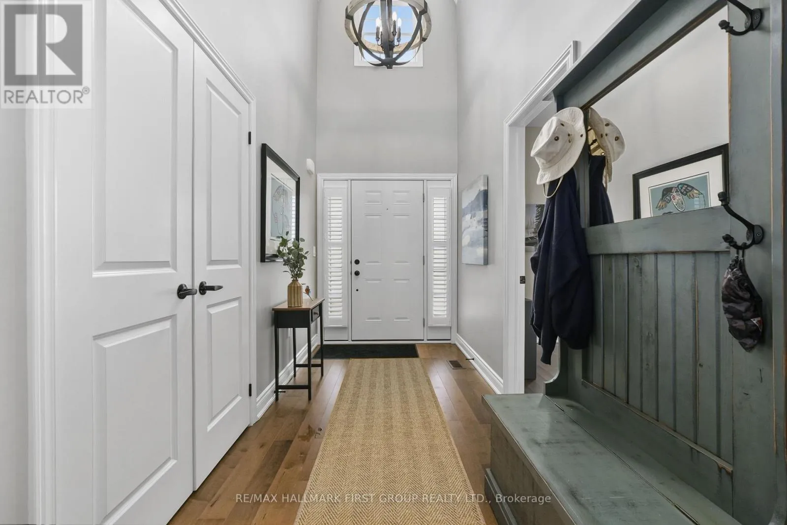 Cross Streets: Samuel Angrove Ave & Charles Wilson Pkwy. ** Directions: Heading East on CR2, Right onto New Amherst Blvd, Left onto Charles Wilson Pkwy, Right onto Samuel Angrove Ave. Set in the sought-after New Amherst community of Cobourg, this low-maintenance home offers standout curb appeal thanks to its distinctive architectural style and the rear-located driveway and attached double garage. Relax on the front porch that extends the entire width of the house and take in beautiful sunset views at the end of the day. A bright, open front entrance provides ample storage and flows seamlessly into the open-concept principal living space. The living room features a tray ceiling, California shutters, and a cozy gas fireplace with a stone tile surround. The kitchen is both stylish and functional, complete with stainless steel appliances, generous counter and cupboard space, an offset subway tile backsplash, and an island with storage and breakfast bar accented by pendant lighting. Adjacent is the well-appointed dining area with a cathedral ceiling and a walkout to the back deck, perfect for extending your living and entertaining space. The main level includes a spacious primary suite with a tray ceiling detail, a walk-in closet, and an ensuite bathroom with a glass shower enclosure. An additional bedroom, full guest bathroom, and a versatile den ideal for a home office or guest room complete this level. The lower level offers a recreation room, office, ample storage and excellent potential to create additional living space. Outside, enjoy an expansive private deck with built-in seating and plenty of room for lounging or alfresco dining. A low-maintenance backyard completes this impressive offering in a highly desirable neighbourhood. Just moments from Northumberland Hills Hospital, Cobourg Beach, and direct access to the 401. (id:27476)