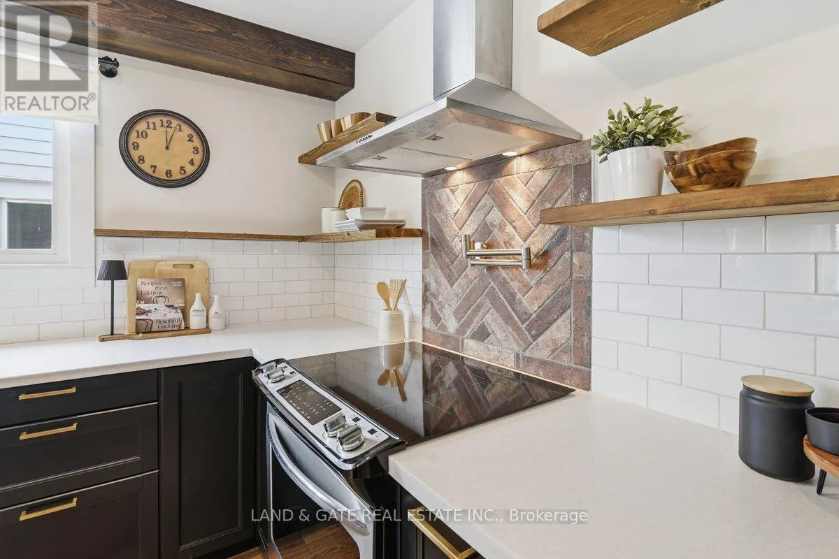 Pebble Beach Drive & Ravensdale Rd. Welcome to 14 Ravensdale Road, a truly unique home in the highly sought-after Pebble Beach Estates community in Cobourg - just moments from Lake Ontario with exclusive private beach access for residents.Set on a mature 60 x 125 ft lot, this thoughtfully updated 3-bedroom, 3-bathroom two-storey blends modern farmhouse character with everyday functionality. The remodeled main floor features a custom kitchen with butcher block island, farmhouse sink, stainless steel appliances, and subway tile backsplash. Board and batten detailing, pot lights throughout, and carefully curated finishes add warmth and personality throughout the home.The main living space walks out to a three-season sunroom with patio doors on three sides, creating the perfect spot to relax while overlooking the backyard. Step outside to enjoy the newly built deck (2025) and included hot tub (2024).Upstairs, the primary bedroom retreat features wood beams, custom wall detailing, a large walk-in closet, and a spacious five-piece ensuite. Two additional bedrooms provide flexible space for family, guests, or a home office.The fully fenced backyard includes mature trees and a custom-built outbuilding with water service, ideal for a studio, hobby space, or future workspace.Additional updates include roof shingles (2023), air conditioner (2024), rebuilt deck (2025), and a water-powered backup sump system for added peace of mind. The partially finished basement offers additional space with future potential.Located on a quiet, low-traffic street just one block from the lake, this home offers a rare combination of character, lifestyle, and location.A rare opportunity to enjoy private beach living in Pebble Beach Estates - schedule your showing and experience this home in person. Square footage as per MPAC report. Room measurements as per photographer. (id:27476)