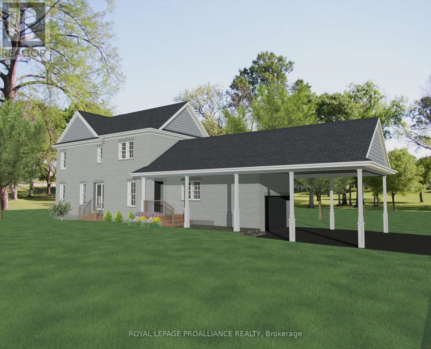 Cross Streets: Wilkins Gate. ** Directions: W on Cty Rd 2, S on Wilkins Gate to lot 11. Introducing the Greystone Estate, a new model by New Amherst Homes. This all-brick home offers 1,876 sq ft of thoughtfully designed living space with 3 bedrooms across two floors, including a main floor principal suite that appeals to a wide range of lifestyles. A double car carport with covered walkway provides convenient access to the side entrance. Located in the highly desirable New Amherst Village, this community is designed for connection and well-being, where quiet streets, front porch living, and shared green spaces encourage neighbours to gather and enjoy the outdoors. Blending small-town charm with modern convenience, New Amherst is a thoughtfully planned mixed-use community that complements Cobourg's historic character. At its centre, the iconic Clock Tower and main street boulevard bring together homes and local businesses in classic architectural style. Parks, a community garden, and everyday amenities are all within walking distance, creating a neighbourhood designed to enhance both lifestyle and landscape. **Incredible value is found in the premium features that are standard in all New Amherst homes: Quartz counters in kitchen and all bathrooms, luxury vinyl plank flooring throughout, Benjamin Moore paint, custom colour exterior windows, high-efficiency gas furnace, central air conditioning, Moen Align faucets, smooth 9' ceilings on the main-floor, 8' ceilings on 2nd floor and in the basement, 200amp panel, a fully sodded property & asphalt driveway** Note: Photos are artist's renderings - 2026 closing date determined according to timing of firm deal. (id:27476)