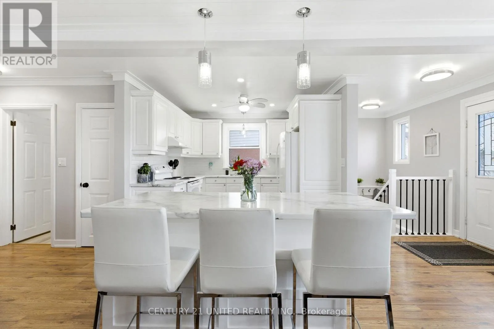 Cross Streets: Burnham St & Shirley St. ** Directions: 401 to Burnham St/County Rd 18/Northumberland Exit. Turn right onto Burnham St/County Rd 18/Northumberland County Rd 18. Continue onto William St/County Rd 2 E. Turn right onto Heath St. Continue onto Burnham St.Turn right onto Shirley St. Beautifully renovated Contemporary Move-In Ready Brick Bungalow in Cobourg's Desirable West End. Fresh modern Decor, thoughtful updates, and the perfect blend of comfort and convenience. Ideal for buyers seeking an alternative to condo living-complete with private outdoor space for entertaining & relaxing, or suitable as a starter home for professionals or those seeking to start a family. Lots of room for outdoor enjoyment, fenced yard for children or pets to run around in the backyard. Fully Finished both levels. MN FL Primary BR. Features 2+1BRs & 2 Baths. A bright and airy home, extensively updated over the past few years, including Lux Vinyl Lam new flooring, a redesigned open-concept floor plan, a modern kitchen with island, renovated baths & laundry room, fresh interior & exterior finishes. The main level offers you an inviting, light-filled living space, while the fully renovated lower level offers exceptional versatility with an oversized family/TV room, a 3rd BR or office/den, a second 3-pce Bath & Bright & Cheery Laundry Rm, plus a useful shoe closet & a separate utility/storage area. The Main Floor steps out to a private, south-facing backyard designed for entertaining, featuring a spacious new deck (hot tub negotiable), new fencing, and a 10' x 12' shed. Located in Cobourg's sought-after west end, this home is just minutes from schools, parks, shopping, the hospital & convenient 401/407 access for commuters. Enjoy a stroll via the west lakefront boardwalk to the beach, marina, or Downtown & a vibrant tourist district. A beautifully updated home offering modern living in a great location. Start your next chapter in west end Cobourg! Additional highlights include: 200-amp copper wiring. Copper & PEX plumbing. Walk-in LL Shoe closet. New interior railings and front porch with updated railingsNew decks & fencing & 10 x 12 Shed. Ample side-by-side driveway parking with space to add a carport or garage. (id:27476)