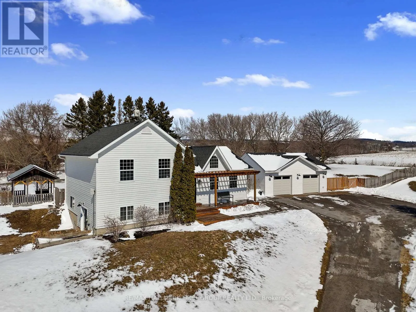 Cross Streets: CR2 & Pentecostal Rd. ** Directions: CR2 heading East, property on Left after Pentecostal Rd. Perched atop a scenic hill just outside Cobourg, this family home captures breathtaking panoramic views of the rolling hills of Northumberland County and Lake Ontario. Set close to town, with the added privacy of out-of-town living, this home offers the perfect balance of convenience and peaceful country living. Overflowing with curb appeal, the property makes a striking first impression. A spacious front deck with a charming wooded pergola offers an incredible vantage point for taking in the sweeping views. Inside, bright natural light fills every room, enhancing the open-concept layout with soaring ceilings and a sun-soaked atmosphere, highlighted by a dramatic second-storey window. The well-appointed living and dining areas feature a carpet-free layout, ideal for both everyday living and entertaining. The kitchen stands out as a true centrepiece, spacious and thoughtfully designed with a large island offering prep space and storage, contemporary pendant lighting, matching appliances, ample counter and cabinet space, and a convenient built-in desk area. Just off the kitchen, a versatile mudroom or office includes walkouts to the backyard. Upstairs, three well-appointed bedrooms are complemented by a full bathroom with a double vanity and an offset subway-tile wall detail. The lower levels provide exceptional additional living space, including a bright and spacious family room with walkout, play nook, and office or games area. A further level offers a generous bedroom, full bathroom, media room, and laundry. Outdoors, the sprawling, tree-lined property is designed for enjoyment, featuring a large deck with both open and covered areas, a fire pit, and ample green space, all perfectly positioned to take in the stunning surroundings. A double-car garage, built in 2020, adds modern convenience and functionality. Easy access to amenities along Highway 2 completes this exceptional offering - privacy, space, and incredible views, all just minutes from town. (id:27476)