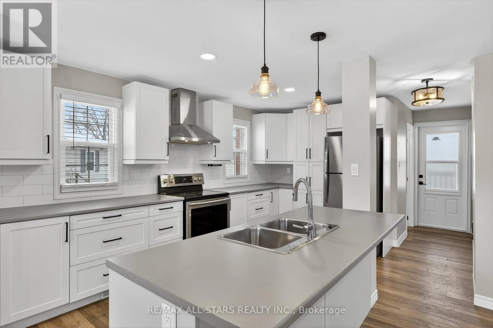 Harden And Sinclair Extensively renovated in 2020, this beautifully updated home offers comfortable living with thoughtful finishes throughout. The main floor is designed for both everyday living and entertaining, featuring a welcoming living room, formal dining area, and a custom kitchen complete with island. The second level offers two spacious bedrooms with ample closet space and a convenient powder room. The finished lower level provides additional living space, including a third bedroom, full bathroom, and a cozy family room-perfect for guests or family gatherings. Step outside to enjoy the fully fenced backyard featuring a large deck ideal for entertaining family and friends. The property also includes a detached garage with a workshop area at the back, perfect for hobbyists, storage, or additional workspace. Major updates completed during the 2020 renovation include the metal roof and an updated heating system, offering peace of mind for years to come. With three bedrooms and three bathrooms, this well-maintained home is truly move-in ready and ideal for modern family living. (id:27476)