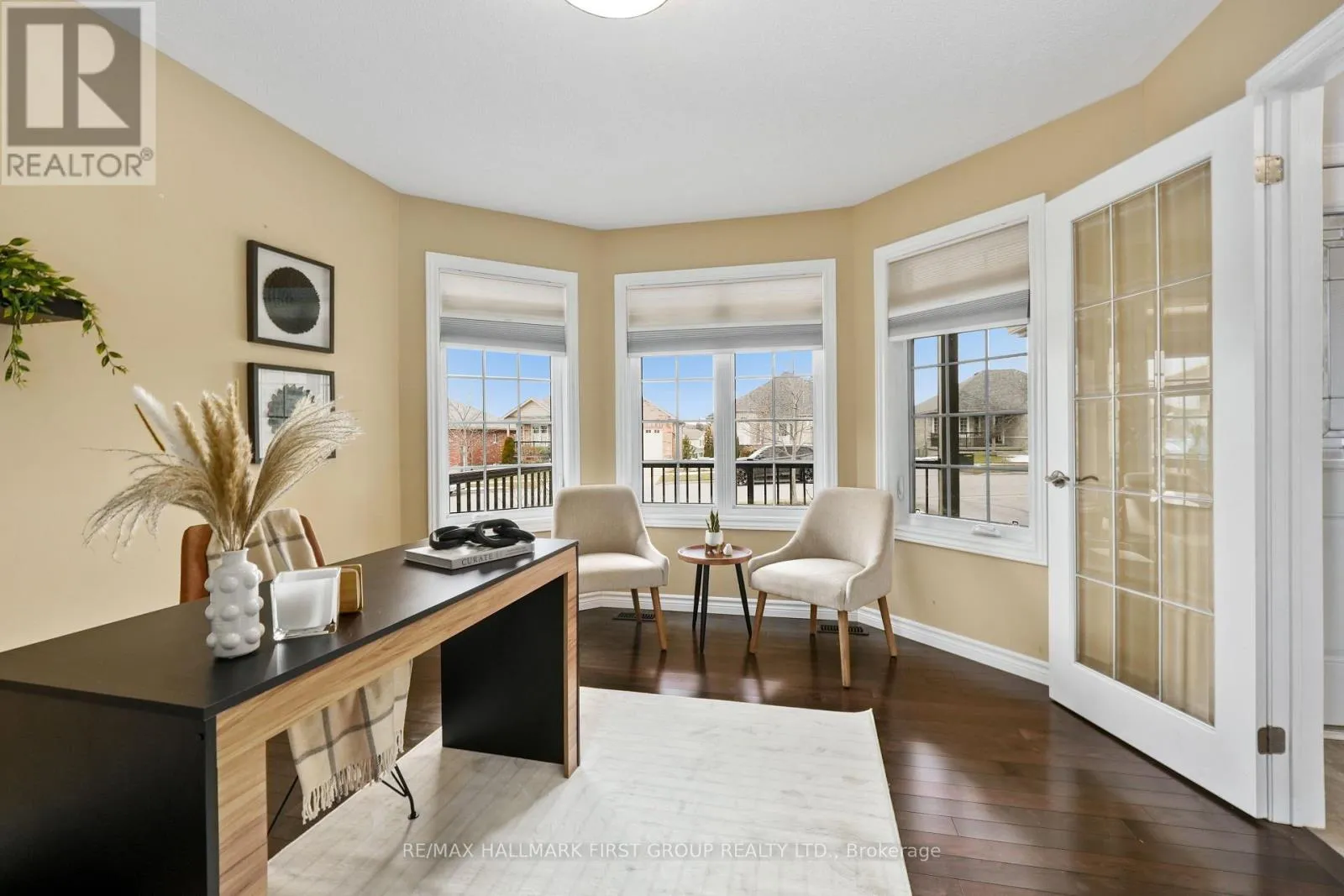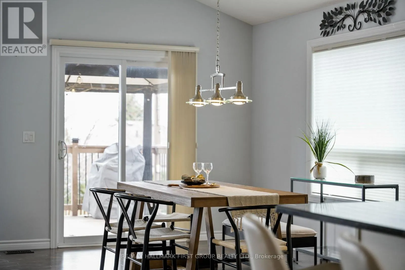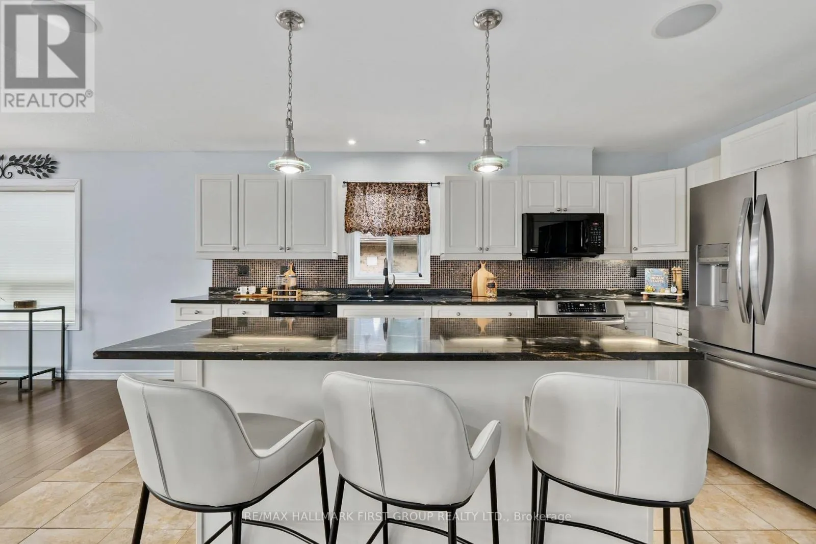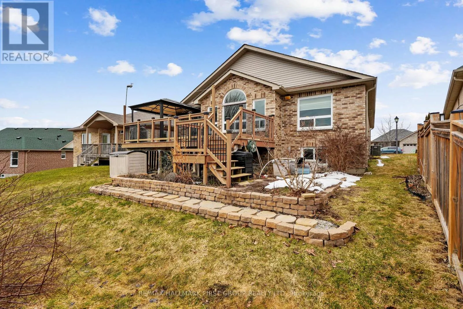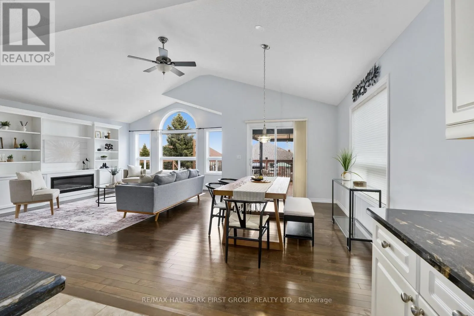 Cross Streets: Ashland Dr & Parkview Hills Dr. ** Directions: Exit 401 South onto Division St, Left onto Densmore Rd, Right onto Parkview Hills Dr, Left onto Ashland Dr. Located in the sought-after Parkview Hills community in Cobourg, just steps to St. Mary's Catholic Secondary School and nearby amenities, this family-friendly bungalow offers convenient main-level living with the added benefit of a fully finished lower level. A spacious covered front porch leads into a welcoming foyer with ample storage for the whole family. At the front of the home, an office with glass French doors is filled with natural light, perfect for working from home. The open-concept principal living space is highlighted by a cathedral ceiling with a bright, airy feel. The living room features a wall of windows, built-in shelving, and an electric fireplace, seamlessly connecting to the dining area with modern lighting and a walkout to the back deck, ideal for extending your living space and entertaining. The kitchen is both stylish and functional, offering sleek countertops, a double undermount sink, tile backsplash, stainless steel appliances, and a large island with pendant lighting. Ample cabinetry and prep space make it perfect for everyday living. The main floor primary suite features a large window, walk-in closet, and a private ensuite with a glass shower enclosure and separate tub. Completing the level is a second bedroom, bathroom, and convenient main floor laundry. The finished lower level provides a spacious rec room with a gas fireplace, two additional well-appointed bedrooms, and a full bathroom, perfect for guests or growing families. Outside, enjoy a generous deck, mature gardens, green space, and the added benefit of solar panels on the roof. Ideally located close to amenities with easy access to Highway 401, this home offers comfort, space, and convenience in a desirable neighbourhood. (id:27476)