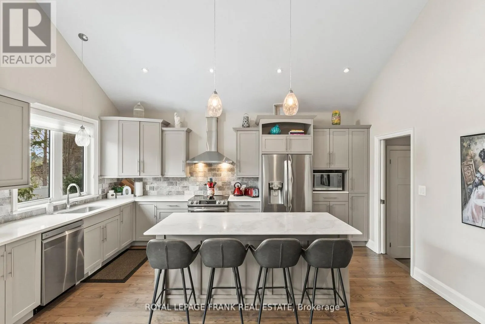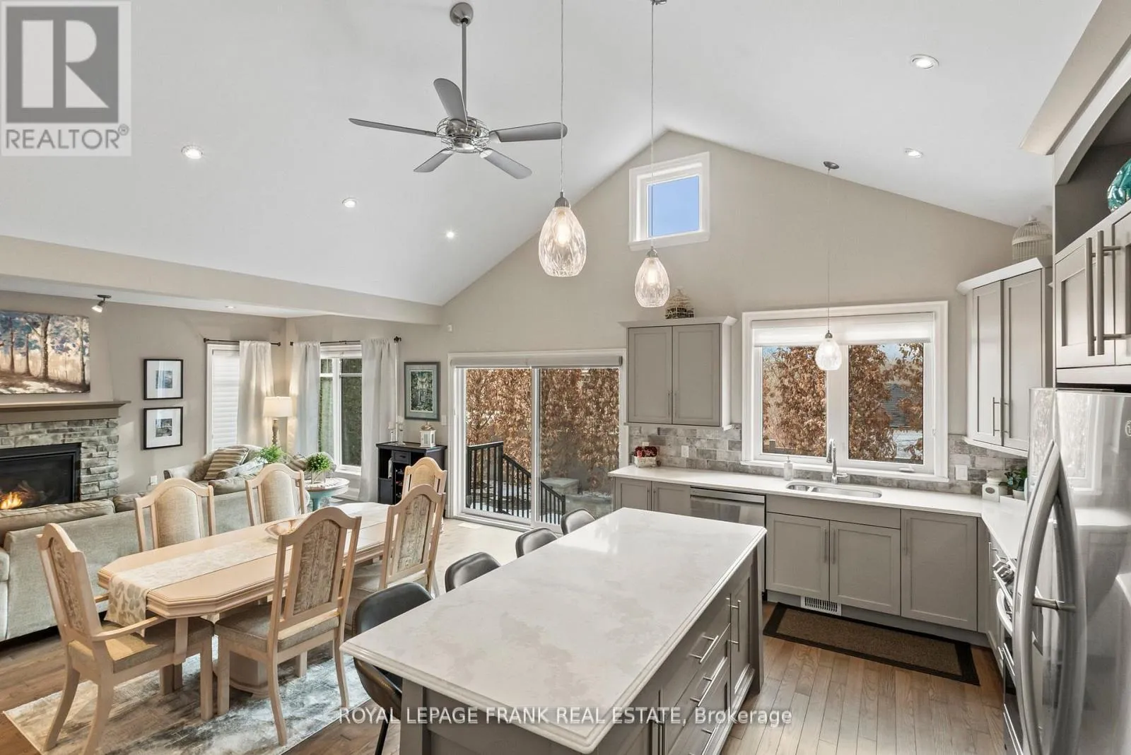 Cross Streets: Burnham/Carlisle. ** Directions: William Street south of Elgin to Heath. Turn right and again turn right onto Burnham St. Shows Like a Model Home! Inspired Custom Bungalow - Perfect for Families & Multigenerational Living! This beautifully designed bungalow is a true showpiece-crafted with the finest materials and showcasing exceptional pride of ownership throughout. From the moment you enter, you'll be captivated by the bright, open-concept layout and meticulous attention to detail. The designer kitchen featuring soaring cathedral ceilings, quartz countertops, a generous center island and tons of storage, offers a seamless flow into a spacious family-sized dining area-ideal for both intimate dinners and lively gatherings. The stunning great room offers rich hardwood floors and a cultured stone gas fireplace, creating an elegant yet inviting space to relax and entertain. Step through impressive 8-foot custom doors to your own private backyard oasis. The primary suite is a luxurious retreat, complete with a large walk-in closet and spa-like 5-piece ensuite bath. The professionally finished lower level continues to impress with maintenance-free vinyl plank flooring, large above-grade windows that fill the space with natural light. This level includes 2 additional bedrooms, a massive games room with fireplace, a cozy recreation area, and a beautifully customized 3-piece bath-offering versatile living options for family, guests, or extended stays. Outside, over $100,000 has been invested in exquisite custom stonework and professional landscaping. Stone driveway, walkways, patios, and wrought iron fencing delivers exceptional curb appeal and a backyard designed for both tranquility and entertaining. A rare opportunity to own a home that truly shows to perfection-modern elegance, thoughtful design, and unmatched craftsmanship all in one stunning package. (id:27476)