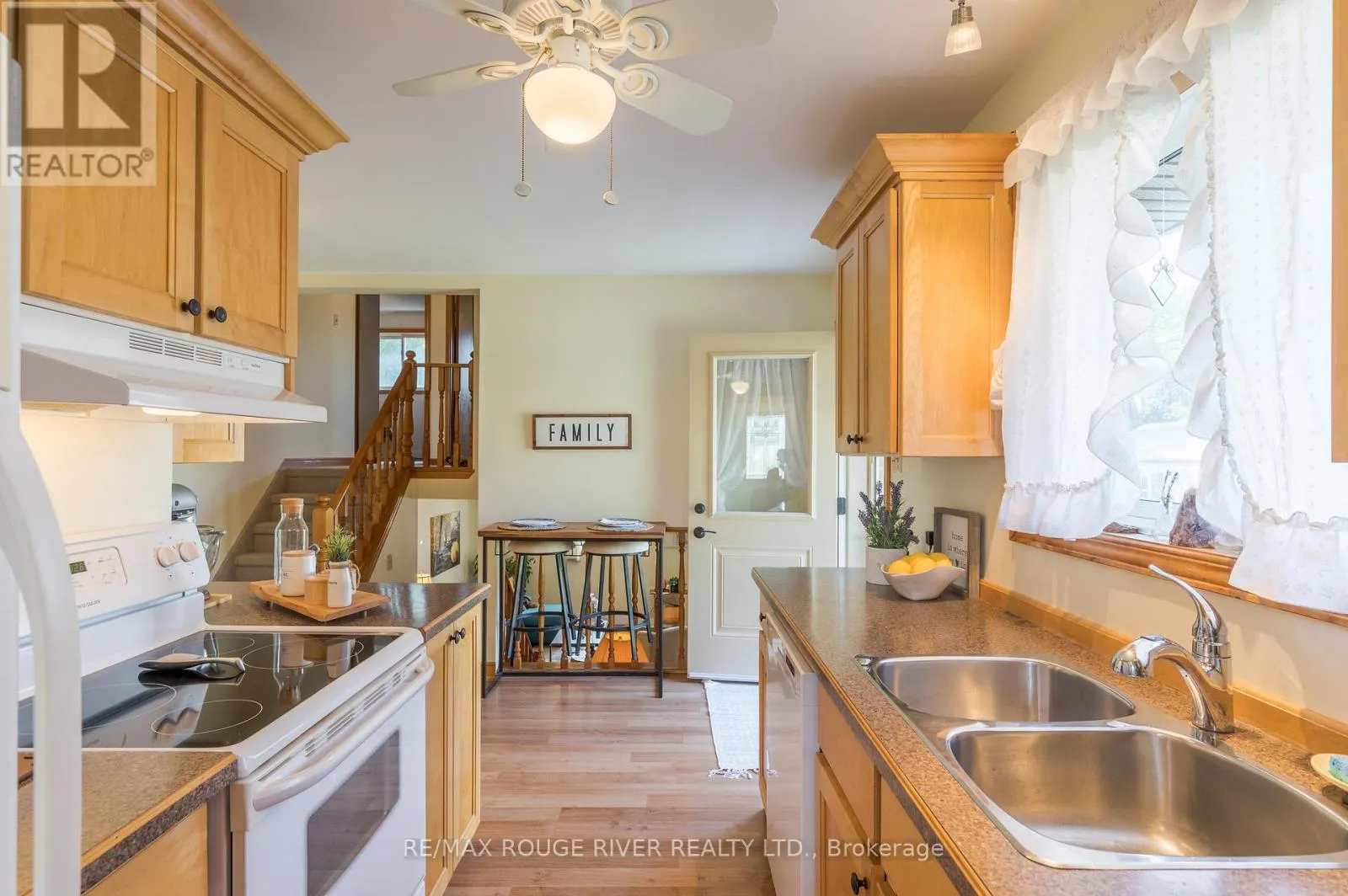 Cross Streets: Westwood Cres & Carlisle. ** Directions: Carlisle to Westwood Cres. Situated in the sought-after west end of Cobourg, this residence offers easy access to Westwood Park, Cobourg's heritage harbour, marina, beach, and downtown shopping and dining attractions.This private backsplit home comprises 4 bedrooms and 2 baths. The main floor showcases a bright, open kitchen with a separate entrance, along with a spacious dining and lounge area. Descending from the kitchen to the lower level, you'll discover a large living room bathed in natural light and featuring a master ensuite. The upper level houses 3 additional bedrooms and a 4-piece bath. The basement is equipped with a sizable rec room/office, a storage room, and a laundry area. Outdoors, you'll find an inviting space with a side entrance off the kitchen, a large patio, and a fenced backyard adorned with beautiful gardens, apple, and pear trees, perfect for entertaining. The property is impeccably maintained, featuring a new roof, updated fascia, eaves, soffit, and modern siding. Don't miss the opportunity to own this remarkable property. Whether you're a current resident or new to Northumberland County, it promises an exceptional lifestyle, with its breathtaking rolling hills, lake access, and scenic forested trails perfect for hiking, ATV riding, snowmobiling, and cross-country skiing. All within an hour's drive from Toronto. (id:27476)