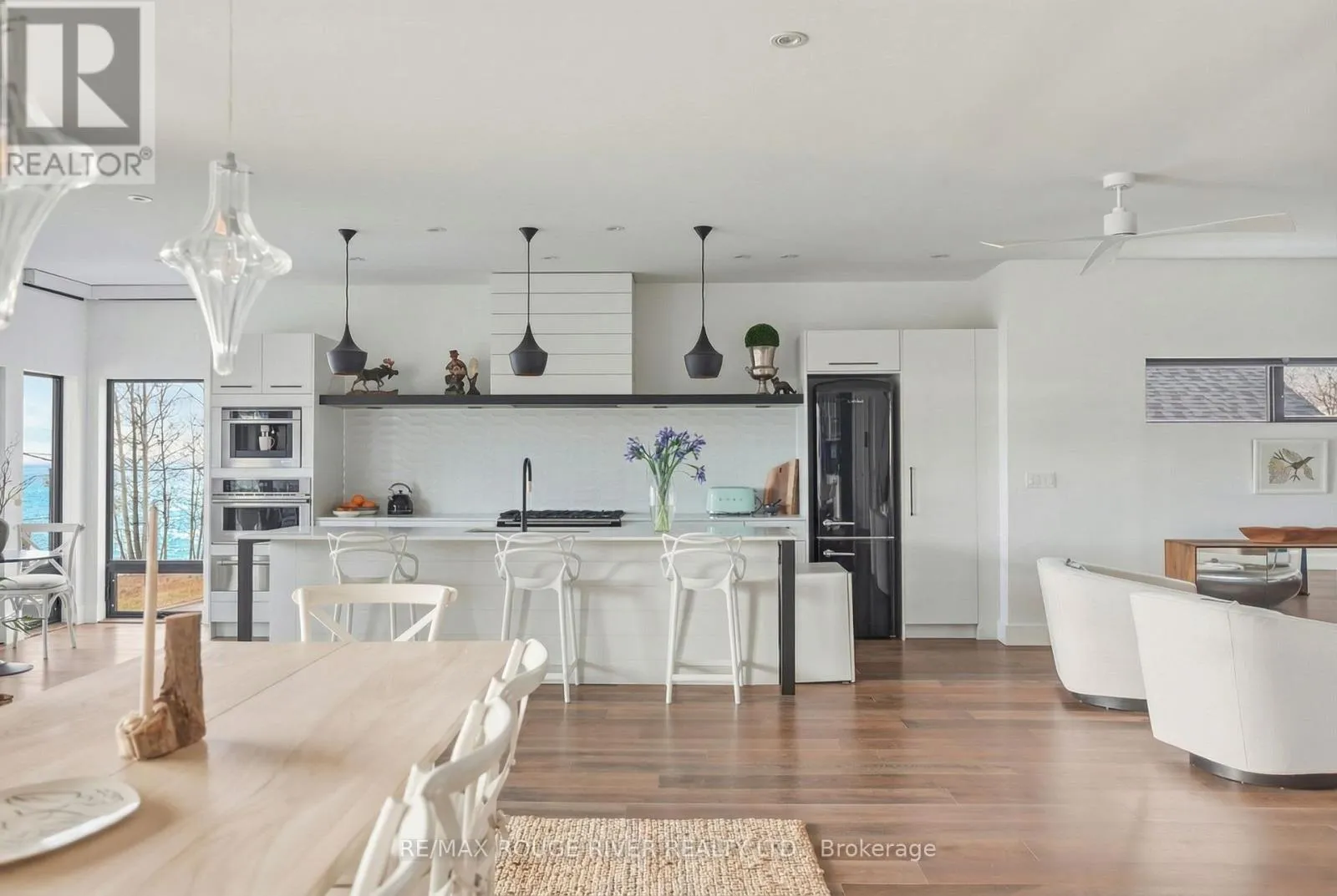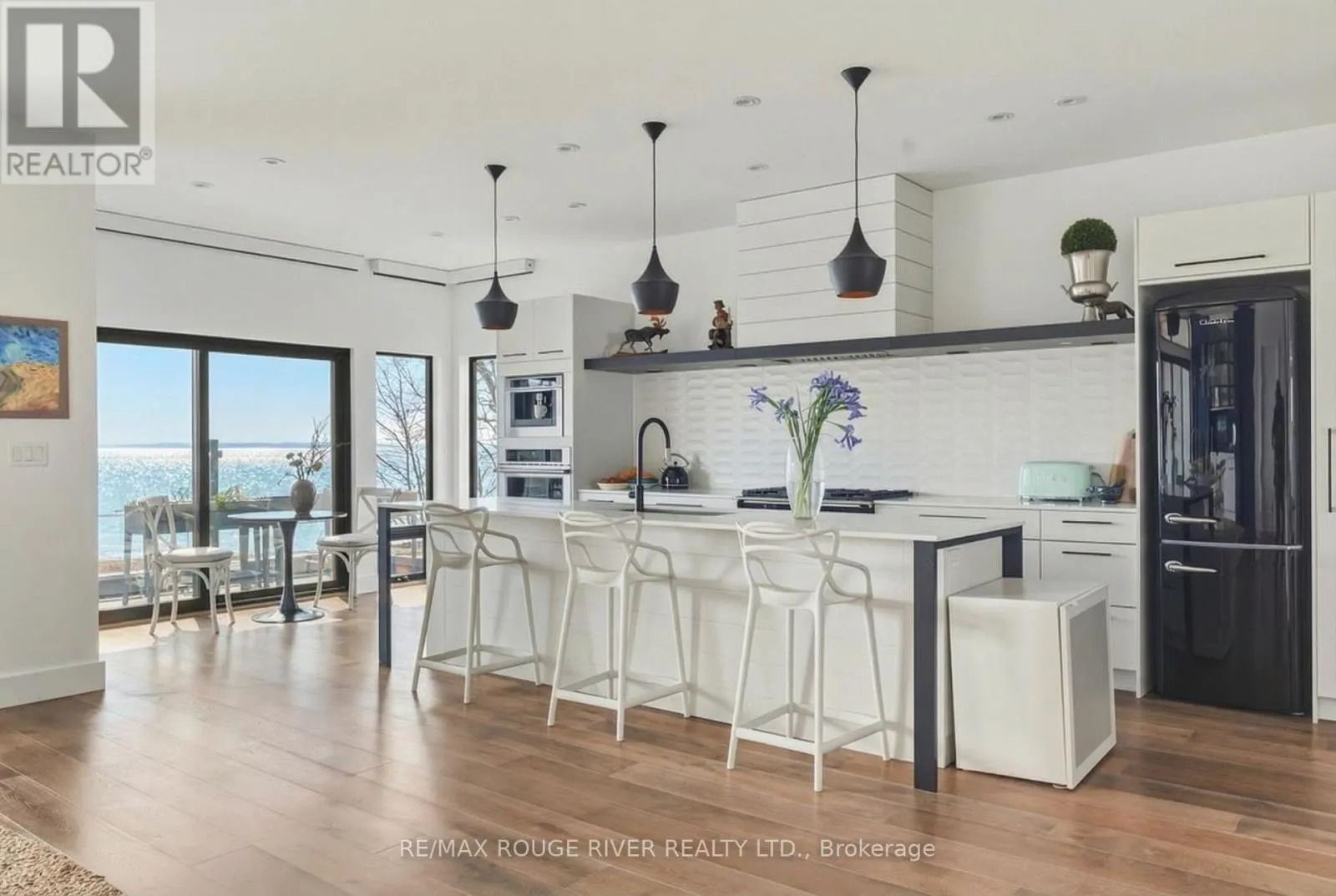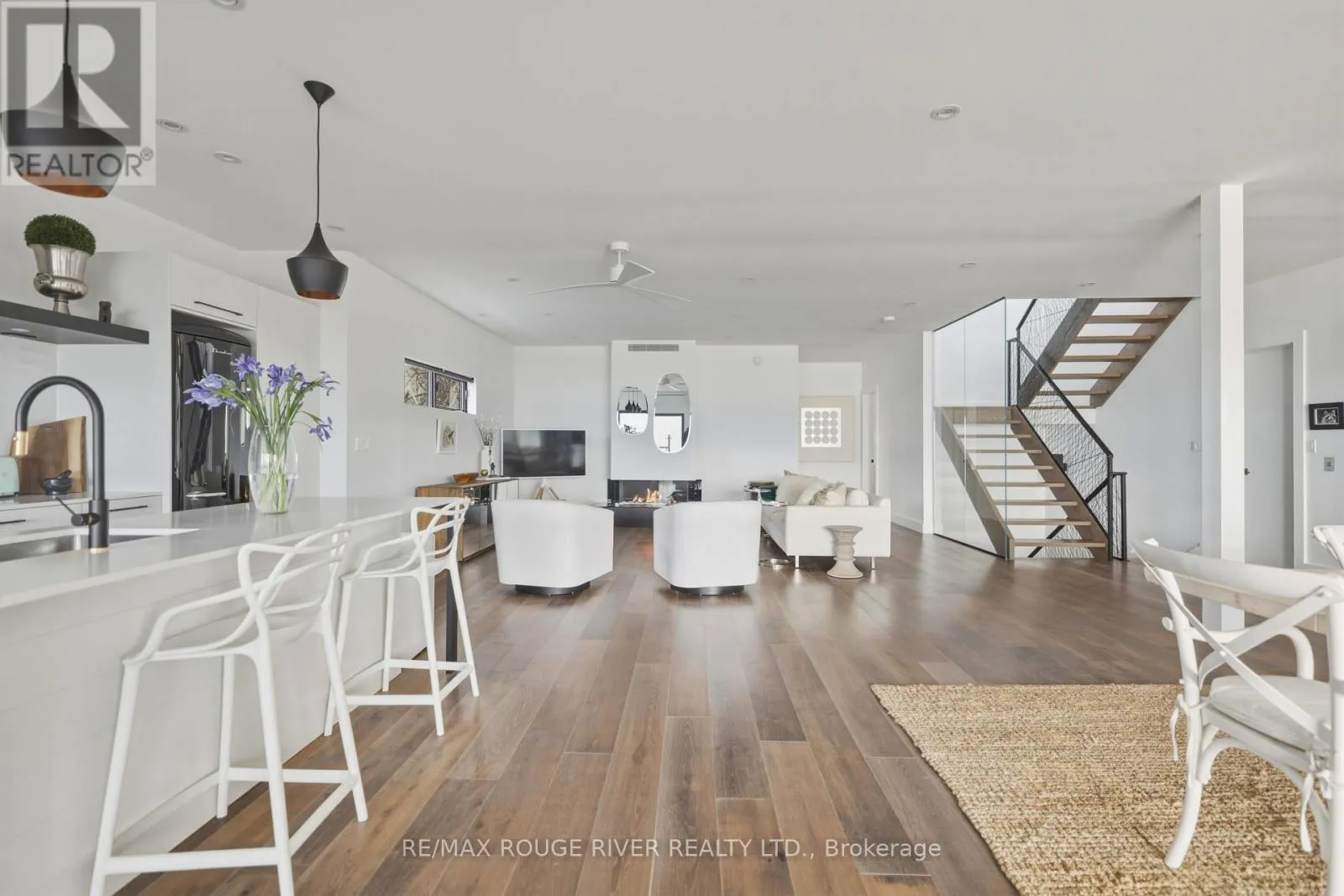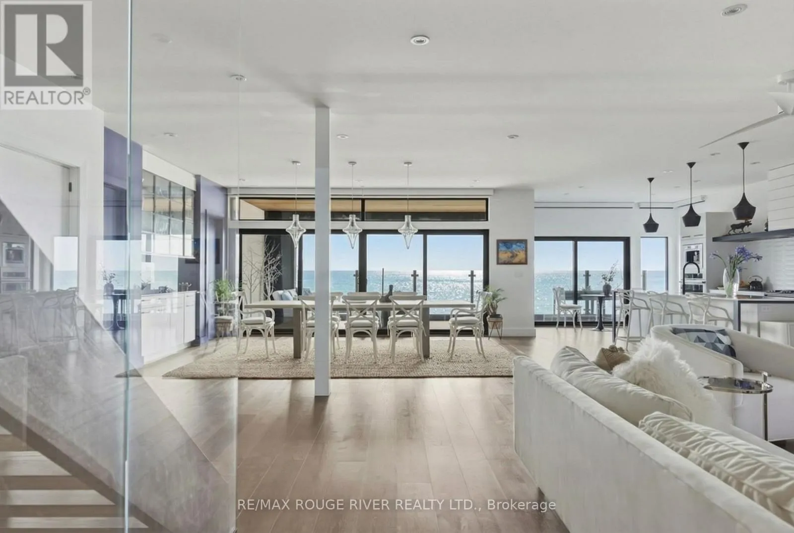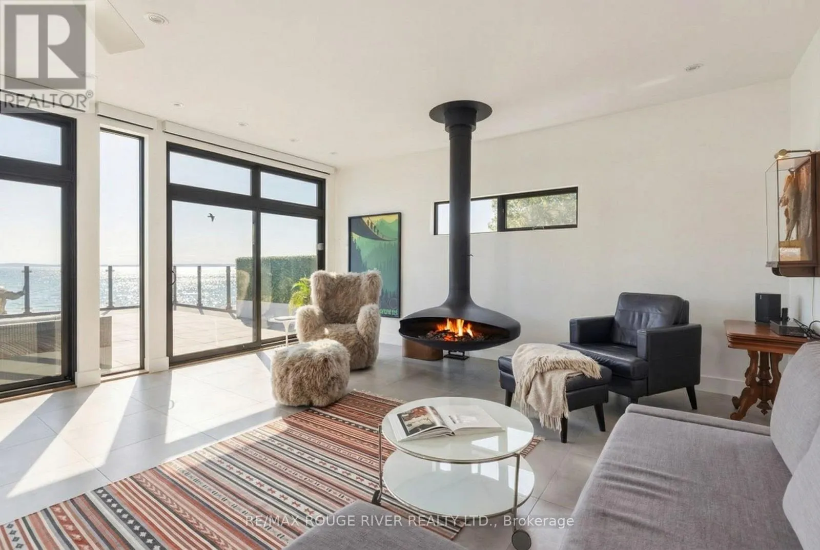 Cross Streets: Monk St & Stuart St. ** Directions: SEE MAP. With uninterrupted turquoise views of Lake Ontario, this exceptional residence is set within one of Cobourg's most coveted waterfront enclaves. Inside, quality, scale, and versatility are evident throughout, executed by a renowned Toronto design-build firm.The self-contained main floor features a 2-bedroom, 2-bathroom suite with a private entrance, modern kitchen, statement fireplace, formal dining area & front patio - ideal for multigenerational living or rental income. The lower level extends the home's flexibility, offering a bright, well-designed space with kitchen, high ceilings, & large window wells allowing for abundant natural light. Perfect for guests, hobbies, or even more additional income potential. The attached garage & multiple walkouts to the outdoors & private backyard, a personal retreat, professionally landscaped with hardscaping, lush greenery, lighting, a hot tub & gazebo. The lift is panelled and services all four levels. Upstairs, the second and third floors are dedicated to capturing breathtaking south-facing lake views. The open-concept living & dining areas flow onto multiple terraces, while the chef's kitchen showcases bespoke finishes, premium cabinetry, & high-end appliances. Two bedrooms, each with their own ensuite, along with a stylish family room, complete this level.The third floor offers a stunning blend of relaxation and entertainment space. A lounge with a wood burning, Scandinavian-inspired suspended fireplace opens to an expansive rooftop patio with panoramic water views. The primary suite is a luxurious retreat featuring a freestanding tub, double vanity, and glass shower, along with a sauna, and wet bar for your ultimate comfort. Located in the charming and increasingly popular town of Cobourg- known for its proximity to the city, heritage downtown, and vibrant dining and shopping, this home represents a rare opportunity to own a truly remarkable waterfront estate that blends timeless craftsmanship with modern living. (id:27476)
