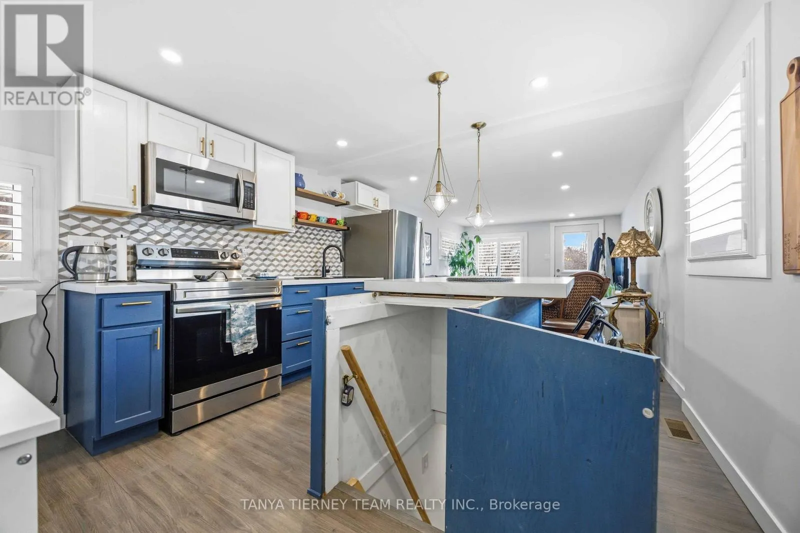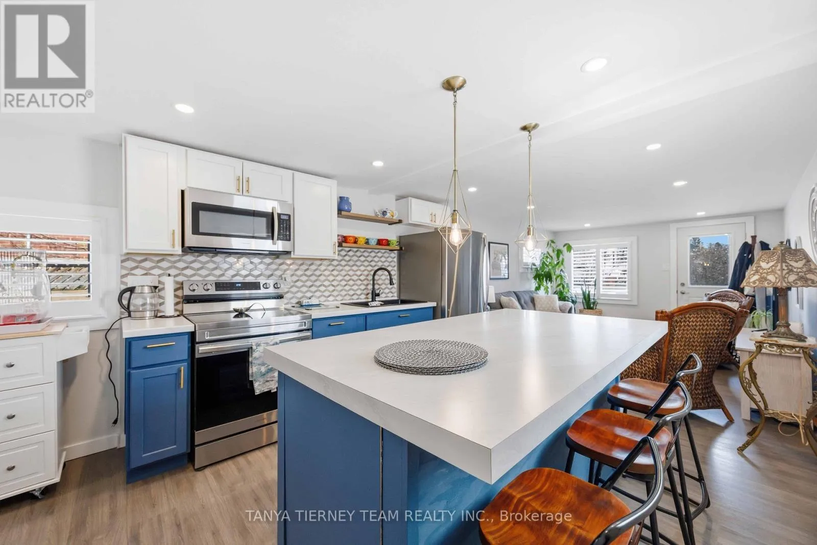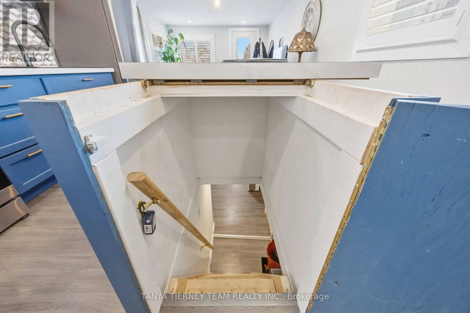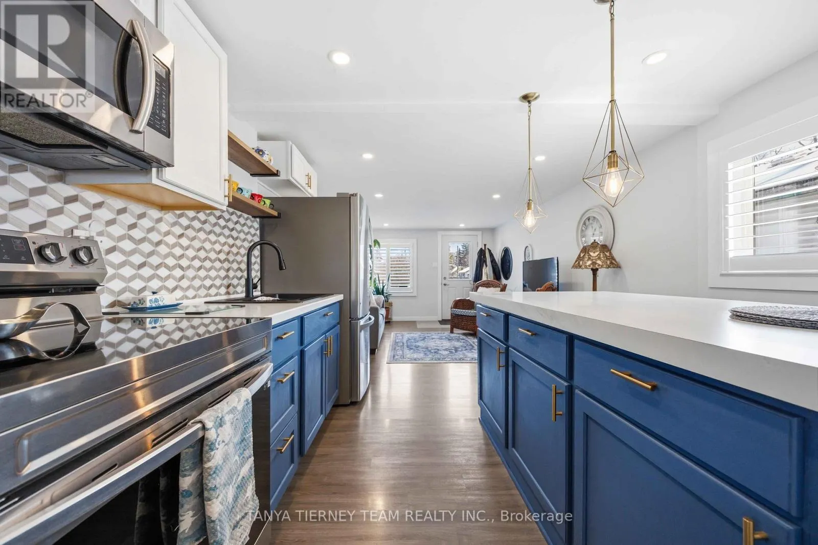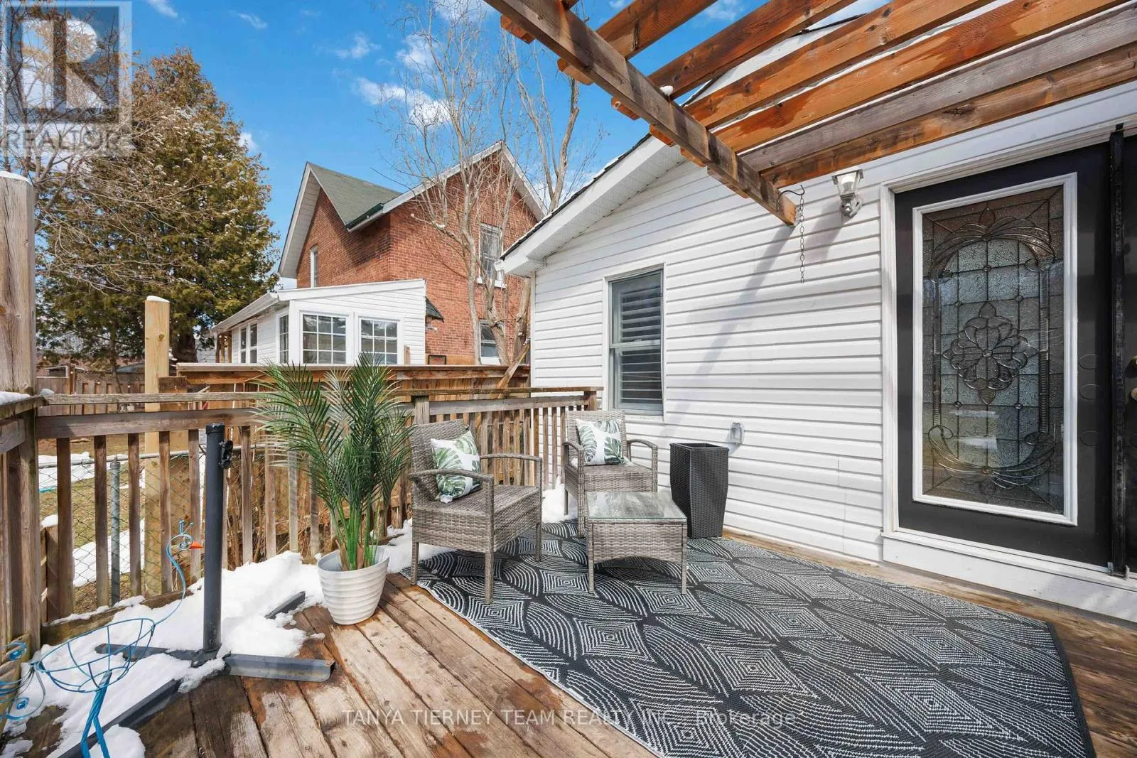 Cross Streets: University / Ontario St. ** Directions: William to University and North on Ontario. Cute and cozy bungalow situated on a oversized deep lot, perfect for first time buyers or those looking to downsize, to the picture perfect community of Cobourg. Close to the vibrant downtown with ample shops and dining options, and just minutes to amazing Cobourg beach! Inside you'll find a recently renovated home, with many updates. Featuring a stunning open concept living area, with bright pot lights, updated flooring and california shutters throughout (2022). The gourmet eat in kitchen boasts newer counters, modern stainless appliances with new stove (2024), ceramic backsplash and beautiful cabinetry with accent hardware throughout. Don't miss the secret staircase with hidden access under the large centre island and leading to additional living space below, perfect for a rec room, kids play zone, hobby room or man cave! The thoughtful layout continues with a lovely 3 piece bath and laundry combo (washer/dryer 2025) with barrier free shower and two well appointed bedrooms, including a walkout to the large deck and deep yard with newer garden shed (2023). Additional updates include the furnace in '21, central air '22, owned HWT '21, front deck '25, sump pump '24 and freshly painted throughout in '25. (id:27476)