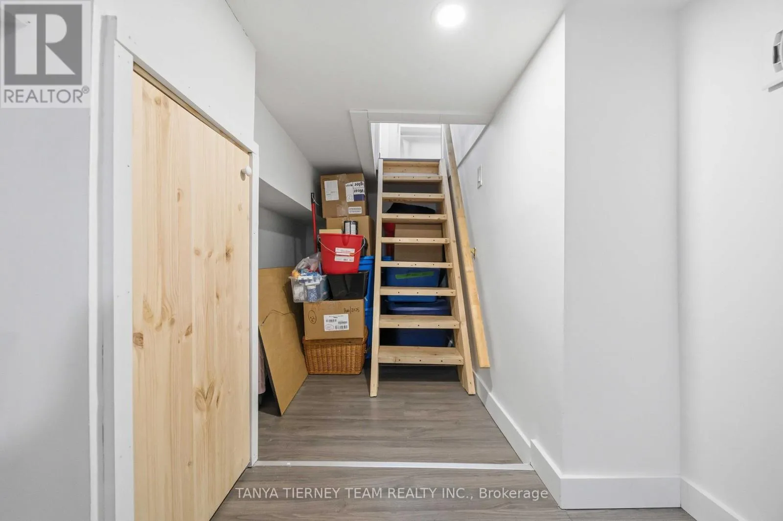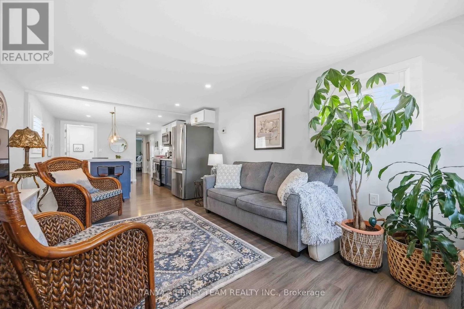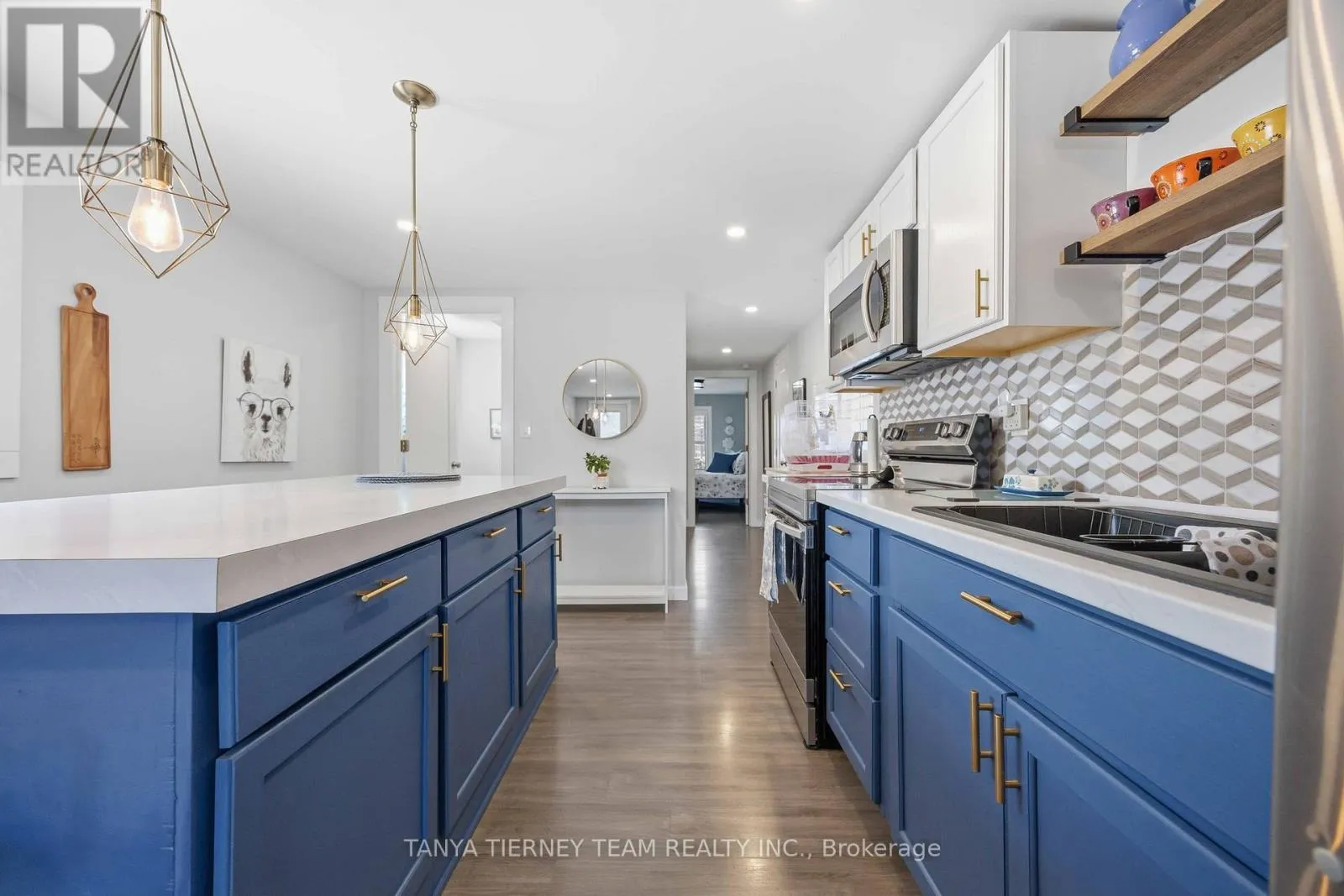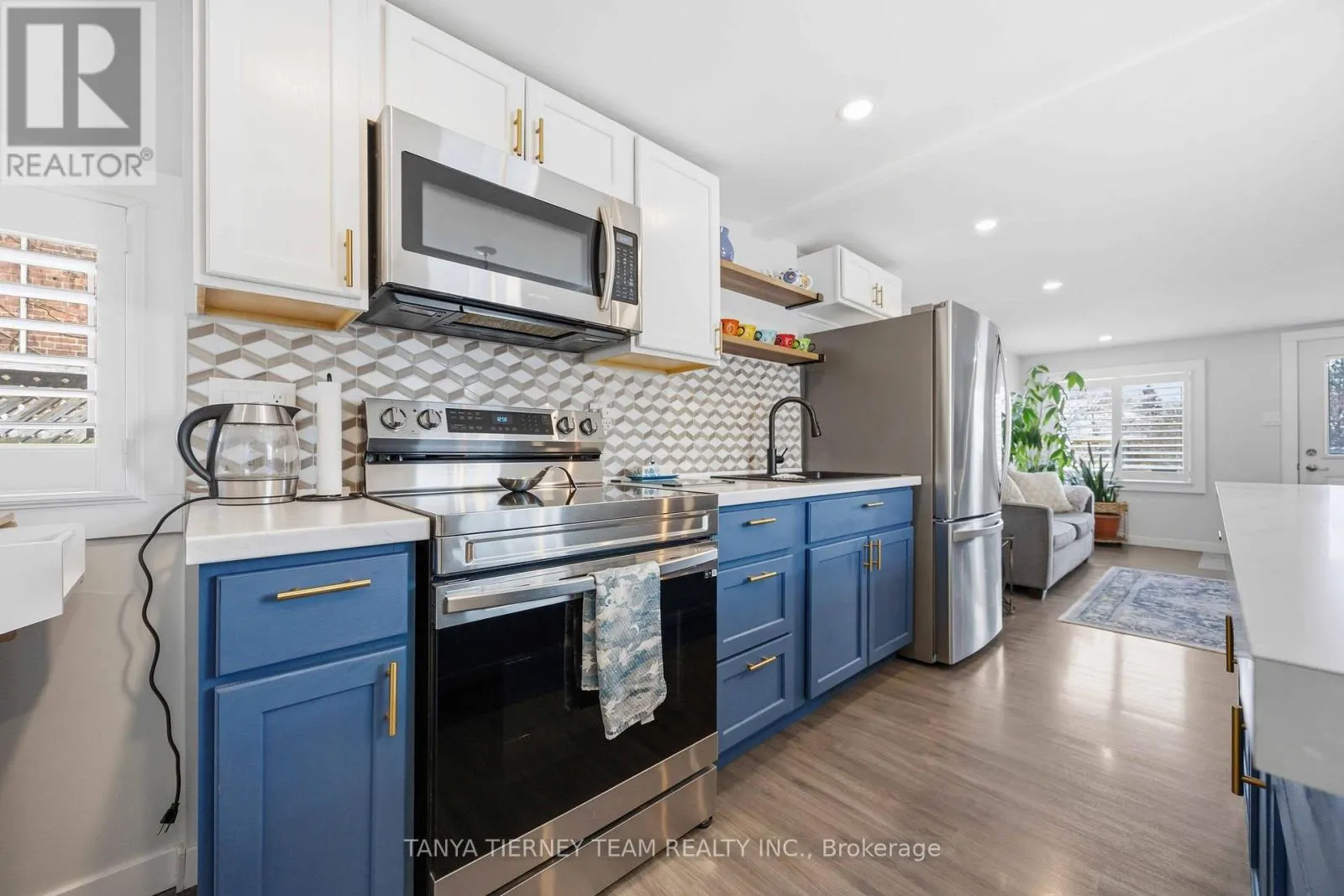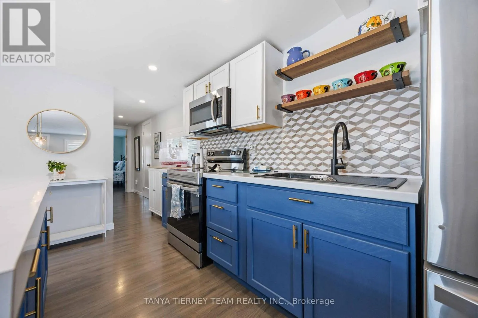 Cross Streets: University / Ontario St. ** Directions: William to University and North on Ontario. Cute and cozy bungalow situated on a oversized deep lot, perfect for first time buyers or those looking to downsize, to the picture perfect community of Cobourg. Close to the vibrant downtown with ample shops and dining options, and just minutes to amazing Cobourg beach! Inside you'll find a recently renovated home, with many updates. Featuring a stunning open concept living area, with bright pot lights, updated flooring and california shutters throughout (2022). The gourmet eat in kitchen boasts newer counters, modern stainless appliances with new stove (2024), ceramic backsplash and beautiful cabinetry with accent hardware throughout. Don't miss the secret staircase with hidden access under the large centre island and leading to additional living space below, perfect for a rec room, kids play zone, hobby room or man cave! The thoughtful layout continues with a lovely 3 piece bath and laundry combo (washer/dryer 2025) with barrier free shower and two well appointed bedrooms, including a walkout to the large deck and deep yard with newer garden shed (2023). Additional updates include the furnace in '21, central air '22, owned HWT '21, front deck '25, sump pump '24 and freshly painted throughout in '25. (id:27476)