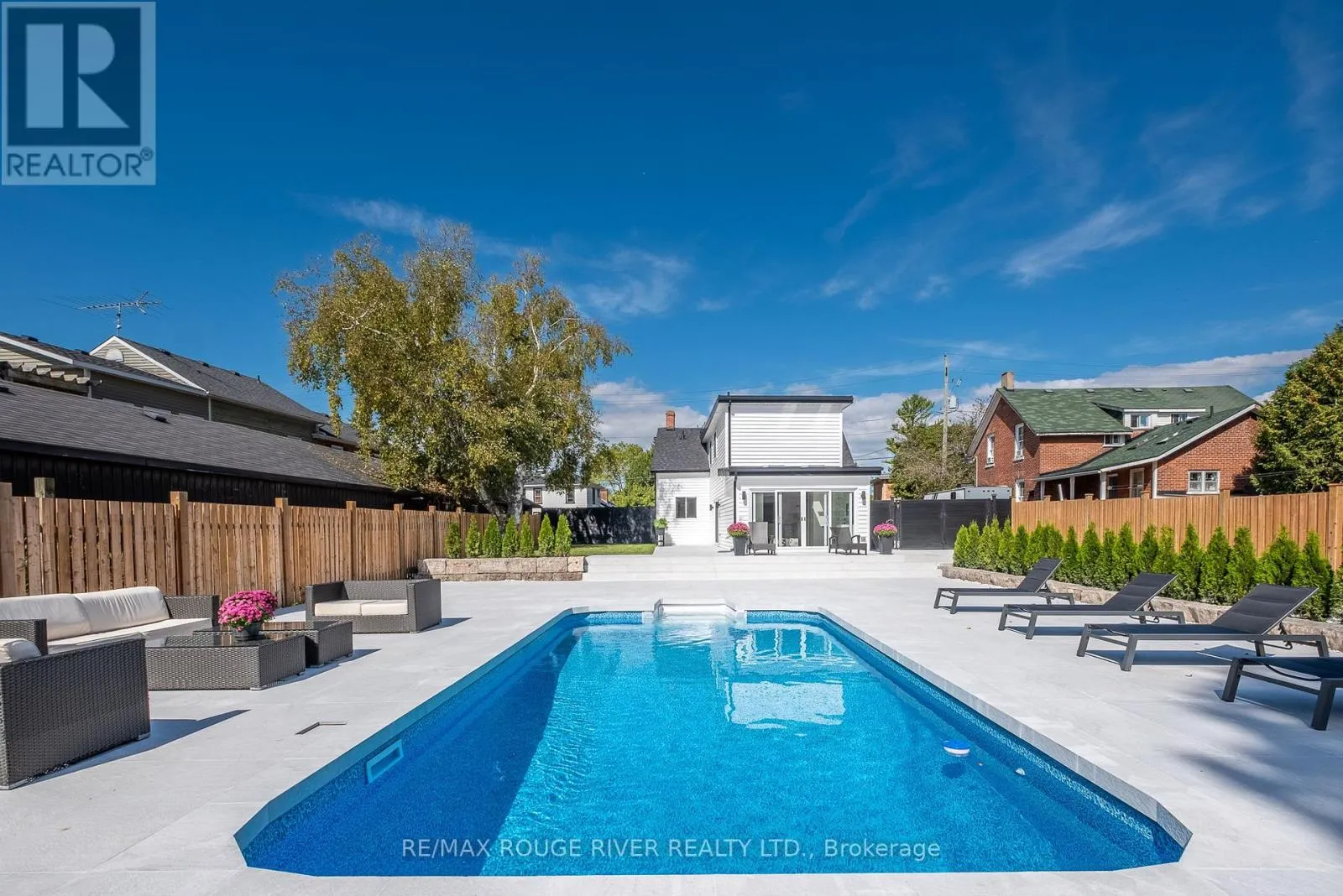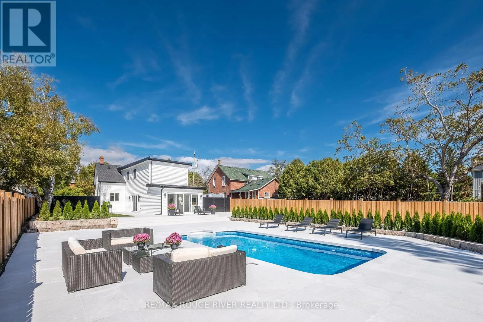 Cross Streets: Tremaine. ** Directions: King Street West. 375 King W, Cobourg, a turn-key, thoughtful revival of the original circa 1881 residence.Fully reimagined from top to bottom, this detached urban residence masterfully blends modern sophistication with enduring character. Every detail has been thoughtfully curated to create a warm, serene retreat that feels both refined and effortlessly livable.Perfectly positioned just minutes from downtown Cobourg's vibrant lakeside, you'll enjoy easy access to scenic parks, winding green pathways, and a lifestyle that balances nature, culture, and convenience.Inside, the home offers four spacious upper-level bedrooms, highlighted by a breathtaking primary suite complete with a custom walk-in closet and a spa-inspired ensuite designed for ultimate relaxation. At the heart of the home, the sun-filled kitchen impresses with its airy layout, oversized island, and seamless connection to the living and dining spaces, ideal for both everyday living and stylish entertaining.Step outside to your own private oasis. A heated saltwater pool, surrounded by elegant stone tile and a tiered patio, creates the perfect setting for unforgettable gatherings or peaceful moments of escape, all enclosed within a beautifully finished composite-fenced yard.Adding even more versatility, a gated driveway enhances privacy, while the oversized detached outbuilding, already roughed-in for gas, water, and septic-offers endless potential. Whether you envision a guest suite, creative studio, workshop, or ultimate retreat space, the opportunity is yours to define. Welcome to one of Cobourg's most desirable settings. (id:27476)