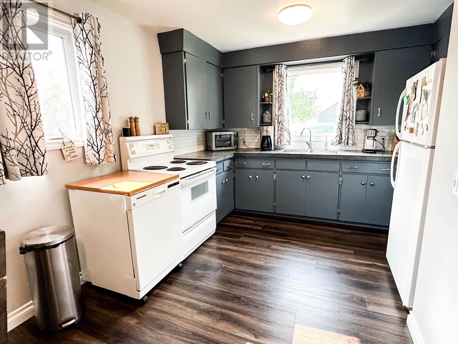 When entering Cochenour onto Edward Ave. turn left onto William St. just before the arena, home is on the left. Great starter home! This affordable 2 bedroom 1 bath home located in Cochenour has received many thoughtful upgrades including new flooring, updated bathroom, new counter tops, as well as an updated exterior. When entering the home you're welcomed by a large bright living room with new floors and light fixture. Off the living room is one bedroom, also with new flooring and a good sized closet, beside which is the beautifully re-done bathroom. From there check out the second bedroom on the main floor which is also a great sized. Continuing on into the eat-in kitchen which features new flooring, concrete counter tops and updated backsplash. Downstairs there are two finished rooms, that could be converted to bedrooms if desired, as well as storage, laundry and utilities. You will appreciate the affordable natural gas heat, and the central air in the summer months as well. Outdoors you will enjoy the cute yard, complete with a large storage shed, tarp shed AND dog pen. Book your private showing today! (id:27476)