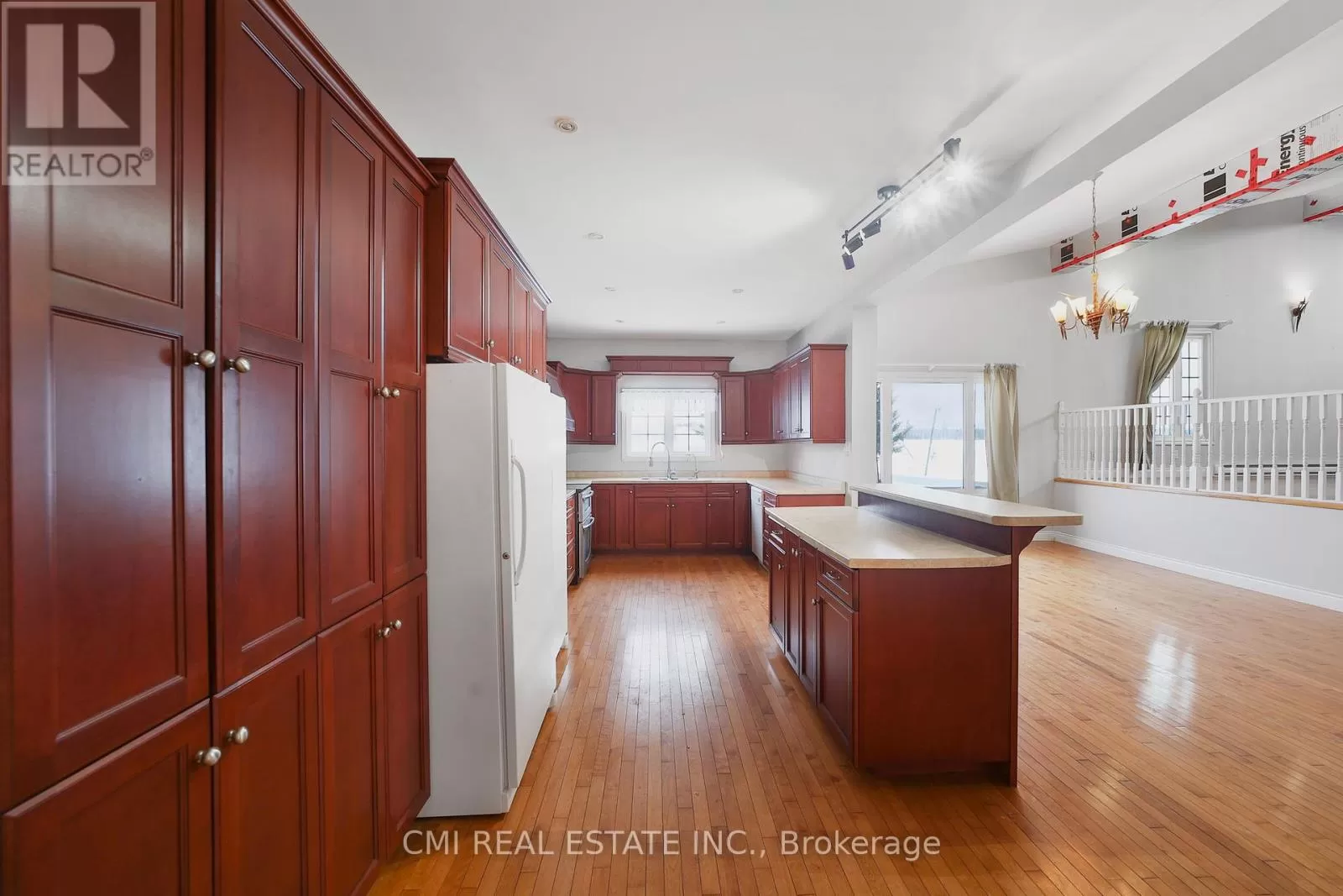 Conc 2 & 3/ Sonar Rd Tranquility, connectivity, & sqft! This property offers it all! Grand bungalow situated in the charming quiet outskirts of Cochrane on a generous 1-acre CORNER lot offers just under 4000sqft of living space featuring 4 principal beds, 2 full baths, & 800sqft 2-car OVERSIZED garage workshop. Long double wide driveway provides ample parking for vehicles & RVs. Covered porch entry perfect for morning coffee. Bright tiled foyer presents the front wing of the house containing the bedrooms. Primary bedroom retreat w/ large W/I closet & 4-pc resort style ensuite w/ soaking tub & separate shower. Stroll down the hall to the open-concept eat-in kitchen upgraded w/ wall-to-wall custom cabinetry including two fridges, breakfast bar, & B/I pantry. Formal dining space can hold 12 person dining table. Raised Great room w/ vaulted ceilings, fireplace, & skylight offering tons of natural light W/O to rear sunroon & deck. Sunroom ideal for plant lovers & perfect for a Hot Tub! *Single floor living at its best* Gorgeous deck offers amazing views of the open ravine landscape. Located minutes to the city, airport, & amenities! (id:27476)